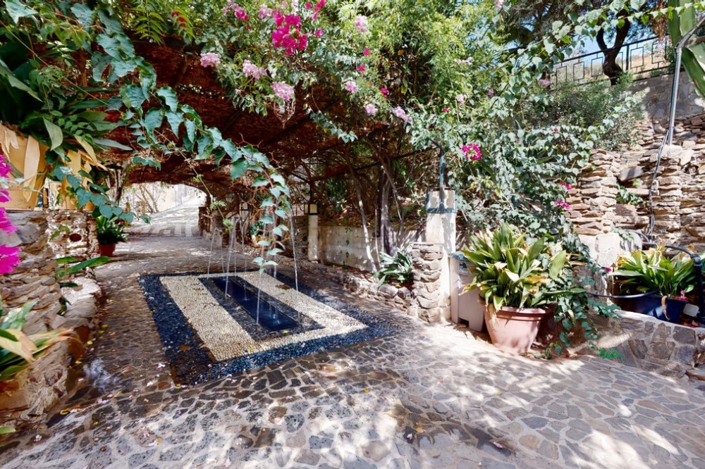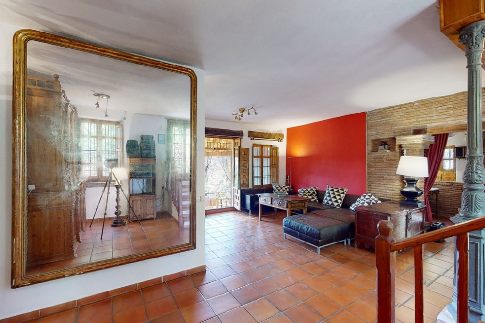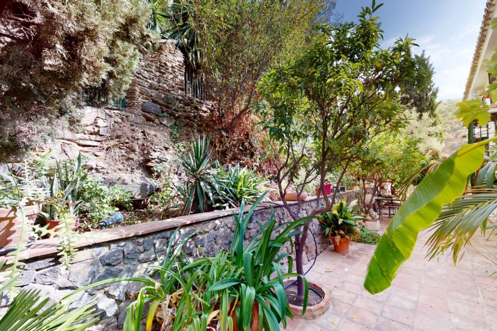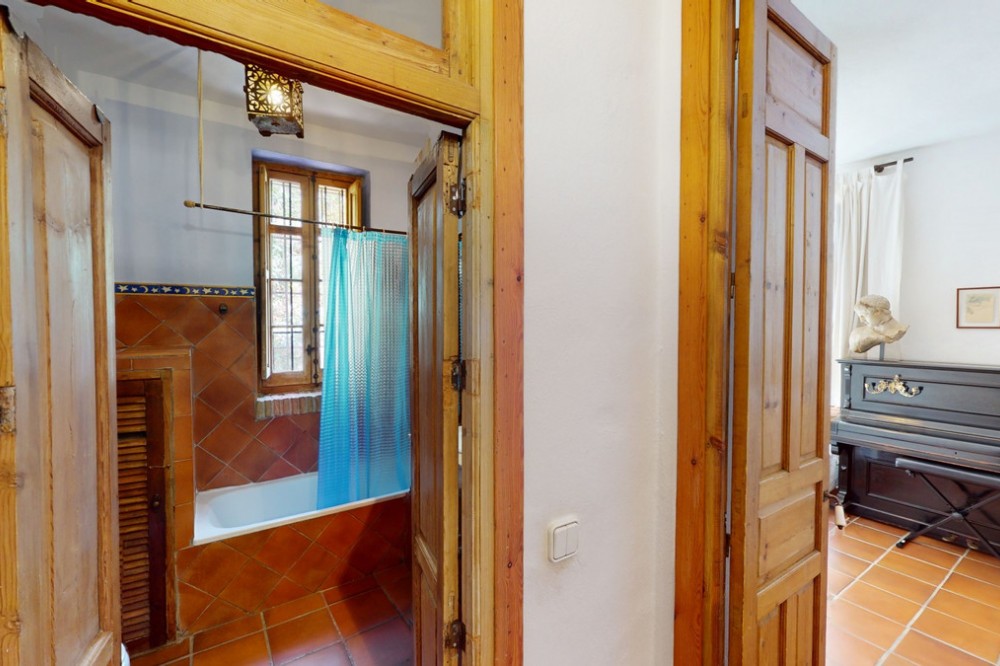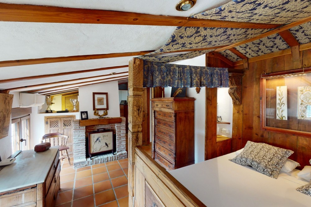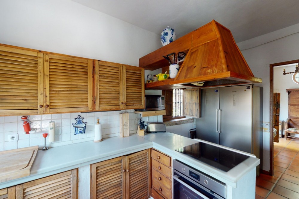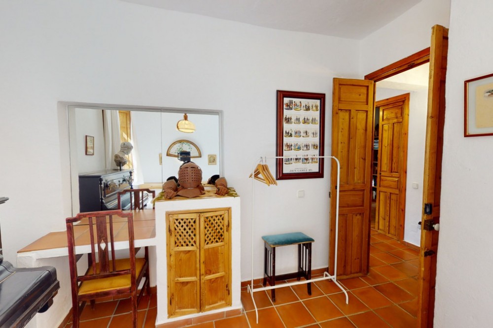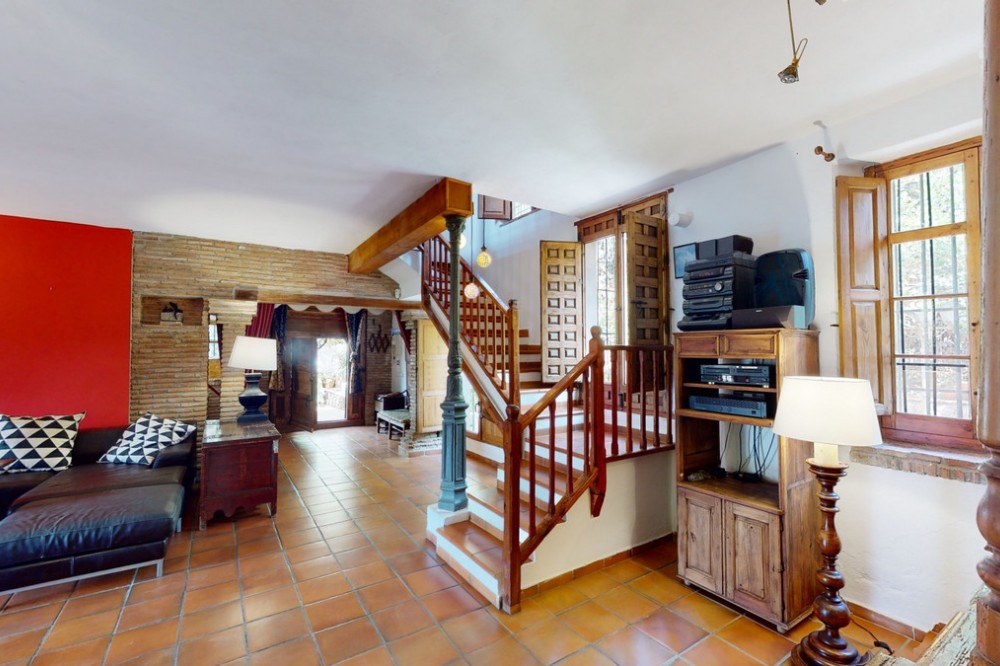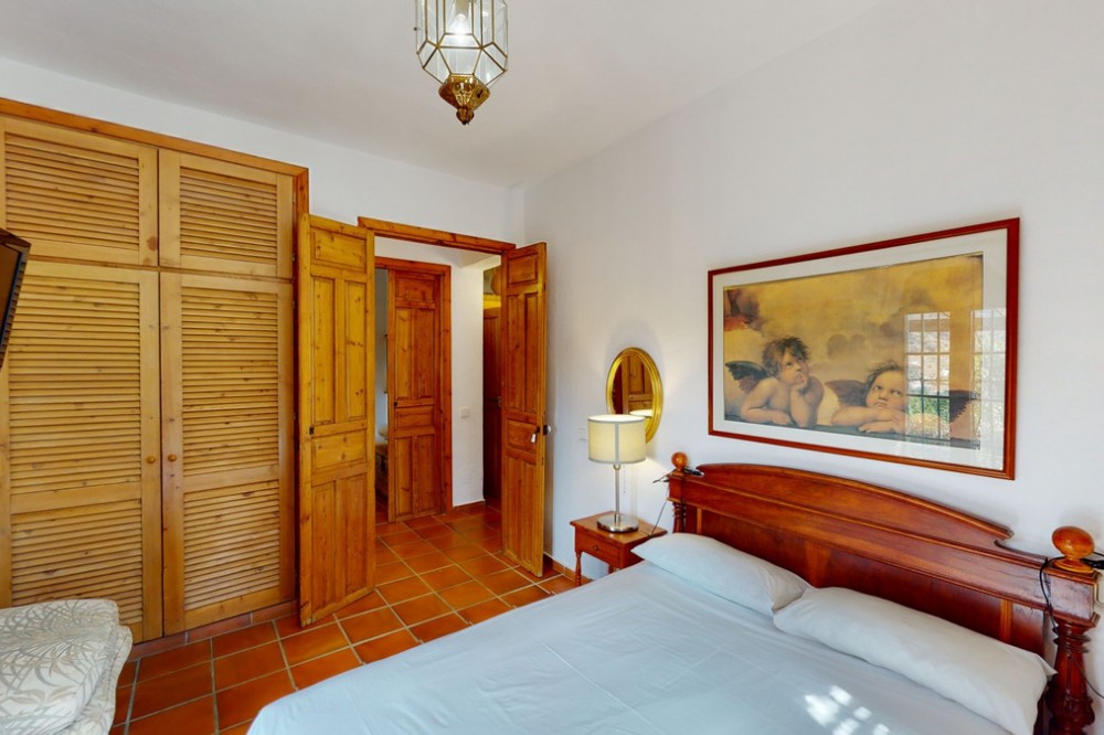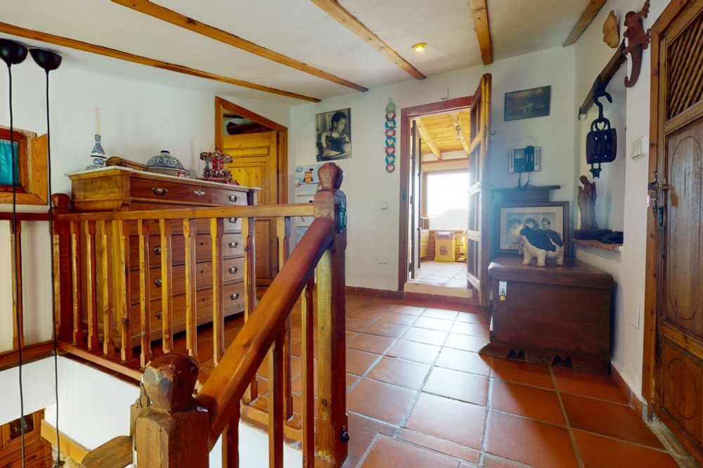 - A property with charm, soul and tradition, surrounded by nature on all four sides and with panoramic views to the southwest, the valley and the surrounding mountains. It consists of two floors. The current owner built it to his liking in 1996, with top quality materials and noble woods. The estate is accessed through an electric gate and there is space to park at least three vehicles at the entrance. In front of this area, we find several tree-lined paths, for relaxed strolls, and a 500-year-old marble fountain. Going down a ramp, with little slope, covered by a leafy vine and another fountain, we access a front patio. Here is the front door; a century-old solid wood door. Upon entering, to the right, is the kitchen, fully equipped and with access to the outside covered terrace. In front of the main door is the living-dining room, very spacious, bright and with a fireplace. From the living room there is also access to the covered terrace. After the living room we access the bedroom area on the ground floor, where we find two double bedrooms, a guest bedroom, and a bathroom. Going up the stairs to the second floor there are another three bedrooms -one with a conservatory overlooking the valley and the mountains-, a bathroom with a round hydromassage bathtub and a storage room. The outdoor area has lush gardens, a beautiful pool, barbecue area, a horse arena, and its boxes. We are pleased to be able to present this dream property to you soon, either personally or via virtual viewing. Because this world, it is unique - just like our Axarquía. In Andalusia. On the Costa del Sol. Here, on the sunny side of life...