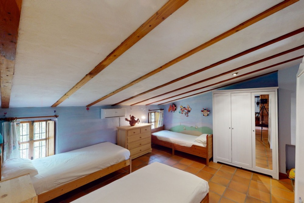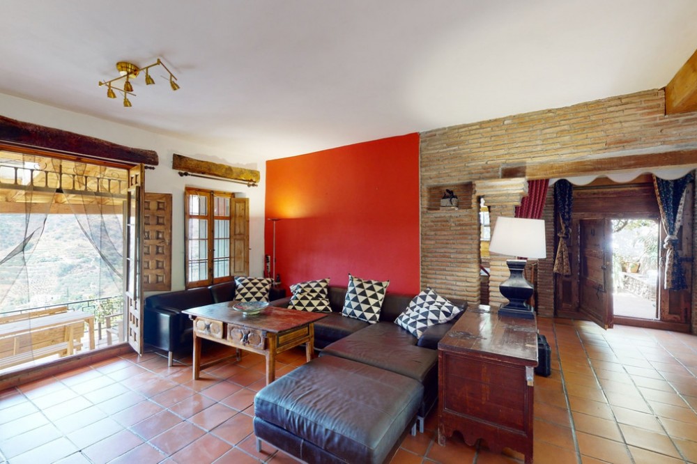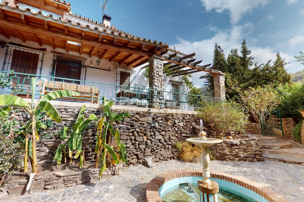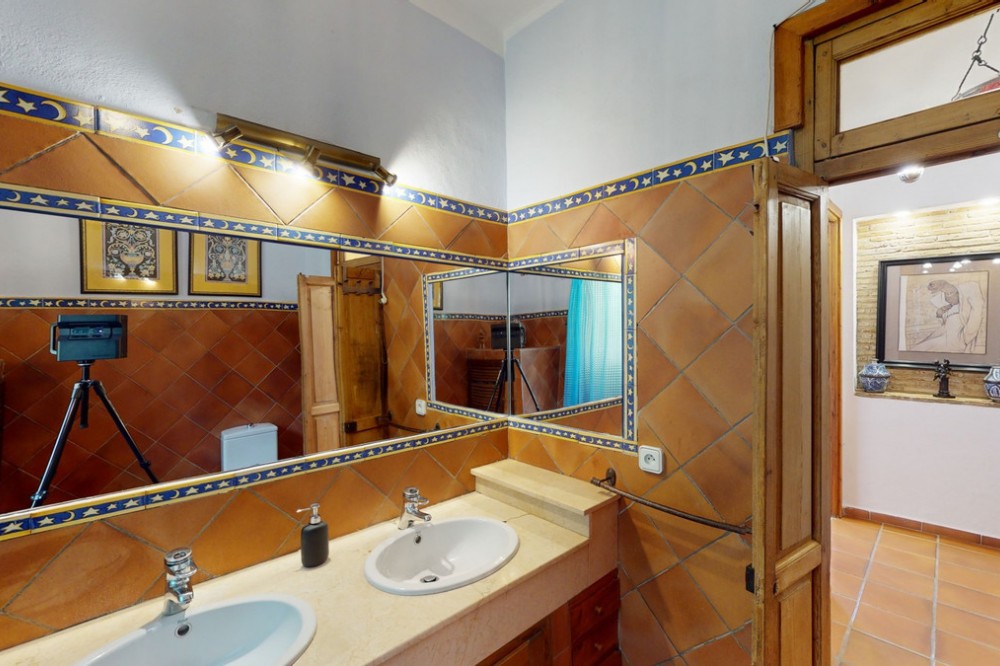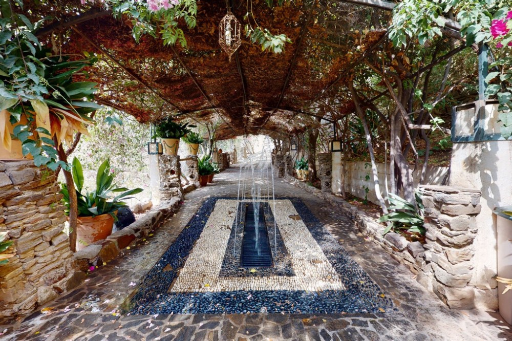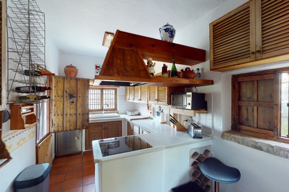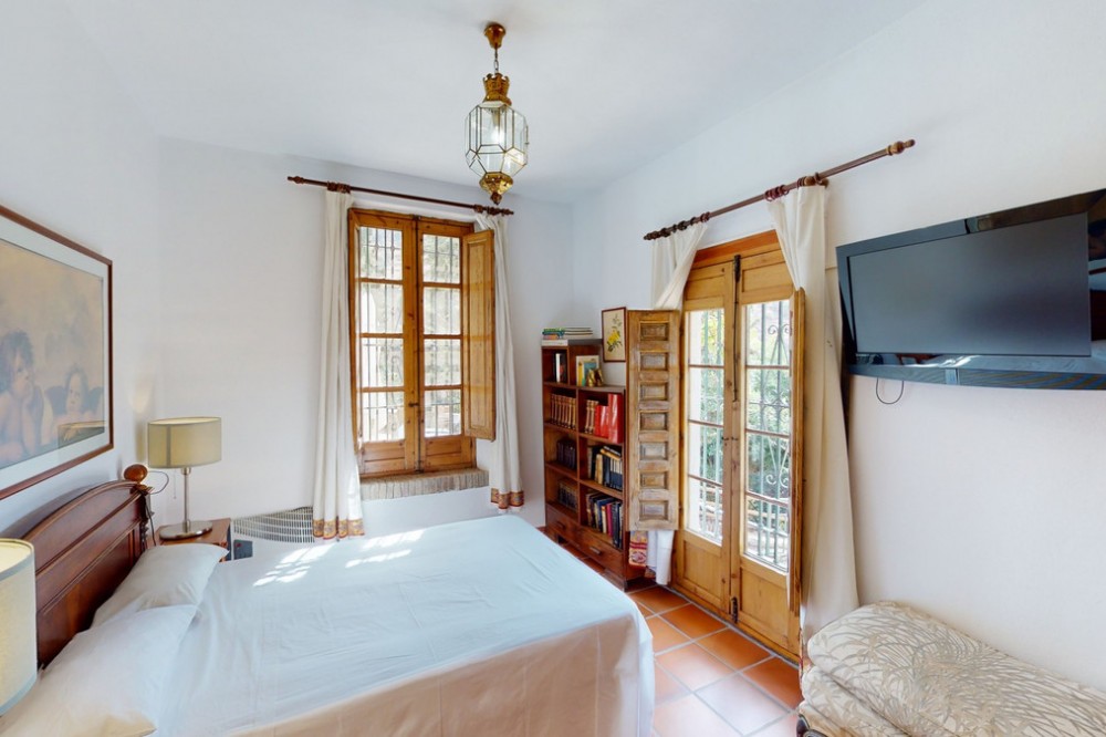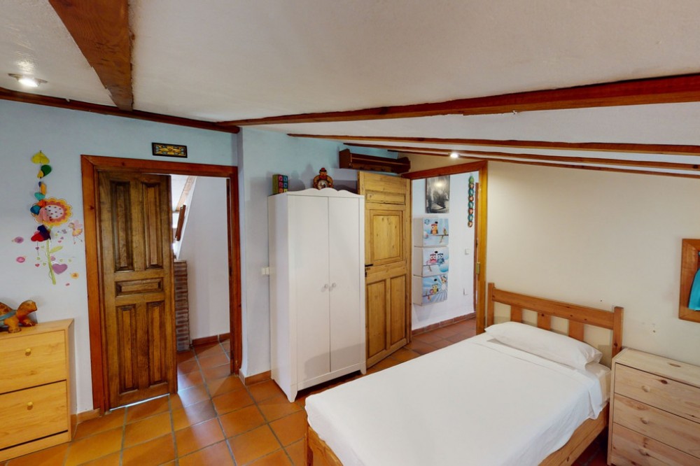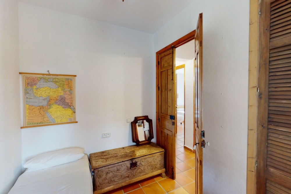 - A property with charm, soul and tradition, surrounded by nature on all four sides and with panoramic views to the southwest, the valley and the surrounding mountains. It consists of two floors. The current owner built it to his liking in 1996, with top quality materials and noble woods. The estate is accessed through an electric gate and there is space to park at least three vehicles at the entrance. In front of this area, we find several tree-lined paths, for relaxed strolls, and a 500-year-old marble fountain. Going down a ramp, with little slope, covered by a leafy vine and another fountain, we access a front patio. Here is the front door; a century-old solid wood door. Upon entering, to the right, is the kitchen, fully equipped and with access to the outside covered terrace. In front of the main door is the living-dining room, very spacious, bright and with a fireplace. From the living room there is also access to the covered terrace. After the living room we access the bedroom area on the ground floor, where we find two double bedrooms, a guest bedroom, and a bathroom. Going up the stairs to the second floor there are another three bedrooms -one with a conservatory overlooking the valley and the mountains-, a bathroom with a round hydromassage bathtub and a storage room. The outdoor area has lush gardens, a beautiful pool, barbecue area, a horse arena, and its boxes. We are pleased to be able to present this dream property to you soon, either personally or via virtual viewing. Because this world, it is unique - just like our Axarquía. In Andalusia. On the Costa del Sol. Here, on the sunny side of life...