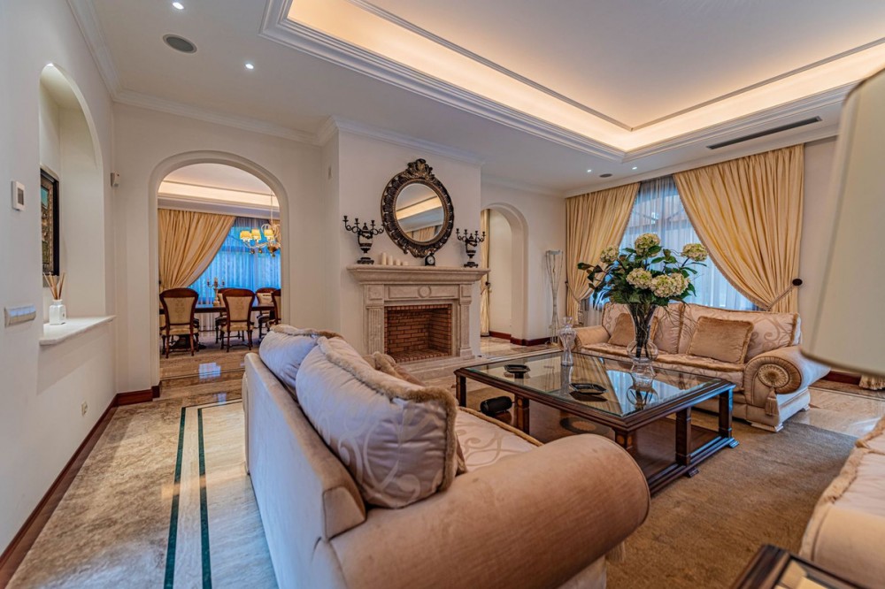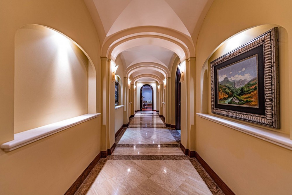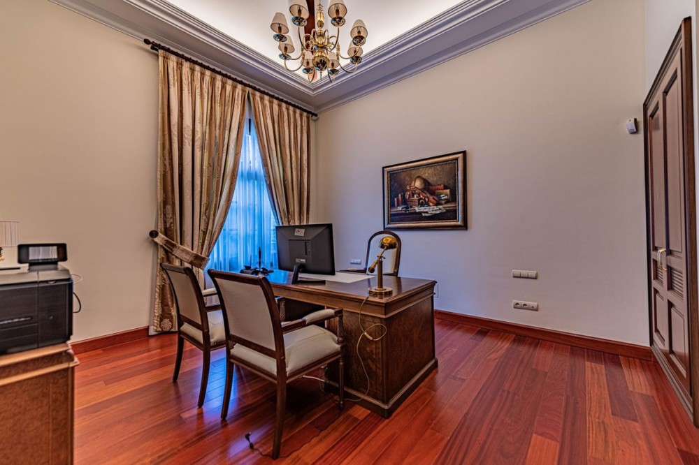 - Luxury andalusian style villa that resides magnificently in one of the most prestigious and sought-after urbanizations in Marbella, Guadalmina Baja, only 100 meters from the beach and 5 minutes from Puerto Banus. The highest quality materials have been used in the design and construction of this elegant 8-bedroom home. The natural light throughout is accentuated by high ceilings and a multi-level floor plan. The villa offers a beautiful entrance hall leading to an Andalusian patio, a large fully fitted kitchen, 2 en-suite bedrooms, an elegant formal dining room and an expansive living area that leads to the covered terraces and lavish gardens. The first floor offers 3 large en-suite bedrooms and an elegant master suite with his and hers walk-in wardrobe and a private terrace with garden & partial sea views. This extraordinary property has been especially designed for a luxury lifestyle and offers a dream entertainment area that includes a pool billiard room, a fully equipped fitness suite, a Spa with sauna, jacuzzi, Turkish bath and ice fountain, a cinema room and a signature wine cellar, making this a haven of recreation. The manicured tropical gardens feature a large swimming pool, a small lake with waterfall, and a summer pergola under mature palm trees. The villa enjoys absolute privacy. Other features of this extraordinary property include: garage for 6+ cars, private lift, under-floor heating throughout, domotic system, solar panels, separate staff apartment, etc.