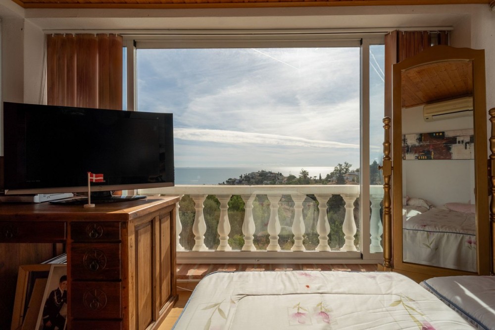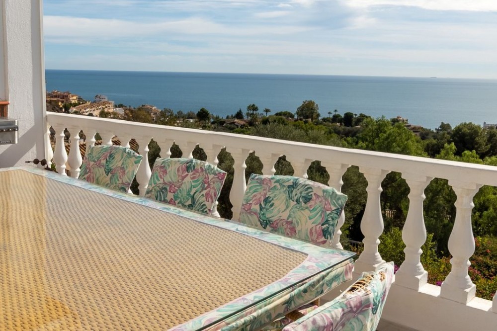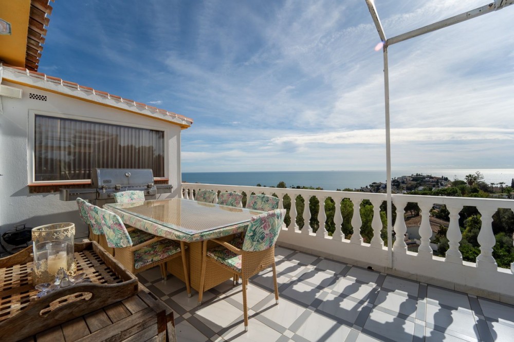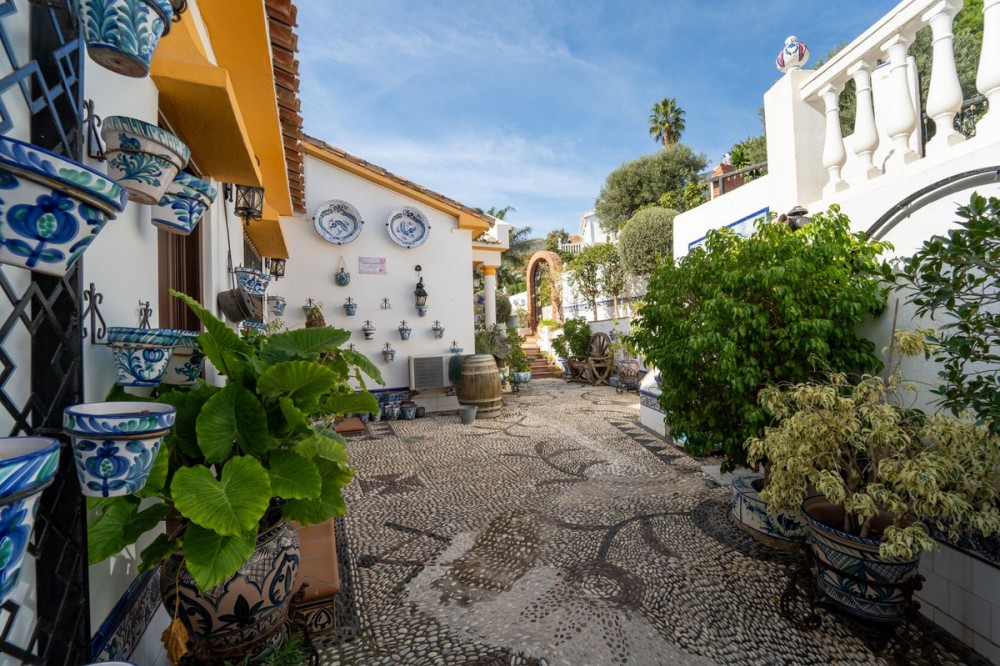 - Villa located in Torremuelle, Benalmadena Costa. Large sunny plot and amazing sea views. Distributed over 3 levels as follows: Entrance level with independent kitchen, lounge with access to the terrace that has amazing sea views, and staircase that takes you down to the bedrooms. Downstairs you find 3 bedrooms and 2 bathrooms. A lovely bodega and wine cellar. On the bottom floor there is a bar and laundry room. From this level you can access the pool and there is also an external staircase that takes you to the pool area. Outside the villa there is an independent room which is now used as an office but could be a bedroom. Private parking and 2 garages.