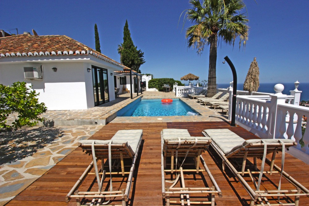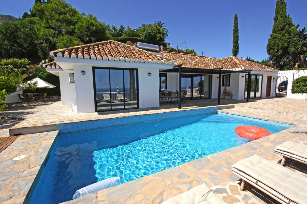 - Villa Mariposa, the perfect mix between Scandinavian and Andalusian style. It is one of the most beautiful and practical houses in La Capellanía, with the main house all in one level and with breathtaking sea views from almost everywhere on the plot and in the house. This Villa has been renovated recently in the highest qualities with underfloor heating, Italian marble floors, designer kitchen and bathroom furniture. Big open spaces at the terrace are directly in level with the house. The main house has 3 bedrooms, 2 bathrooms and a big kitchen facing the front terrace, all in one level and connected to the pool area. Under the terrace there is an annex bedroom of aprox 25m2 with its own small chill out terrace, and en suite bathroom. The plot is big enough to extend the house or even build a second floor, so the possibilities are not yet all covered 😉 Do not hesitate in contacting us for viewings or more information!! La Capellanía belongs to Benalmádena, the ideal place to live quietly while being close to everything. It is a few km from Fuengirola, a small coastal town that has not less than 7km of beautiful sandy beaches, shopping centers, a water park and much more.