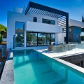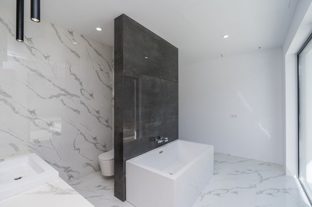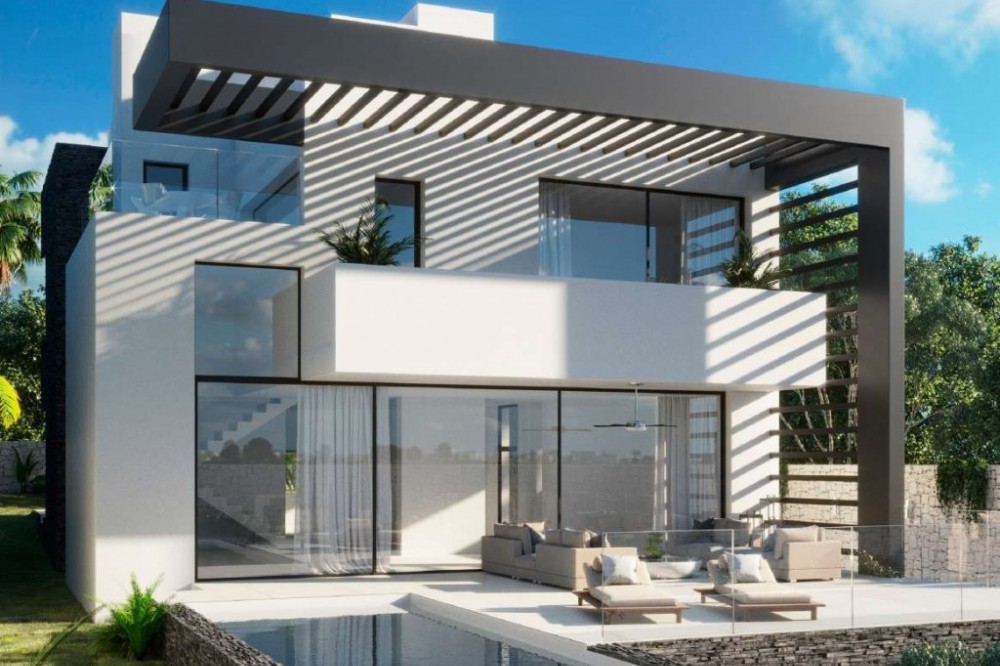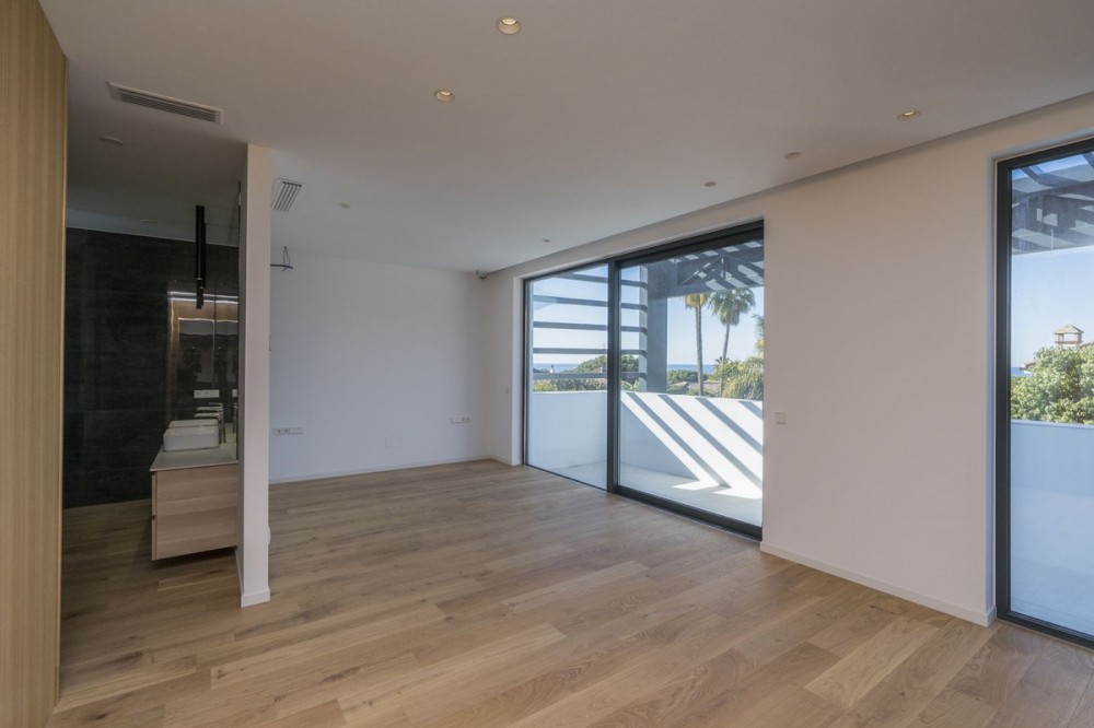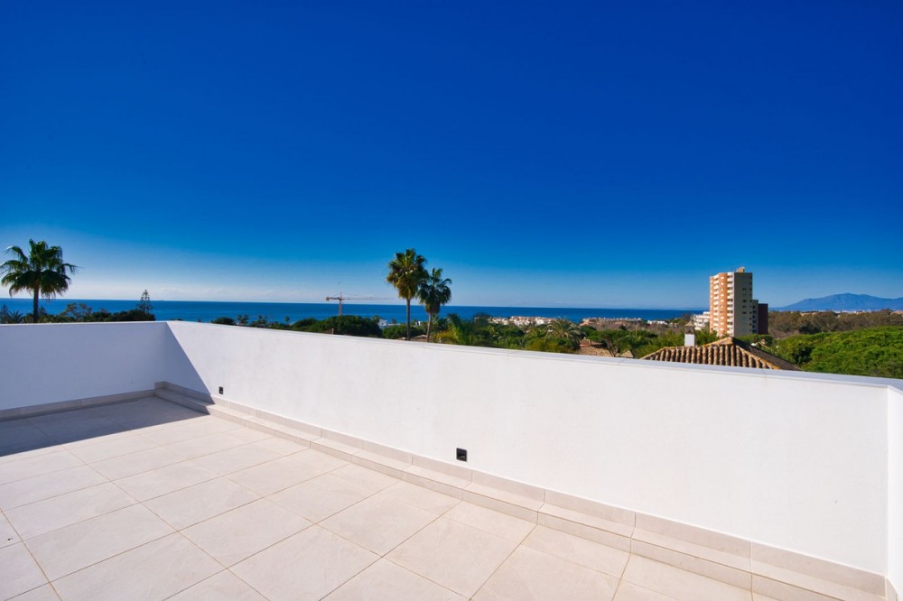 - ABOUT THE VILLA There is a modern style detached house with an excellent location for sale. The house was completed in 2023. The property is only 350 m from the sea and 28 m above sea level. The property is bordered by a protected pine forest from the north. The house's roof terrace offers 180 degree free view of the sea and the surrounding mountains. The size of the property is 710,0 m2. The house is a three-storey modern style luxury villa with a 3x10m outdoor heated pool on the patio. The building has a total area of 273m2 covered with terraces. The floors of the building are connected by a staircase inside the building and an elevator that runs out to the roof terrace of the last floor. On the 0 floor of the building there is a 157,7m2 garage (4 cars), utility room, toilet, technical room and two additional rooms with windows. On the first floor there is an entrance hall, open kitchen-living room, ceiling height 4,6m, separate toilet, large bedroom with a wardrobe and a separate bathroom. On the second floor there are one large bedroom with a wardrobe and a separate bathroom and 2 normal size bedrooms, 1 bathroom, and a study area. The roof terrace will be equipped with a jacuzzi, shower and an outdoor kitchen. Natural oak parquet is used on the floors of the house. Residential heating is solved on the basis of air-water heat pump, heat transfer with floor collectors, in addition there is an electric floor heating in damp rooms. Each living space also has an autonomous air conditioner. The building is equipped with forced ventilation and a central vacuum cleaner. The building has an alarm system and IT and TV readiness. German ALNO kitchen and Bosch kitchen appliances. The building will be completed in 2023 The building will be completed in 2023 350 meters to the beach 28 meters above sea level 10 min drive to Marbella 35 min drive to Malaga Airport 180 degrees views from roof terrace