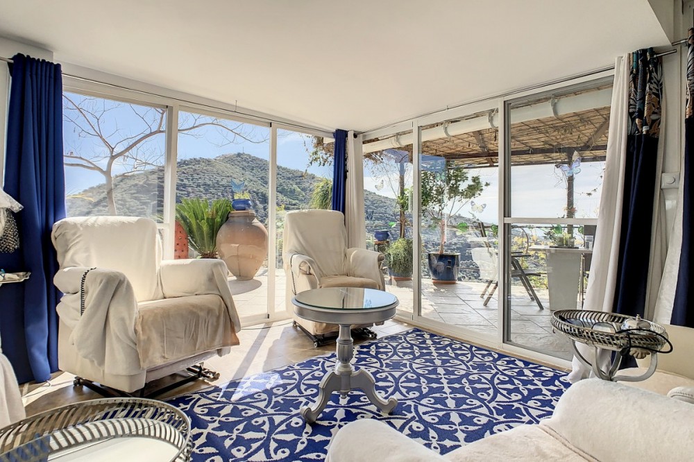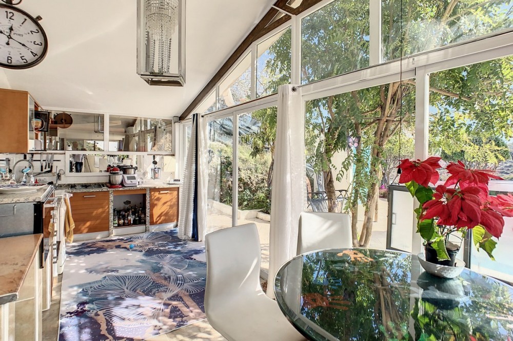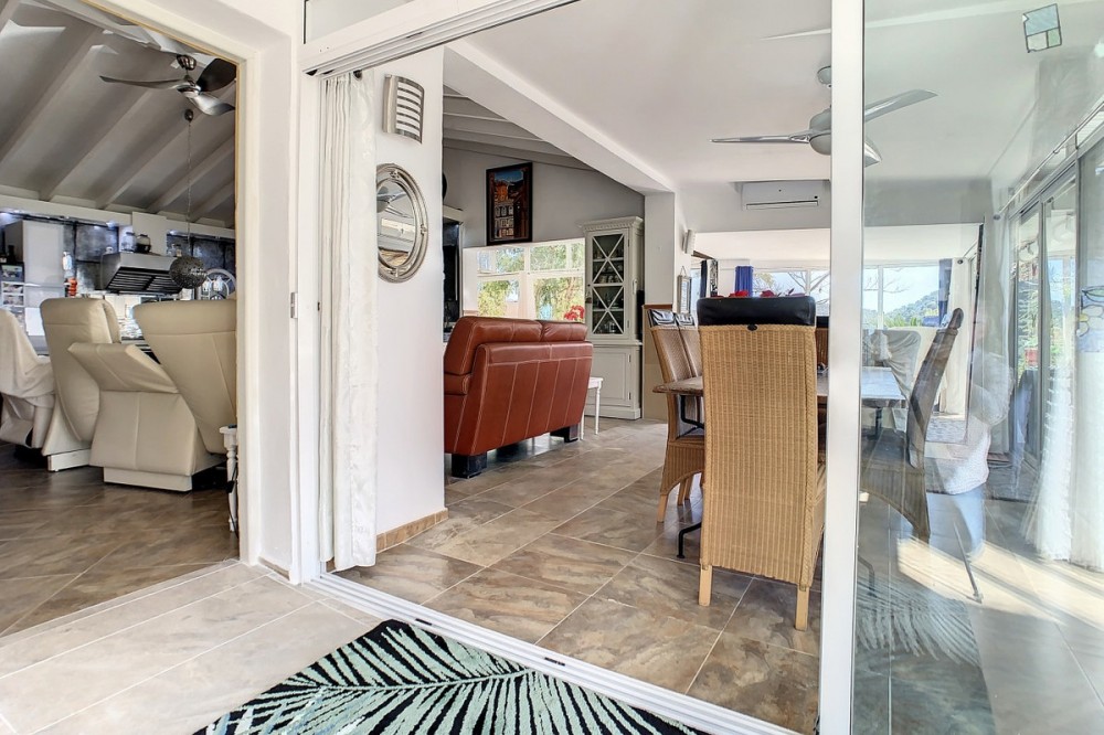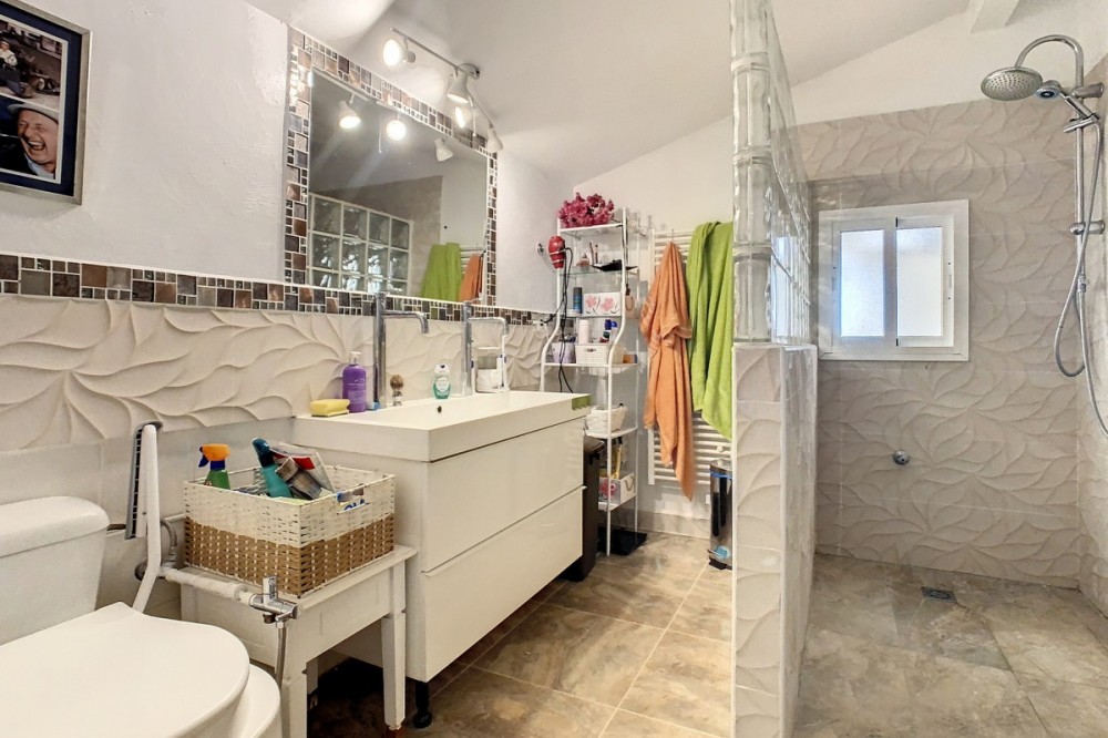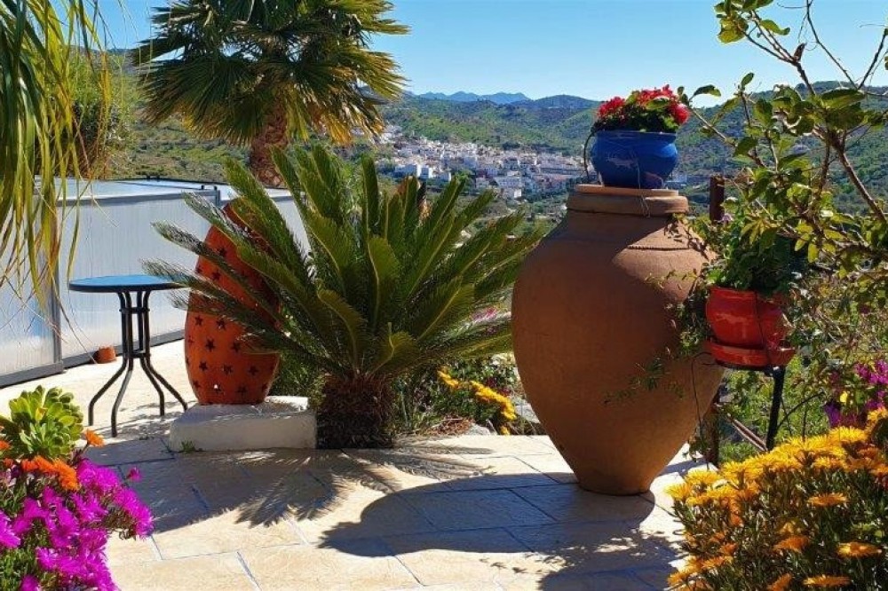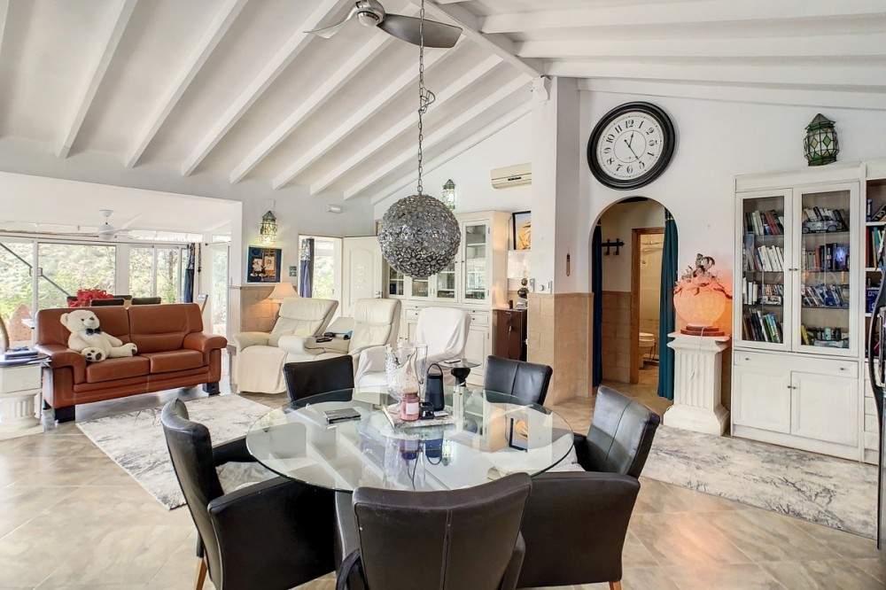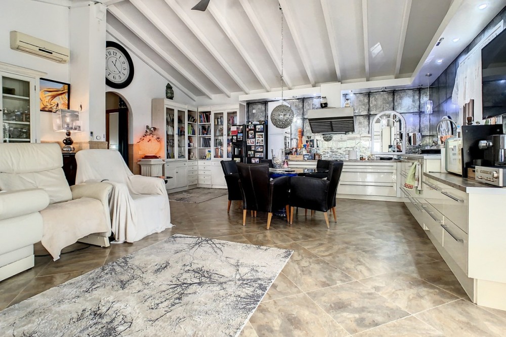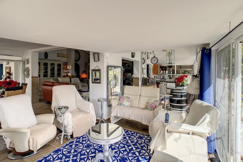 - You are looking for a large villa with a heated swimming pool, neatly hidden nearly at the top of a mountain, surrounded by nature with breath-taking views of the valley up to the sea and the village of Arenas? This might just be what you are looking for. At the entry of the property, you find a covered parking space for at least 6 cars and a workshop. From there you step onto a wide porch that surrounds the whole property. In the centre of the house, that ́s all on one level, you find an office, 3 bedrooms, 2 bathrooms (one on-suite), 2 kitchens, an open bbq space, a large sitting/dining room and more sitting areas with views to the outside through French doors. Around the porch there is an array of different privative sitting/sunbathing spaces where it is just a dream to be. Here you also find the heated swimming pool, palm trees, an exterior bedroom and a passage leading to little romantic benches with fantastic views all around the foot of the property. There is also an outdoor kitchen. This property is well finished and comes with all the amenities. It is perfect for people that are fond of comfort and privacy. We are pleased to be able to present this dream property to you soon, either personally or via virtual viewing. Because this world, it is unique - just like our Axarquía. In Andalusia. On the Costa del Sol. Here, on the sunny side of life...