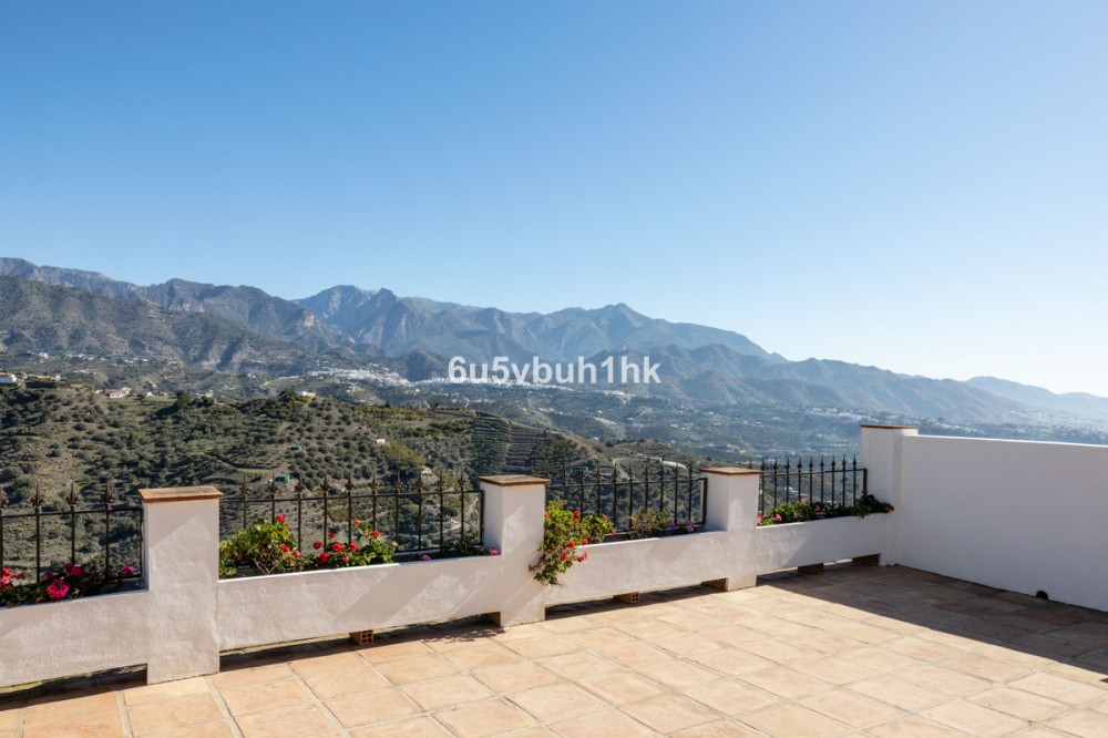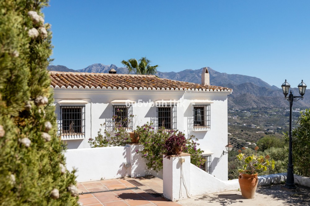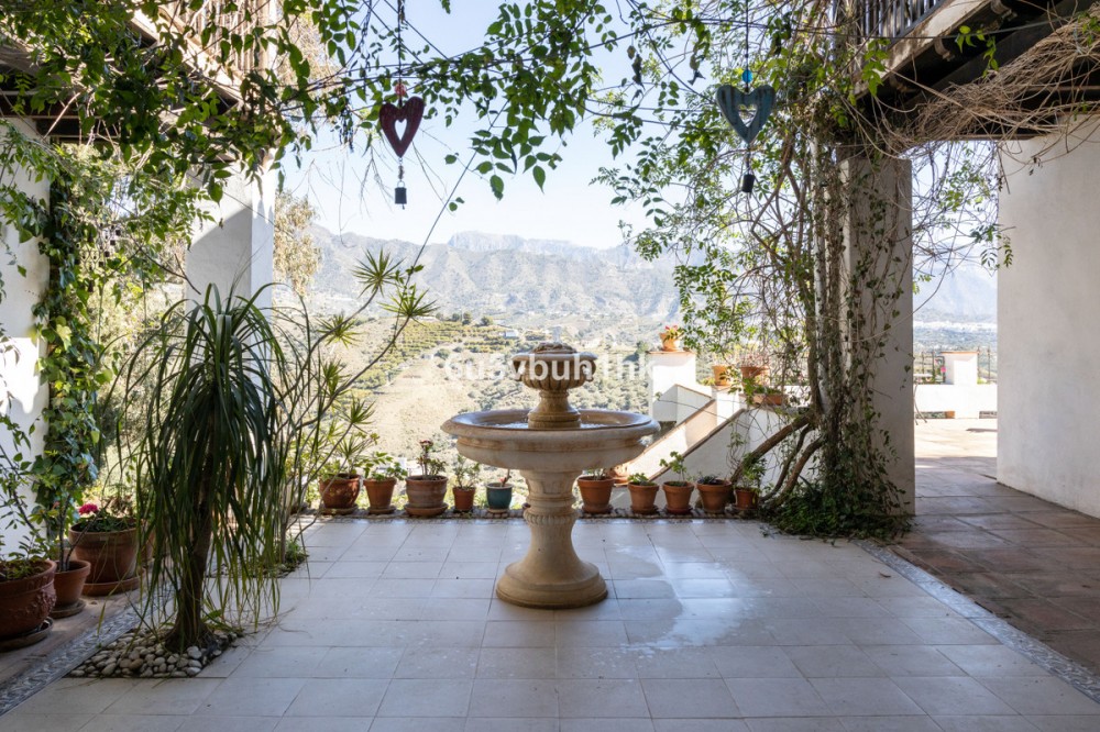 - This beautiful and spacious property is located in a tranquil setting, perfect for those seeking a peaceful and relaxing environment, in between the villages of Torrox and Frigiliana, just 25 minutes away from the beach. Upon entering the property, an almost completely paved driveway leads to a spacious entrance area/parking for several vehicles. The main house includes two separate houses connected by an interior corridor. Additionally, the property also counts with an independent studio apartment. In total, the villa counts with 7 bedrooms making its layout suitable for a large number of people, ideal for a large family, group of friends, or investment project, such as B&B. This very attractive property also counts with several terraces, private pool and garden areas, great places to relax and enjoy the sourrounding mountains and the stunning views of the village of Frigiliana. Additionally, one of the top features is the yoga studio, great for all people who are into yoga or other forms of exercise. The property also includes a wine cellar.