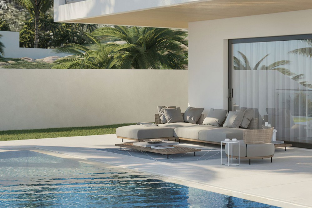 • Connect with nature in these beautiful 3-storey villas on the outskirts of Coín. The large floor to ceiling window on the ground floor provides so much light that you could easily forget if you are inside or out, in the living room or on the terrace. It is a feeling of total continuity. In every space of the home, you can feel the connection with the natural environment, the garden, the terrace, the landscape, whilst taking in the breathtaking views. The design is inspired by the transparent waters of a crystalline river and helps you appreciate the beauty and the connection with the natural environment in every corner of the home. Its cubic and modular shape provides large open spaces that help you lead a comfortable and relaxed life. The Basement level provides both vehicle and pedestrian access to the house, parking area, machine room and the lift (elevator). The Ground Floor has the living room, kitchen-diner, and guest WC, plus a covered terrace and swimming pool outside. The Top Floor is where the bedrooms are, all with fitted wardrobes. The main bedroom has an ensuite bathroom, dressing room and covered terrace. The other two bedrooms have fitted wardrobes and a covered terrace with access to a shared bathroom. The garden will be landscaped with decorative plants, further adding to the appeal of the property. The design of the villa will be adjusted to the client's taste. The location of the property can be chosen from the amongst the currently available plots and the house fixtures can be chosen from one of three different standard packages, though this can also be personalised according to the client’s preference.
