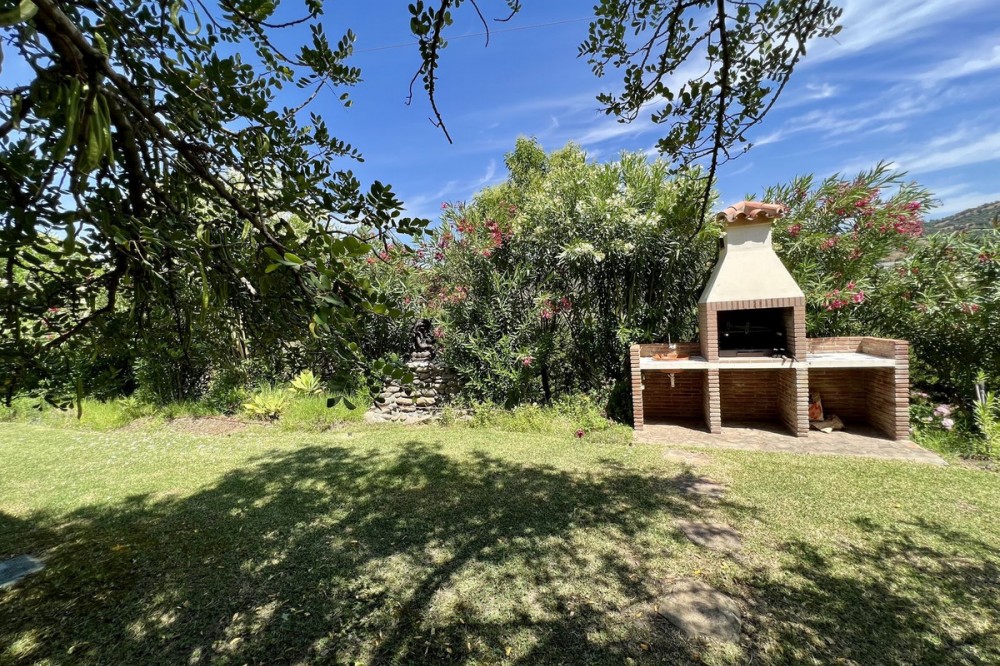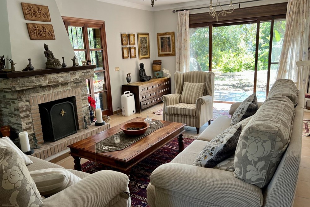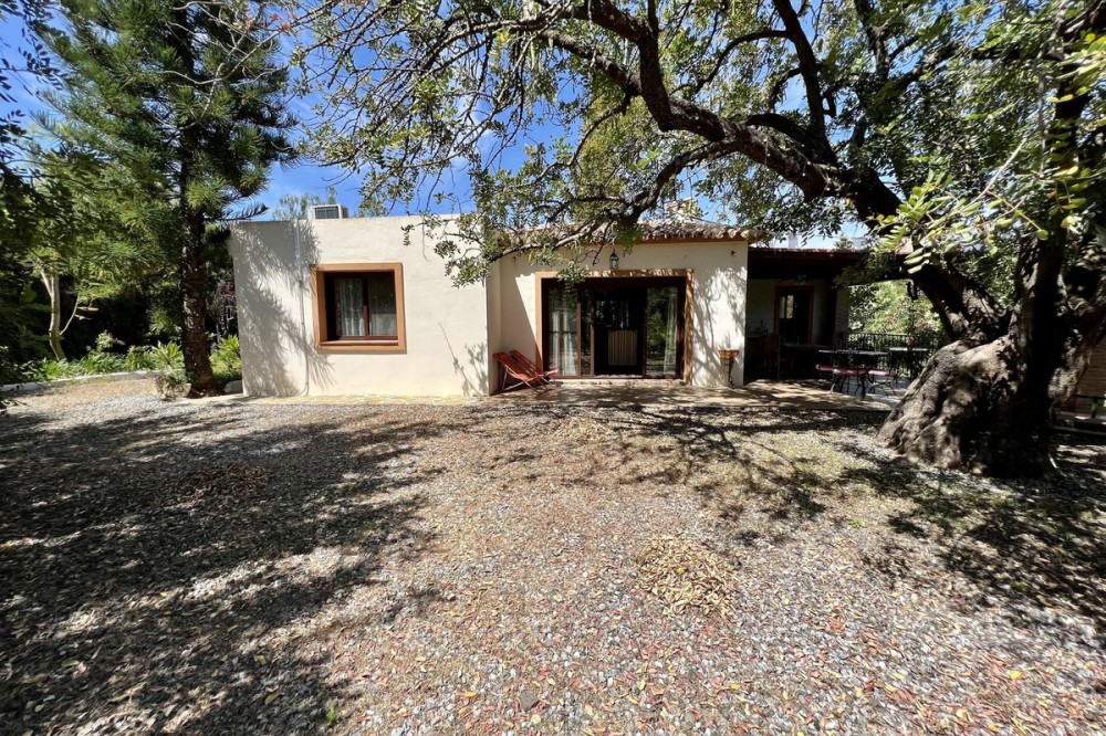 - Charming Country Estate for Sale in El Velerín, Estepona Nestled in a privileged natural setting, just minutes from the beach and the center of Estepona, this enchanting Andalusian-style country estate offers the perfect blend of rustic charm and modern comfort. Set on 8,000 m² of land surrounded by lush Mediterranean and tropical vegetation, the property enjoys its own river water supply, several terraced levels, a water reservoir for irrigation, and olive, avocado, and mango trees, creating an authentic oasis for nature lovers. The main house, measuring 155 m², has been fully renovated and exudes warmth and character throughout. It features two spacious double bedrooms, a large living-dining area with an impressive traditional fireplace, and air conditioning to ensure year-round comfort. From the living room, large glass doors open directly onto the terrace and beautifully landscaped gardens. The generous kitchen, complete with a pantry, is designed for both everyday living and culinary enjoyment. It opens onto a covered porch of approximately 40 m², ideal for outdoor dining and family gatherings in a serene environment. The mature garden is centered around a majestic carob tree, offering natural shade and a relaxing ambiance beside the private swimming pool, which is conveniently accessible from the house. A truly charming finca, perfectly integrated into its natural surroundings yet only a short drive from all amenities, beaches, and the vibrant atmosphere of Estepona town.