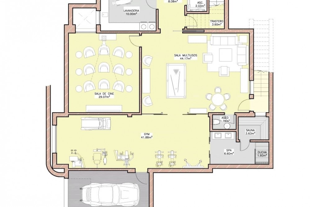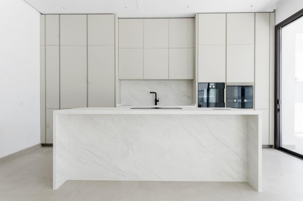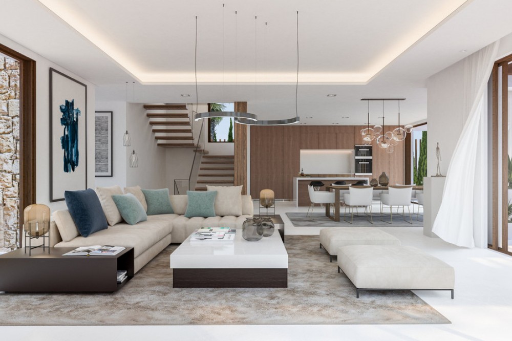 • Modern luxury villa with exceptional qualities, located in a gated community composed of only 15 villas. The community has 24-hour security guards and concierge services, and is located in a green oasis on the edge of the famous Golden Mile, a few meters from the beach and a few minutes walk from the old town. The villa is built on a plot of 885sqm and has a total living area of 730sqm. It has a large terrace of 225m2 and offers 4 bedrooms and 5 bathrooms. Inside, there is a spacious living room, an American kitchen equipped with furniture and appliances of the highest quality. In addition, the villa has a private elevator that connects each level of the property, a cinema, sauna and hammam, and underfloor heating. On the roof, there is a solarium that offers beautiful sea views. The villa also includes a private garage for 2 cars and 2 additional parking spaces. Both the garden and the pool of the villa are centrally maintained by the community, which provides a carefree lifestyle. The construction of the villa is completed, which means it is ready to be inhabited and enjoyed by its owners.