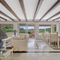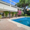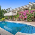 - This villa is nestled in an elevated position within the urbanisation of Guadalmina Alta, a beautiful and well-established urbanisation known for its quality living. This villa boasts stunning panoramic views due to its well-designed elevated position on a sizeable plot. The entrance to the house is graced by a picturesque patio, adding to its charm. On the main floor, you will find a beamed, generously-sized living room with cozy fireplace and a dining room offering access to a delightful terrace. Additionally, this floor accommodates two bedrooms, a bathroom and guest toilet. Descending to the garden level, you will discover two more good-sized bedrooms, each complete with its own en suite bathroom. These charming bedrooms open up to a lovely porch, and inviting pool and an expansive garden, making it a perfect space for quiet relaxation and outdoor enjoyment!
