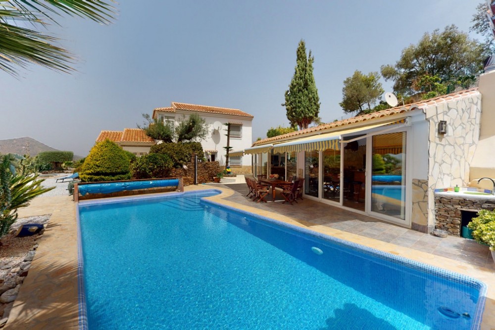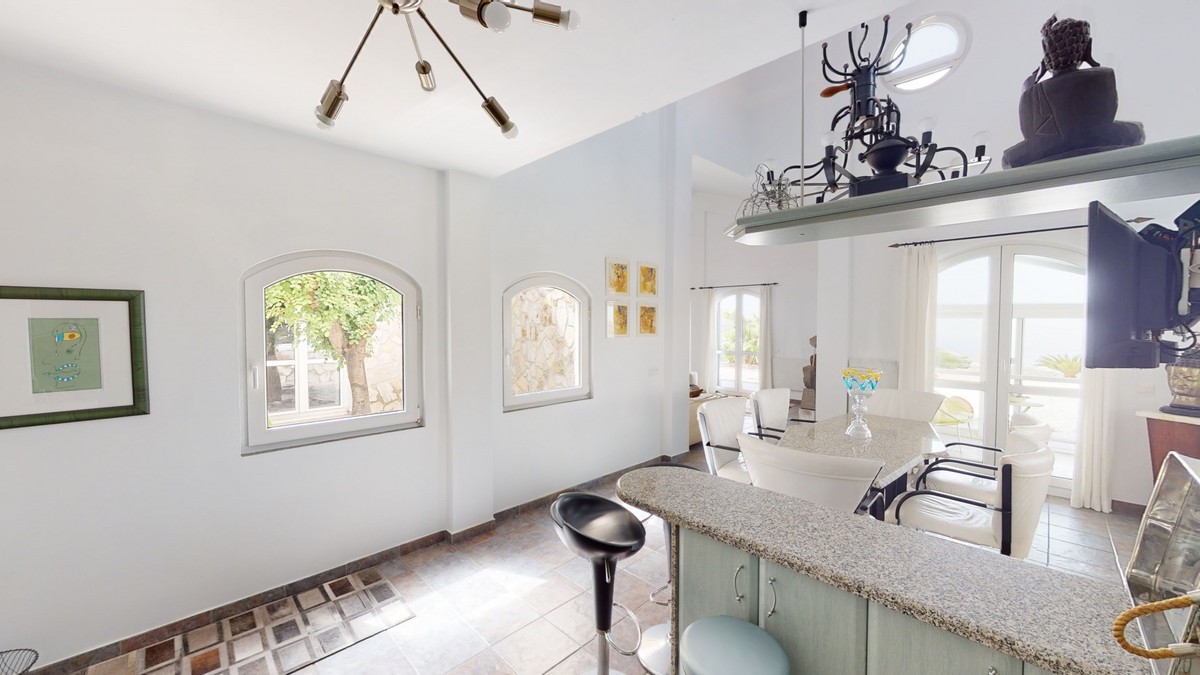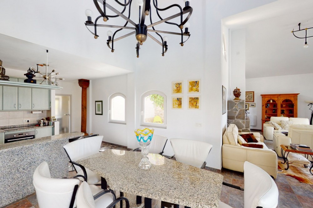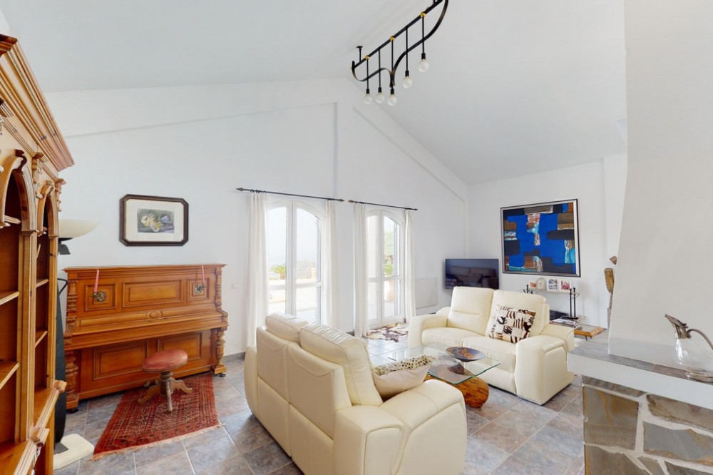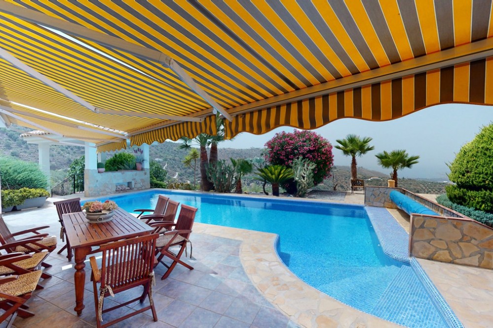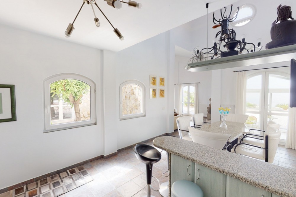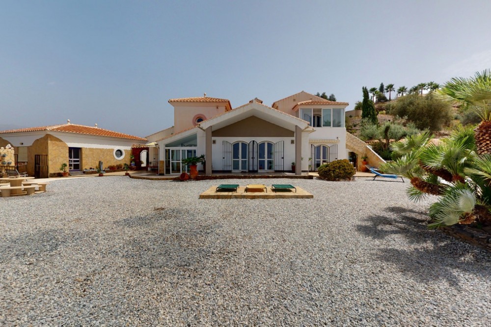 - If it ́s your dream to live in a fantastic, high quality built villa with a pool and breathtaking sea views, then you have found the right property. This 280 m2 luxury villa offers everything you could possibly want. In the centre of the modern villa mixed with Andalusian style is a charming patio, which gives the house a special accent and provides beautiful lighting and atmosphere. It links the entire lower area of the property. From the entrance area, one side leads to a room used as an office, as well as a bedroom with an on-suite bathroom and the spacious living room with a fireplace and sea views. This in turn is adjacent to the dining area and the kitchen, from which you enter the hallway that is connected to the entrance area. This hallway also leads to the dressing room with an on-suite bathroom, where there is a sauna. Stairs lead from the entrance to the second floor. Here you will find the large master bedroom with an on-suite bathroom and a winter garden. External stairs lead to the outdoor area, which gives this room a separate entrance. The wonderful outdoor area offers a double garage, as well as a laundry room, which is also used for storage. Right next to the inviting pool is a gym with bathroom, as well as a glass fronted annex that serves as a lounge area with an outdoor kitchen. The perfect place for celebrations and dinners with family and friends. On the 19,500 m2 property there is also a paddock, with shelter and its own driveway, for keeping horses. It ́s located below the house. The driveway also leads to a small riding arena with three horse stalls, a tack room and a shower for the horses. You have free design possibilities of the spacious property. Whether it is to plant a fruit and vegetable garden, expand the area of horse keeping, possibly convert the riding arena to a tennis court, volleyball or small soccer field, even something completely new. The choice is entirely up to you. We are pleased to be able to present this dream property to you soon, either personally or via virtual viewing. Because this world is unique - just like our Axarquía. In Andalusia. On the Costa del Sol. Here, on the sunny side of life...