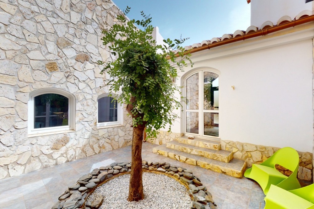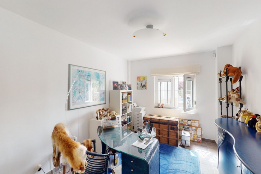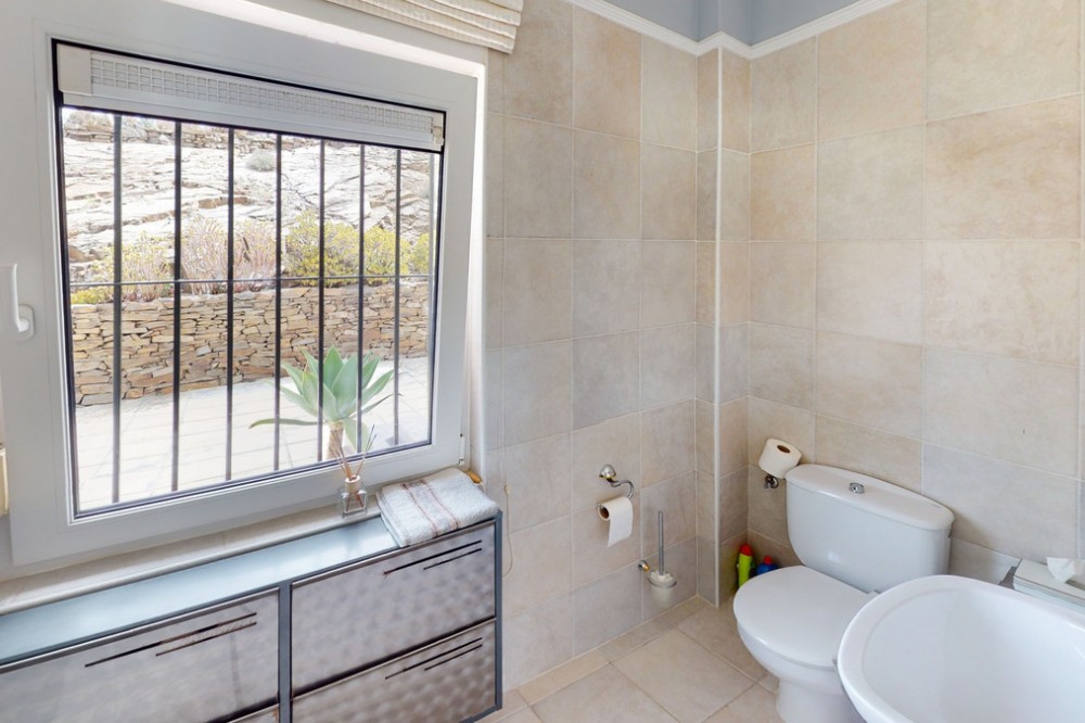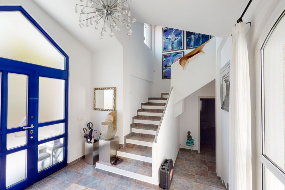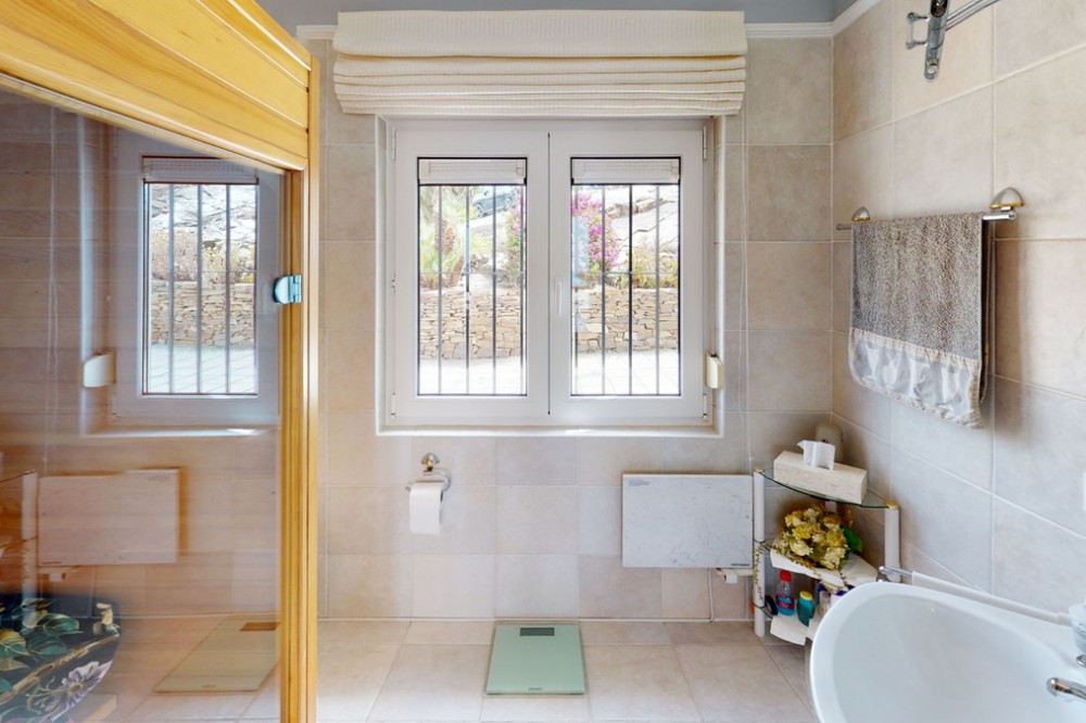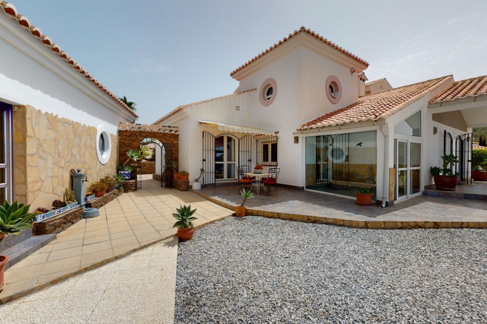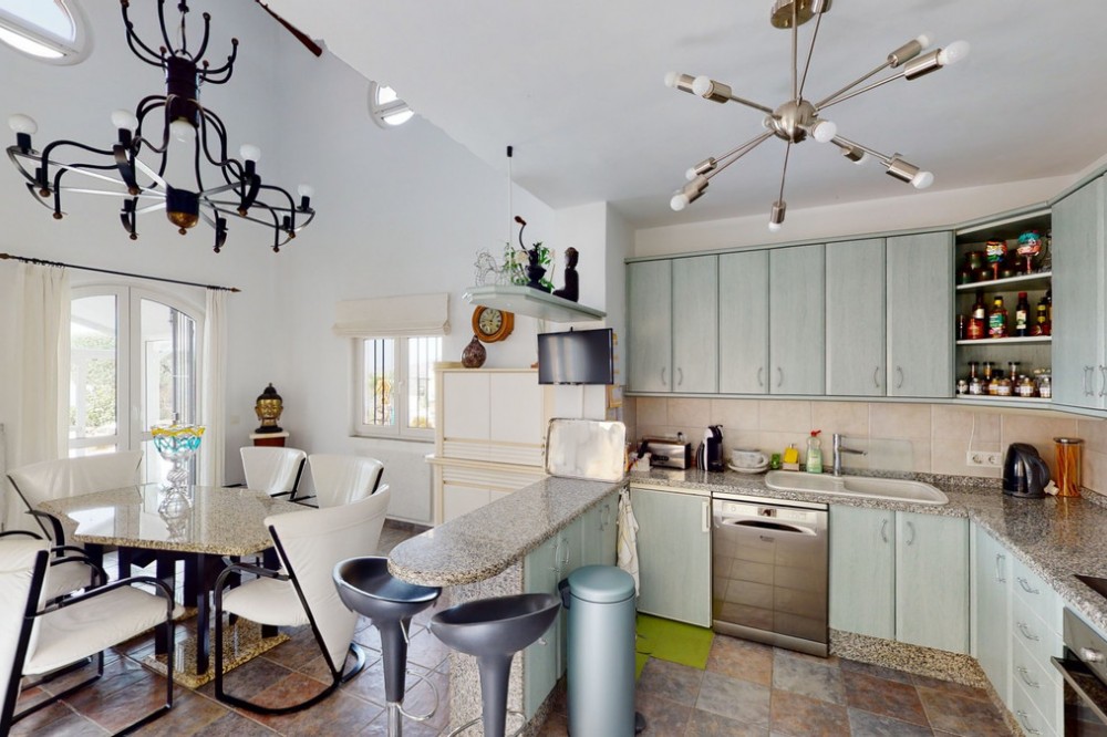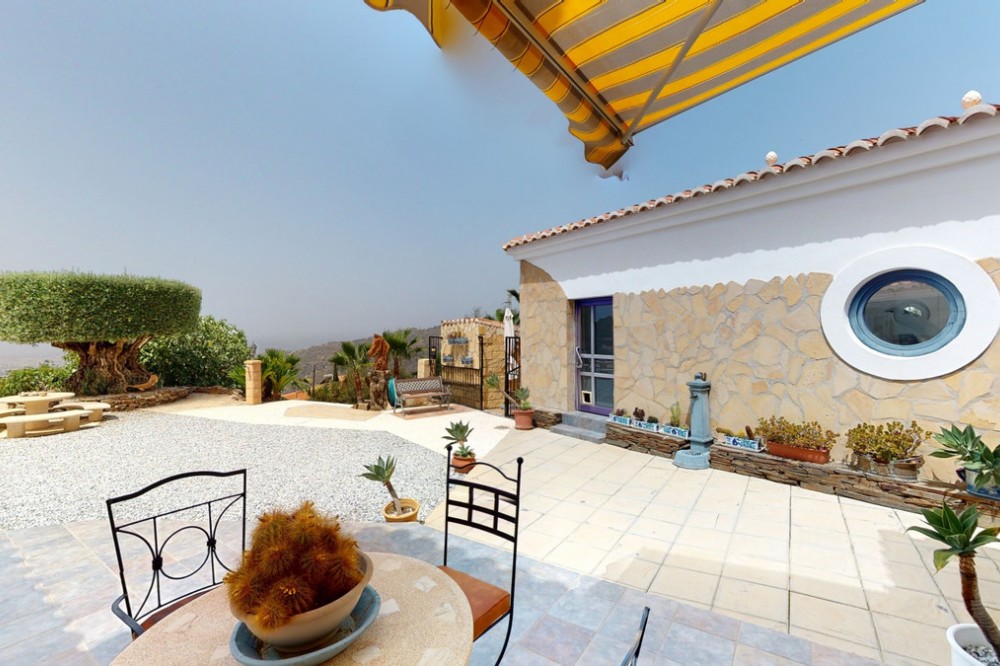 - If it ́s your dream to live in a fantastic, high quality built villa with a pool and breathtaking sea views, then you have found the right property. This 280 m2 luxury villa offers everything you could possibly want. In the centre of the modern villa mixed with Andalusian style is a charming patio, which gives the house a special accent and provides beautiful lighting and atmosphere. It links the entire lower area of the property. From the entrance area, one side leads to a room used as an office, as well as a bedroom with an on-suite bathroom and the spacious living room with a fireplace and sea views. This in turn is adjacent to the dining area and the kitchen, from which you enter the hallway that is connected to the entrance area. This hallway also leads to the dressing room with an on-suite bathroom, where there is a sauna. Stairs lead from the entrance to the second floor. Here you will find the large master bedroom with an on-suite bathroom and a winter garden. External stairs lead to the outdoor area, which gives this room a separate entrance. The wonderful outdoor area offers a double garage, as well as a laundry room, which is also used for storage. Right next to the inviting pool is a gym with bathroom, as well as a glass fronted annex that serves as a lounge area with an outdoor kitchen. The perfect place for celebrations and dinners with family and friends. On the 19,500 m2 property there is also a paddock, with shelter and its own driveway, for keeping horses. It ́s located below the house. The driveway also leads to a small riding arena with three horse stalls, a tack room and a shower for the horses. You have free design possibilities of the spacious property. Whether it is to plant a fruit and vegetable garden, expand the area of horse keeping, possibly convert the riding arena to a tennis court, volleyball or small soccer field, even something completely new. The choice is entirely up to you. We are pleased to be able to present this dream property to you soon, either personally or via virtual viewing. Because this world is unique - just like our Axarquía. In Andalusia. On the Costa del Sol. Here, on the sunny side of life...