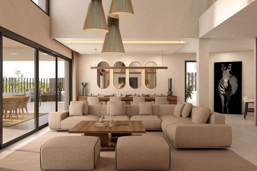 - We present an impressive villa with an avant-garde design, located in the exclusive area of Guadalmina Baja, which has been conceived to redefine modern architecture! Our project seeks to make a difference in the current panorama of modern houses through an independent design that captivates the senses. With the masterful use of concrete, we create a timeless and intellectual architecture that stands out for its elegance and originality. The perfect balance between purism and practicality defines the distribution on two floors and the basement of this magnificent villa. On the ground floor, the bright living-dining room with lifestyle kitchen blends harmoniously into the large covered outdoor spaces, which lead to a dazzling pool. The careful design allows you to fully enjoy the spectacular tropical-Mediterranean garden that surrounds the property. The guest suite is located on the ground floor, providing comfort and privacy to its visitors. On the upper floor, the master suite is located, a true oasis of elegance and tranquility, together with the areas for the little ones or the rest of the family. All rooms have spacious en-suite bathrooms and fitted wardrobes. The basement houses a large garage for several vehicles, a gym to keep fit, an entertainment area and the machine room for the pool, as well as a practical utility room. The combination of large panoramic windows and a careful layout of the interior spaces, allows you to enjoy spectacular views and a perfect connection between the interior and exterior, generating a sensation of spaciousness and light in every corner. The exquisite tropical-Mediterranean garden that surrounds the villa, with its fragrant flowers and refreshing palm trees, creates a relaxed and welcoming environment, ideal for enjoying moments of tranquility and pleasure. In summary, this villa represents an unbeatable combination of design, functionality and elegance, located in a coveted location like Guadalmina Baja. If you are looking for a contemporary and luxurious living experience, this villa is your perfect choice. Do not miss the opportunity to acquire this architectural jewel and immerse yourself in an exclusive lifestyle. Contact us now for more details and to book a private viewing of this exceptional property.