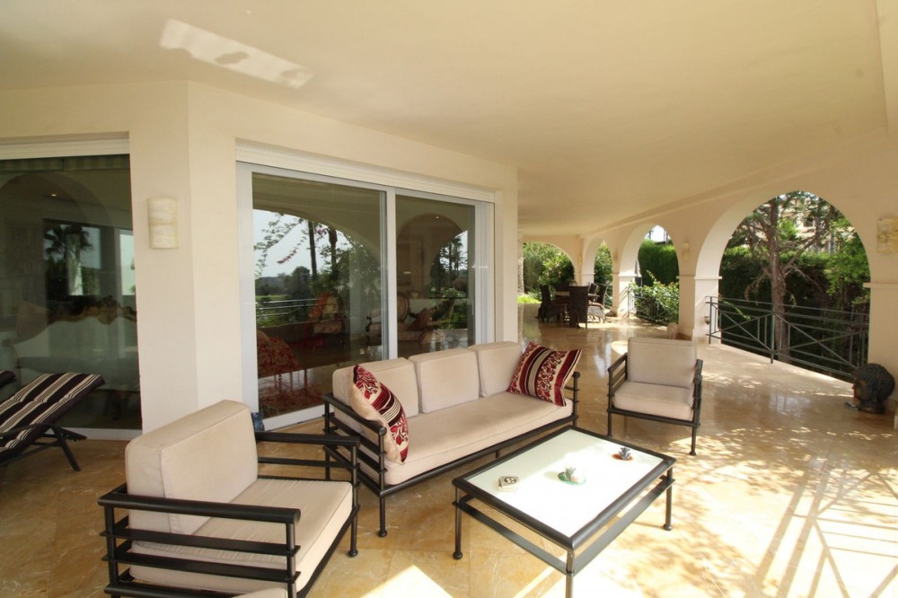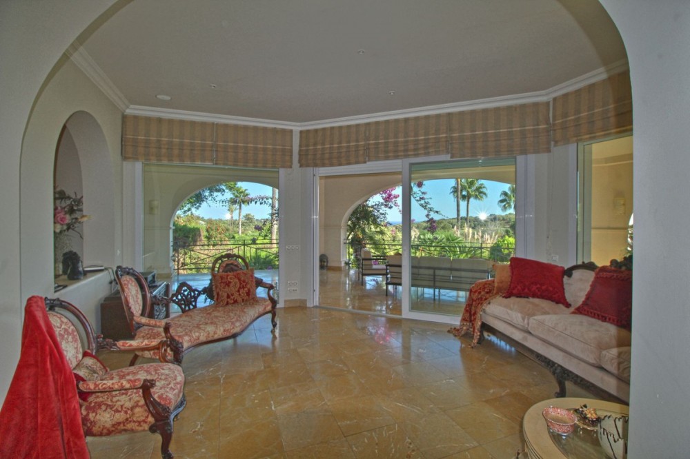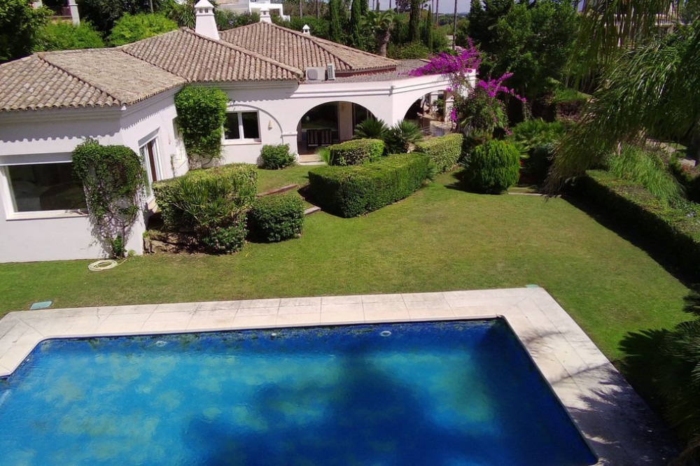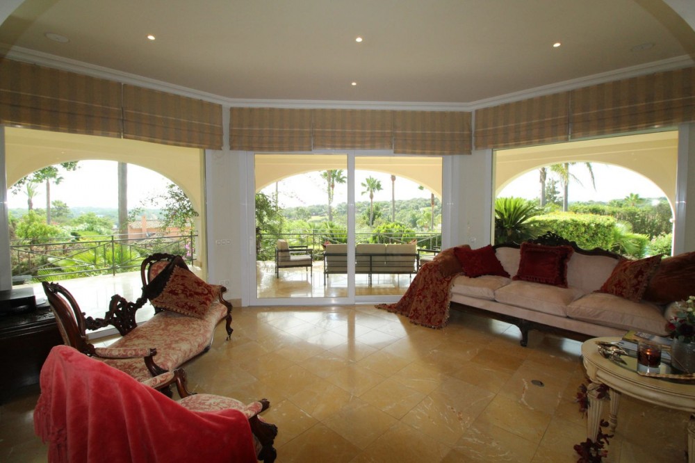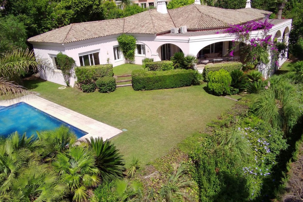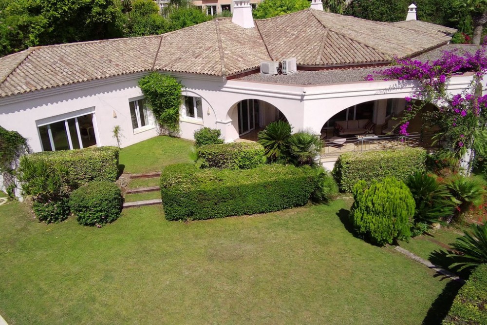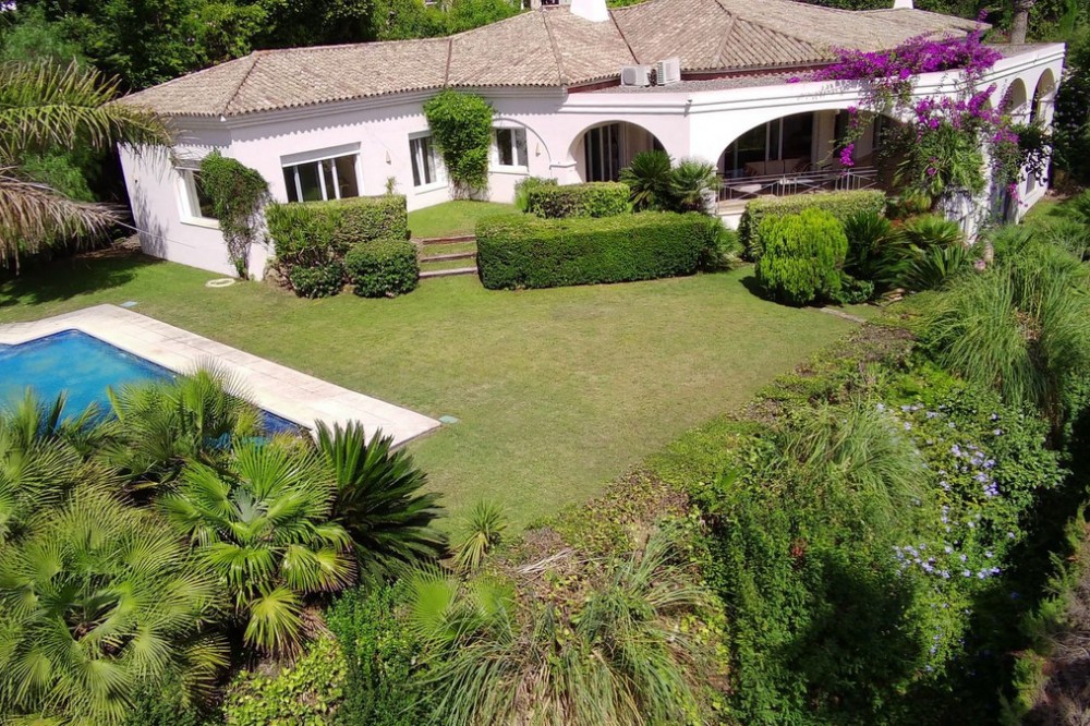 - Discover a Captivating 4-Bedroom Villa in Sotogrande F-zone, Offering Stunning Views of the Sea, Golf, and Countryside. On the main level, step into an extraordinary entrance, opening to an expansive living area thoughtfully divided into different spots for entertainment and relaxation. It encompasses a fireplace-adorned seating corner, a lounge with terrace access and breathtaking views, a dining space adjoining the roomy kitchen, and a TV lounge. These interconnected zones create a seamless backdrop for hosting gatherings. Moreover, expansive sliding glass doors seamlessly connect to the south-east facing veranda, offering stunning sea and countryside views, and granting entry to the garden and pool area. This level also houses the master bedroom with en-suite bathroom and dressing room, affording enchanting views of the garden, pool, and sea. Two additional bedrooms, a shared bathroom, a guest toilet, laundry area, and garage complete this floor. Outside, a vibrant subtropical garden adds beauty and can be easily maintained. The lower level holds an independent guest apartment with a bedroom, bathroom, and living area. Convinently located near the Sotogrande International School and many prestigious golf courses. Villa features include: Elegant marble flooring Individual AC units in bedrooms Convenient automatic irrigation Sweeping sea views from master bedroom, living area, veranda, garden, and pool Automatic gates for driveway access with ample parking space Secure closed garage Luxurious underfloor heating