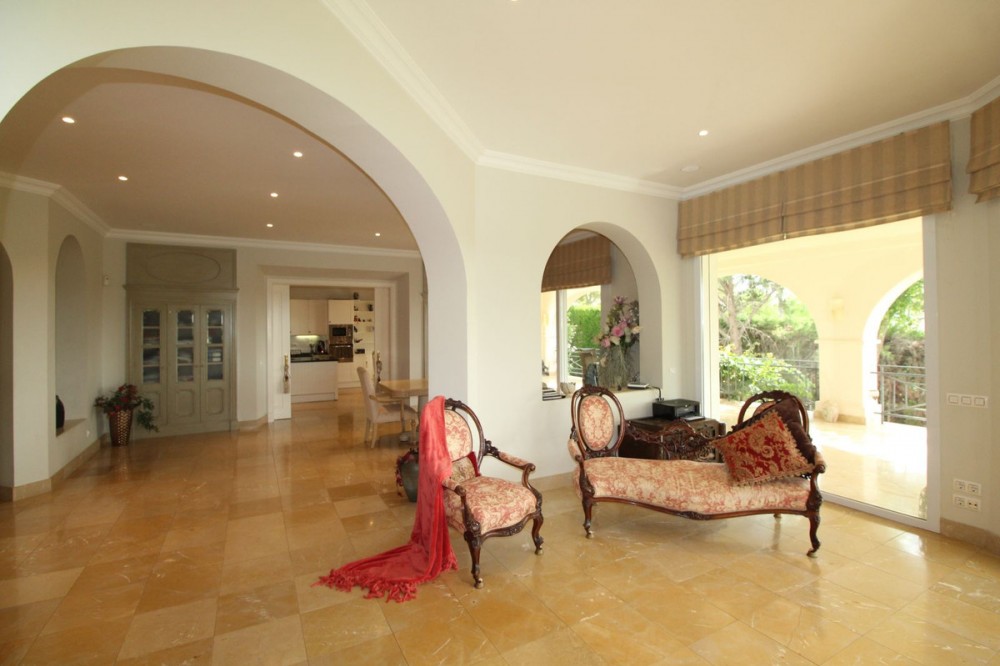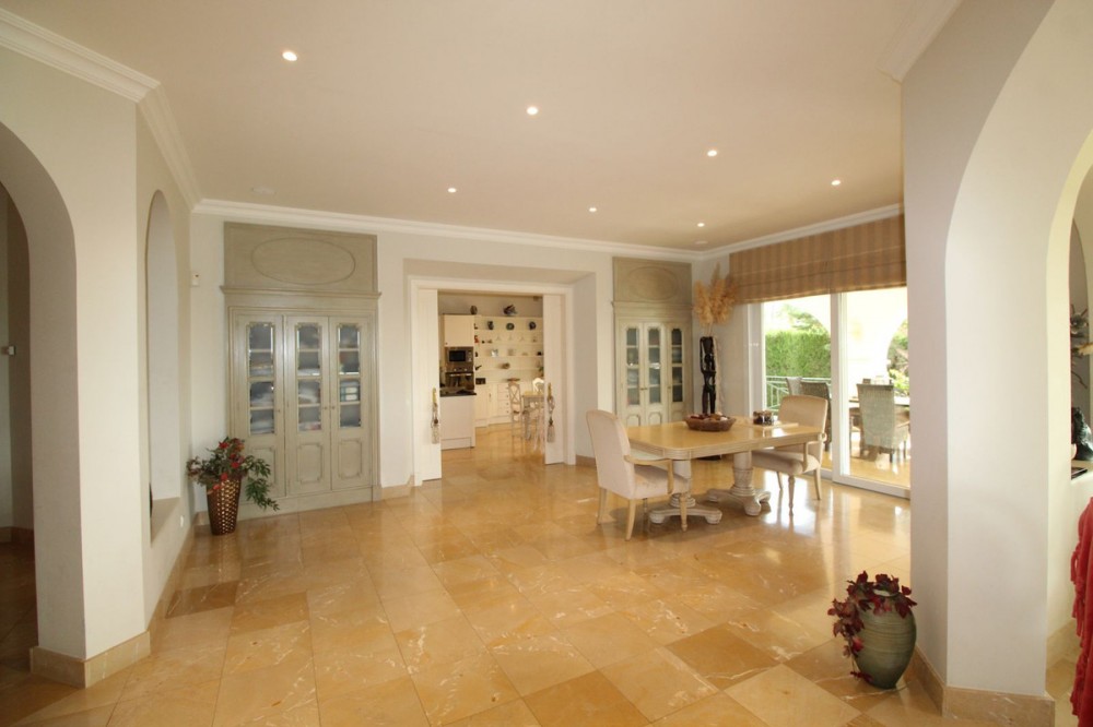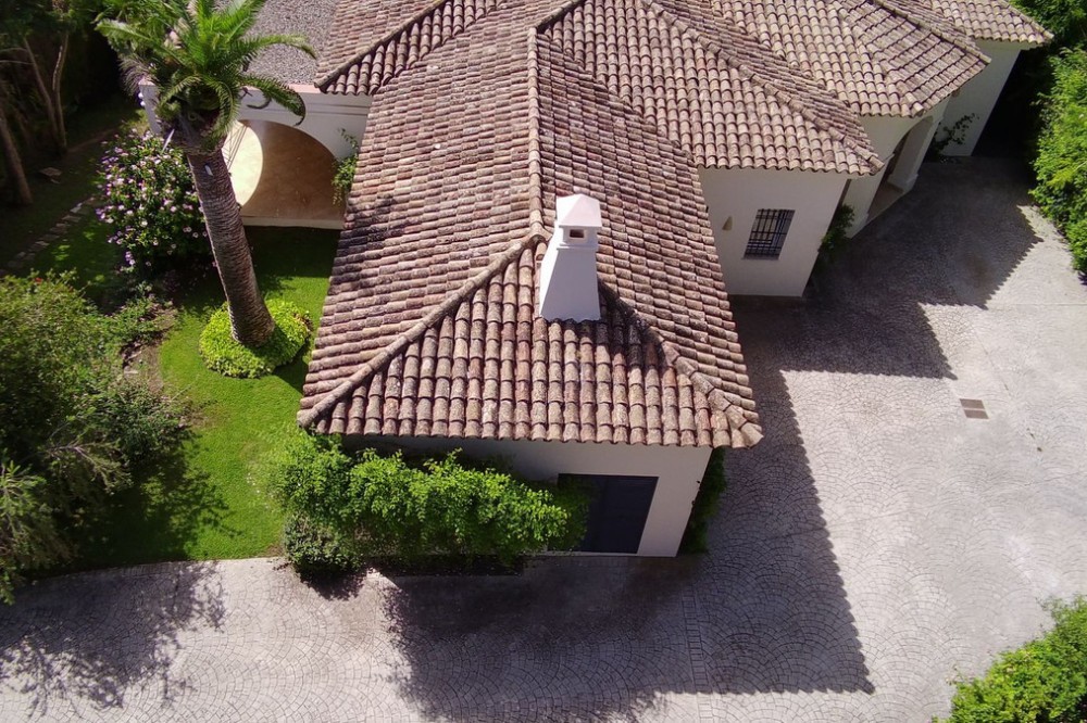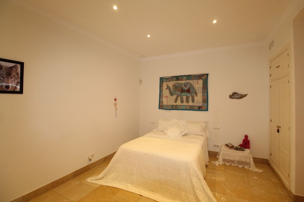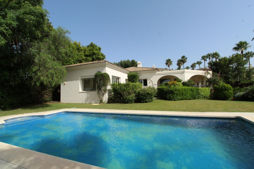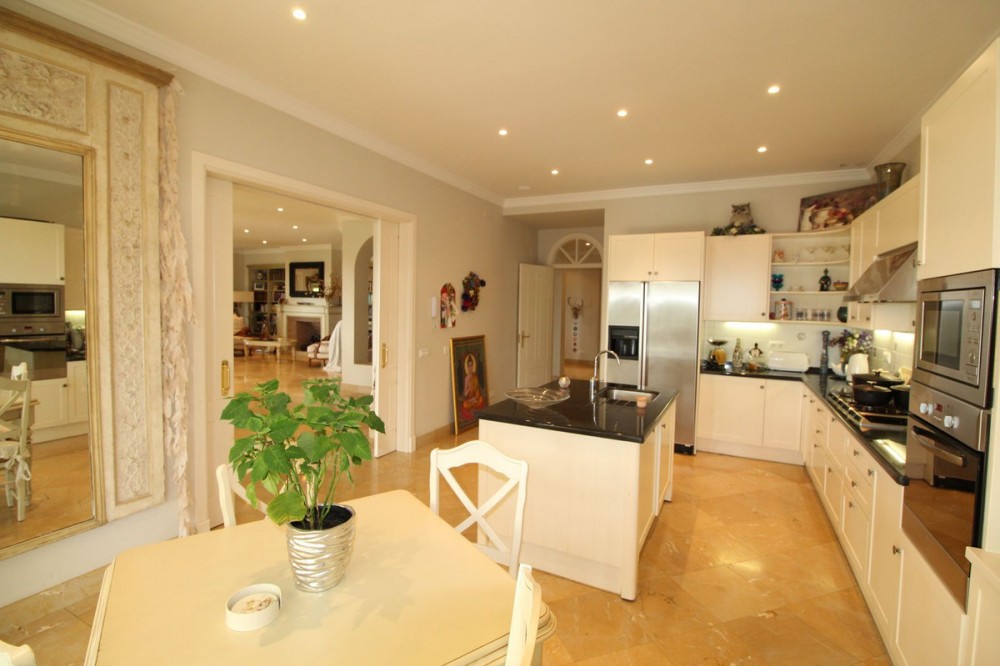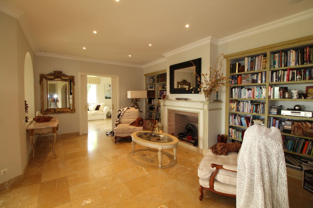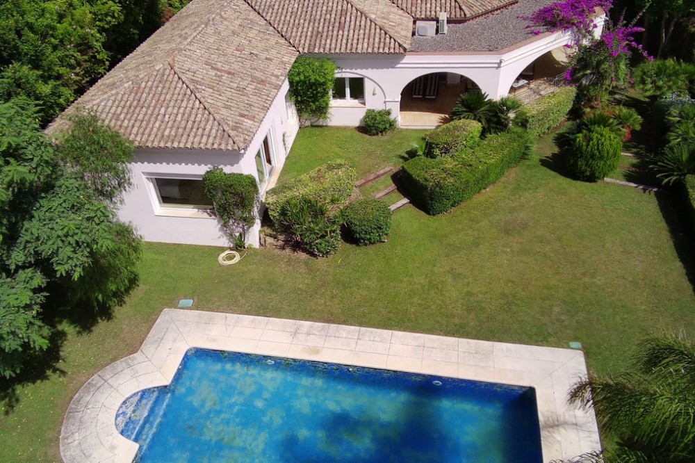 - Discover a Captivating 4-Bedroom Villa in Sotogrande F-zone, Offering Stunning Views of the Sea, Golf, and Countryside. On the main level, step into an extraordinary entrance, opening to an expansive living area thoughtfully divided into different spots for entertainment and relaxation. It encompasses a fireplace-adorned seating corner, a lounge with terrace access and breathtaking views, a dining space adjoining the roomy kitchen, and a TV lounge. These interconnected zones create a seamless backdrop for hosting gatherings. Moreover, expansive sliding glass doors seamlessly connect to the south-east facing veranda, offering stunning sea and countryside views, and granting entry to the garden and pool area. This level also houses the master bedroom with en-suite bathroom and dressing room, affording enchanting views of the garden, pool, and sea. Two additional bedrooms, a shared bathroom, a guest toilet, laundry area, and garage complete this floor. Outside, a vibrant subtropical garden adds beauty and can be easily maintained. The lower level holds an independent guest apartment with a bedroom, bathroom, and living area. Convinently located near the Sotogrande International School and many prestigious golf courses. Villa features include: Elegant marble flooring Individual AC units in bedrooms Convenient automatic irrigation Sweeping sea views from master bedroom, living area, veranda, garden, and pool Automatic gates for driveway access with ample parking space Secure closed garage Luxurious underfloor heating