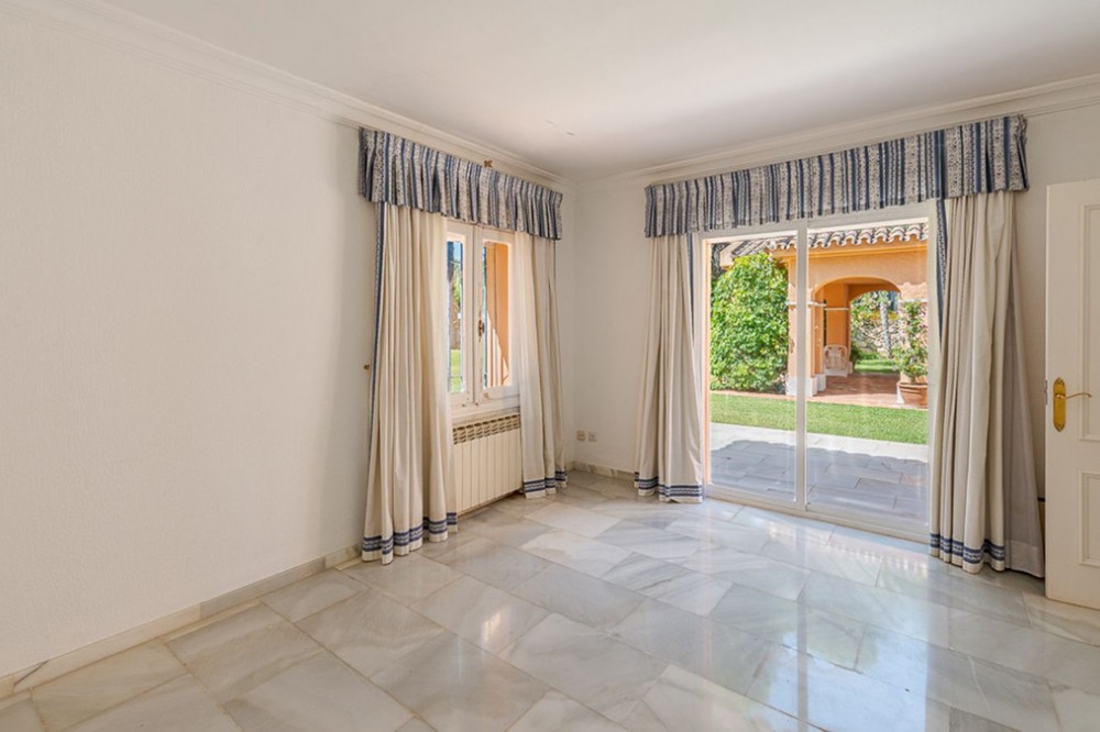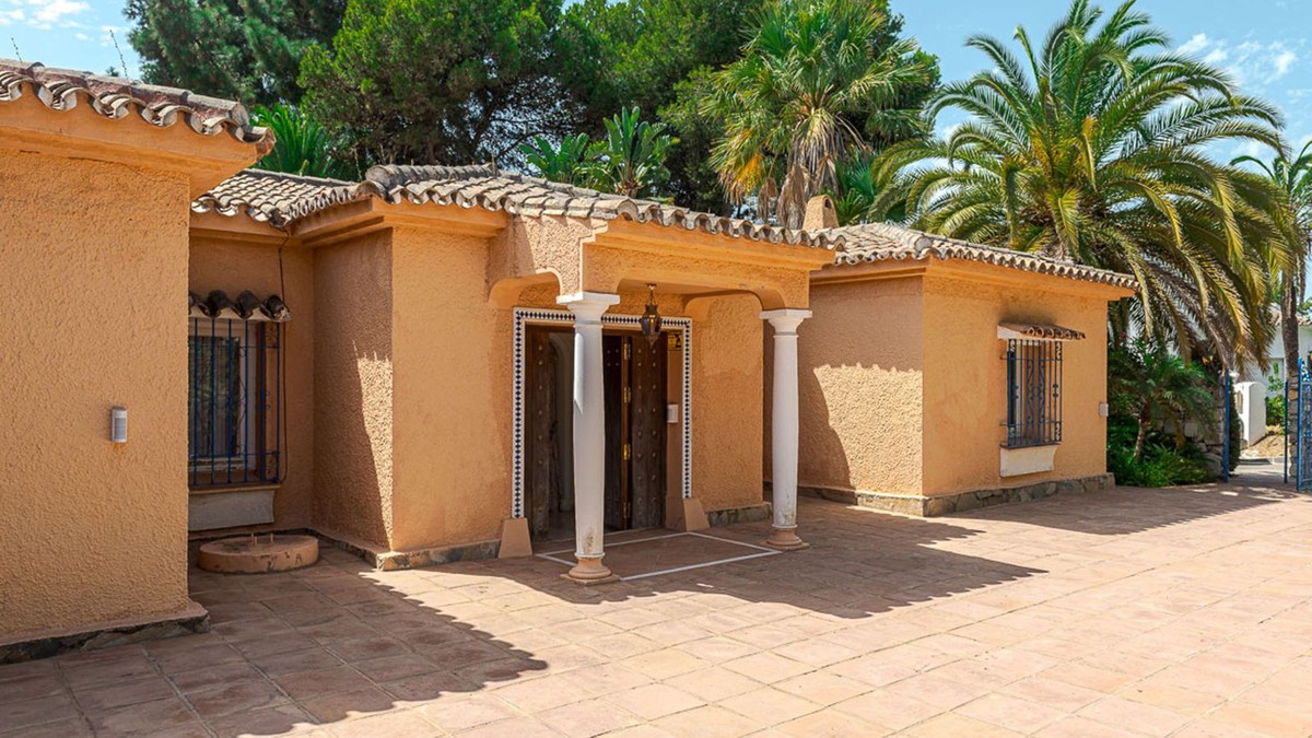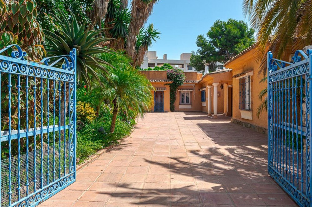 - Villa for sale in El Paraiso - Baronal 100 meters from the beach, The New Golden Mile, Estepona in a very quiet neighborhood. Villa in Andalusian style on a plot of 1,500 square meters with a pool of 11 by 6 meters. The villa consists of an entrance hall, spacious living room with fireplace, kitchen, four bedrooms each with a bathroom, as well as additional rooms. The villa should be remodeled according to your wishes, it is also allowed to add a floor. Ideally located between San Pedro de Alcantara and Estepona, two minutes from Salduna beach.