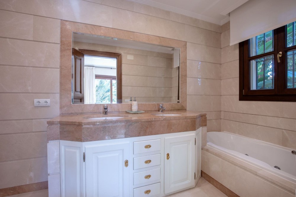 - The transition from an apartment to a house, or from a bustling city to a residential area, is something many of us have experienced at some point in our lives. You might be one of these individuals, or perhaps you're coming from another home near a golf course. In any case, if you're considering making a change in your living situation or property type, and would consider this property, it's likely a change that will provide you with more space, tranquility, fresh air, all without giving up the convenience of living in a town with all urban amenities nearby. What if the time has come to stop prospecting and start doing it? This marvelous villa is located in Los Arqueros urbanization, with 24/7 security. It's situated between La Quinta, El Madronal, La Zagaleta, and San Pedro Alcántara. In close proximity to the best golf courses in Marbella and Benahavis, the area offers excellent services, restaurants, various international schools, and easy access to the highway. The property stands out for its timeless qualities, thanks to the use of noble materials in its construction. It features highly efficient AC and heating technologies, with underfloor heating throughout the house based on aerothermal systems and solar panels. The rooms are very spacious, each with an ensuite bathroom, and the garage can easily accommodate 4 cars, with an existing electric car charging installation. This wonderful villa features two basement floors, one of which is open-plan, while the other is designed to accommodate a gym and a hammam with a 10,000-liter water reserve. The mature garden provides an oasis of tranquility around a spacious pool and seating area. Everything is just ready to create your new home. Would you like to call us to request a viewing?