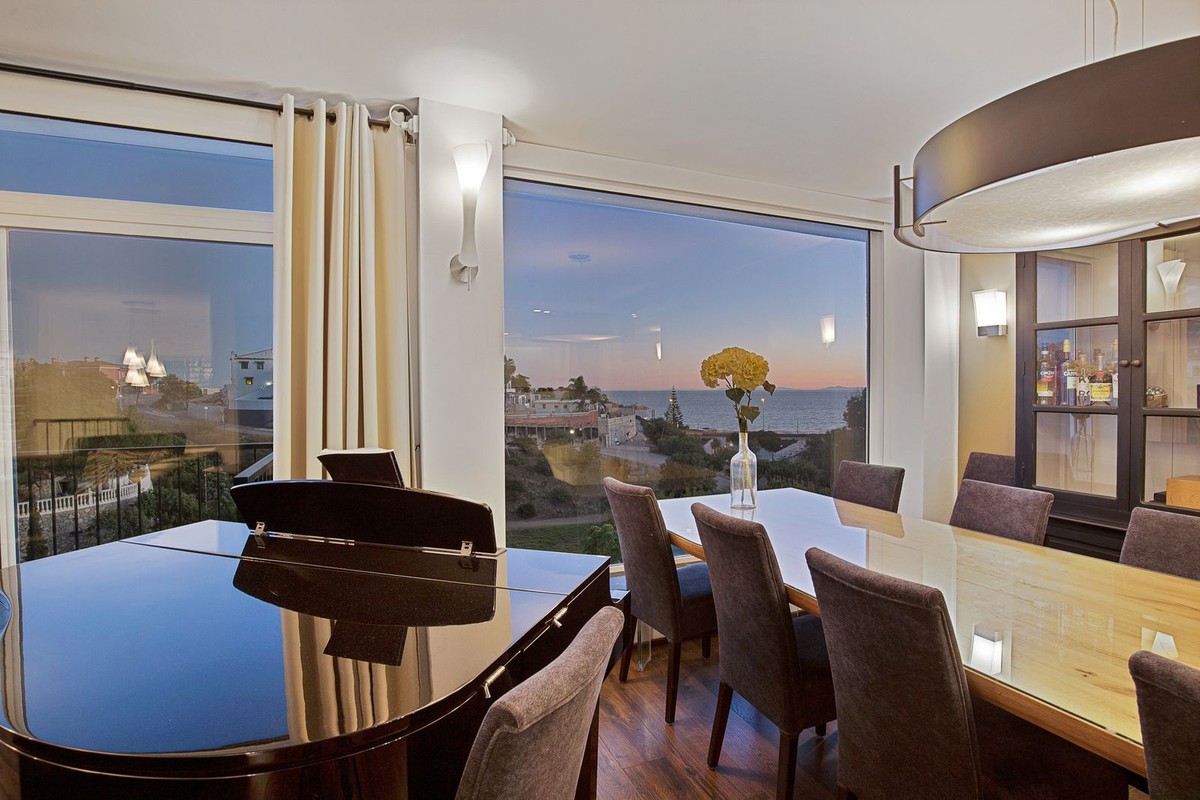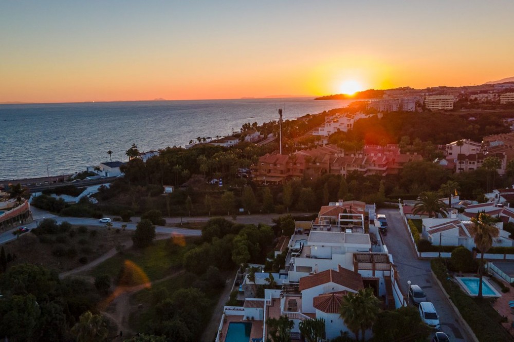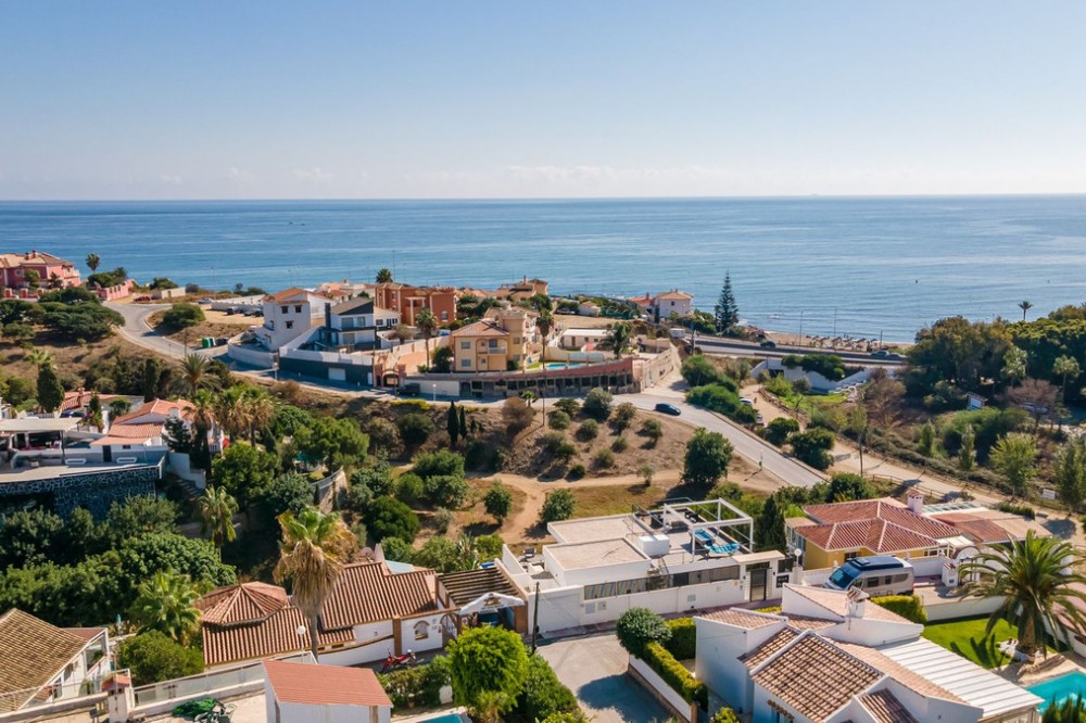 - Welcome to Villa Perla in El Faro this unique villa offers everything you could wish for in modern luxury living. The villa has been expanded and completely renovated during the years 2016-2018. The technical and constructional characteristics of the house are unparalleled in Spain. All rooms have insulated floors and stylish laminate, wet rooms have tile and underfloor heating, and the outer walls have insulation and double masonry, which ensures excellent energy efficiency. All windows and doors have thermal glass and anti-theft glass The house has an efficient mechanical ventilation system built by a Finnish company with inlet and outlet air with heat recovery. Three separate ventilation machines distribute air to a residential building, a gym and a garage. In addition, the house is connected to the natural gas network, so the domestic water and the swimming pool are heated inexpensively. In the upstairs living room, you can enjoy beautiful evenings by the gas fireplace connected to the gas network. Each room has its own separate air heat pump for cooling and heating. In addition, the living room has electric sun blinds on the inside of the window panes. Villa Perla also offers good opportunities for relaxation in the swimming pool and hot tub on the pool floor with salt water. The swimming pool also has a countercurrent device. The sauna has Helo sauna automation and a timed digital heater. The kitchen/bar on the pool floor has a bar window that opens up electrically in the direction of the terrace. The security of the house is top class thanks to electronic locking, burglar alarm equipment and camera surveillance. The lift doors in the garage and on the upper level are practical and easy to use. The apartment house has space and comfort for the whole family; 6 bedrooms, 6 bathrooms, 3 wc, 2 kitchens, 2 living rooms, utility room, storage room for linen and lockers, study with access through a secret door and a gym with air conditioning and mechanical supply/exhaust air. The sauna has two outdoor showers and a toilet. The garage can accommodate two cars and three motorcycles. The exit next to the garage leads to El Faro beach, which is less than 200 meters away, with restaurants. The property is sold with movables; two fully equipped kitchens, dining tables, living room furniture, TV chairs, bar furniture, sun loungers, outdoor furniture and all rooms have double beds (14 beds in total) and a sofa bed. In addition, the store includes two large TVs, gym equipment. Contact us, we will be happy to present this great property.