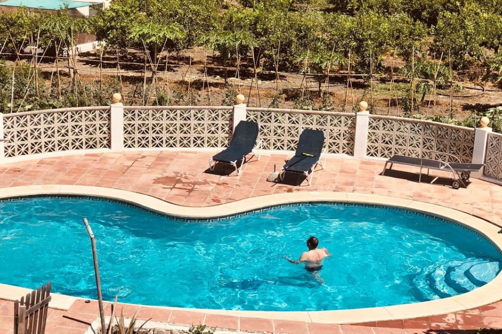 - Large house in the centre of Cancelada with almost 4,000 m2 of land around it. The house is separated into three apartments (with different deeds), a large basement, swimming pool and irrigated field, currently used for fruit trees. It is particularly interesting as a project for investors who would like to make it into a small aparthotel or apartments for rent, or for someone interested in renovating it and converting it into a single large villa with its own plot in the center of the town. The plot itself is very interesting to build on and highly profitable due to its location.