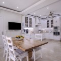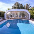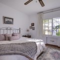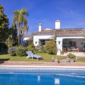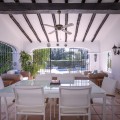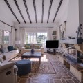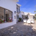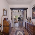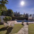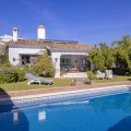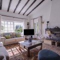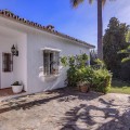 - "Un Paso Mas" is a unique cortijo style villa very close to Guadalmina Club house, in Guadalmina Alta. The interior exudes character with beautifully patterned antique terracotta tiles. There are four double bedrooms, each featuring its own ensuite bathroom. The spacious master bedroom has been exquisitely designed and includes both a shower room and a jacuzzi bath. There is also a guest bathroom. In the cosy living room you will find beautiful high, exposed beamed ceiling and a grand fireplace. The high beamed ceiling adds a touch of rustic charm, and the room has plenty of natural light. Connected to the living room is a sunken dining room, creating a sense of intimacy with sliding doors leading to an expansive covered terrace. Views of the pool and garden can be enjoyed from the terrace. A unique mezzanine office space also adds a lot of charm to the living room area. The heart of the home, is the spacious kitchen, fully fitted and designed for both style and functionality. Antique white wooden cupboards complement the classic style, creating a warm and inviting atmosphere. The double sink adds convenience to daily chores, and the kitchen window opens onto a quaint courtyard. The villa has a convenient two car garage, providing secure parking for your vehicles. Within the garage is a dedicated workshop space, fitted wardrobes and plenty of storage. A thoughtful addition to the property is the well-designed laundry room, complete with ample storage and a pantry. Ceiling fans and air conditioning ensures a comfortable climate throughout the villa. The pool with retractable roof enables year round swimming with an outdoor shower area. The wrap-around tranquil walled garden boasts mature avocado, orange, and lemon trees that provide not only shade but also a delightful fragrance. The garden is a blend of lawn, artfully arranged tiles, and pebbles. An ornamental fountain also adds charm to the garden area. A convenient gate provides direct access to the road and the nearby golf course. A raised vegetable garden, special storage area for wood and ample terraces all add to this well thought out property. It truly is one of a kind!