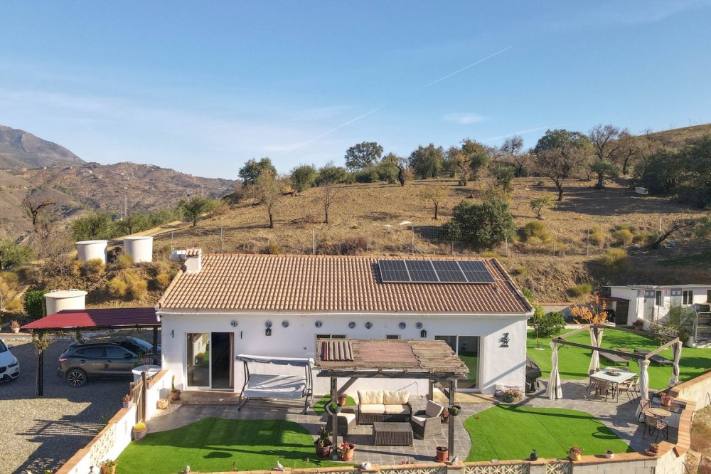 - Pretty Finca with the most glorious views . Peace, tranquility and privacy . Off Grid . Beautifully presented . Views of Yunquera in the distance . Pellet Burner . Breathe and relax . Workshop Nestled within the hills of Tolox, this off-grid finca offers a unique and secluded retreat, providing an unparalleled connection with nature. Surrounded by Olive and Almond Trees are able to embraced by the tranquility of the countryside, this hidden gem promises an escape from the hustle and bustle of modern life. Property Details: As you ascend the winding track to the finca, breathtaking panoramic views unfold, revealing the picturesque landscapes of the Tolox and Yunquera hills. The property is perched on a vantage point, allowing you to witness awe-inspiring sunrises and sunsets that paint the sky with a myriad of colors. If you are looking for a property that immediately gives you a feeling or relaxation then this is the property for you. As soon as you arrive and breathe in the mountain views you feel your shoulders drop. The owner has recently upgraded the property with new solar panels, new batteries and a pellet burner making this property a very comfortable, energy efficient home. A shaded terrace to the rear of the property welcomes you a necessary cool spot during the summer months. To the right is a separate utility room. Entering into the property you are drawn to the views that are framed by the patio doors and a window to the side aspect framing the view of the village of Yunquera in the distance. The kitchen is open plan to the lounge area making this room a real social feel with access to both terraces this is a property to entertain should you wish to do so! The property has three double bedrooms the master with the added luxury of an ensuite bathroom and patio doors leading directly to the terrace. The guest bathroom is located between bedroom 2 and 3. The rear terrace is particularly special, the owner has created several seating areas to enjoy the panoramic vistas. The right of the terrace sitting to the rear of the terrace is a workshop. The property has 8 Solar Panels and 2 Lithium Batteries plus a generator (the generator is seldom required approximately 11 times in the last 2 1/2 years) A water delivery of 3,000lts costs 55€. During the winter the owner orders water every 4 -6 weeks, during the summer a delivery every 3 - 4 weeks (the owner has lots of plants). The owners has several water deposits for storage. 10,000ltrs. 6,0000ltrs. 2,000ltrs and 2,000ltrs. Outdoor area and Land: Mainly hillside, easy to maintain Views: Panoramic mountain views Access: A mixture of track and concrete, a 4x4 is advisable.