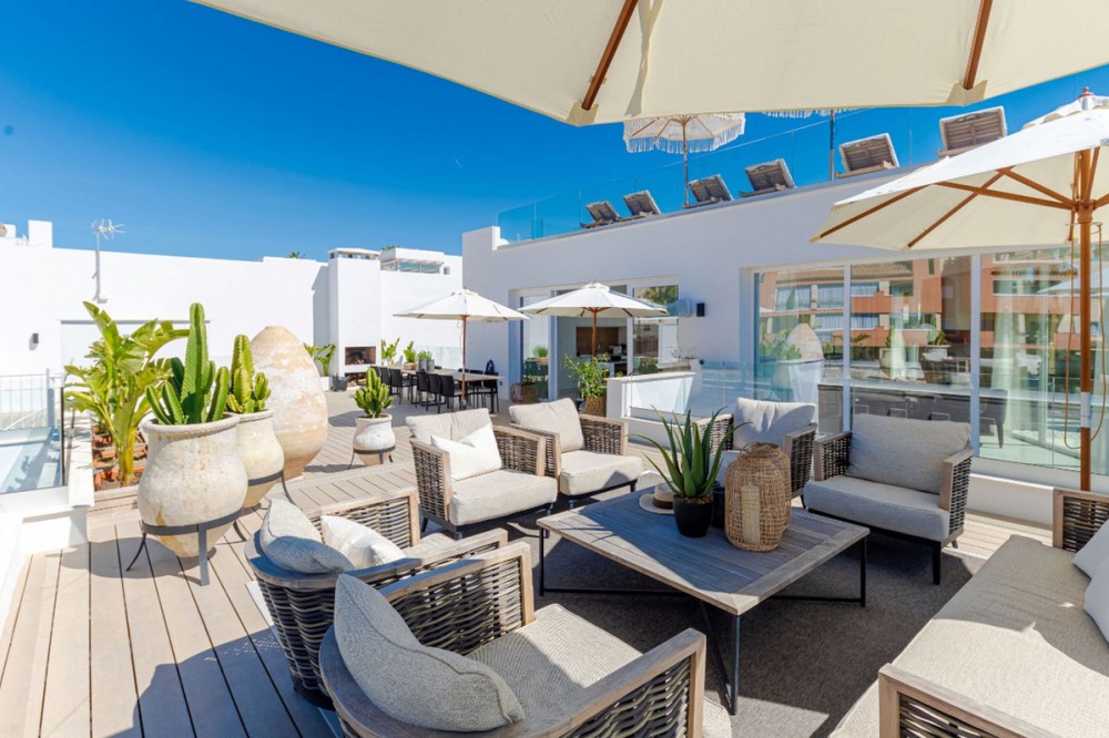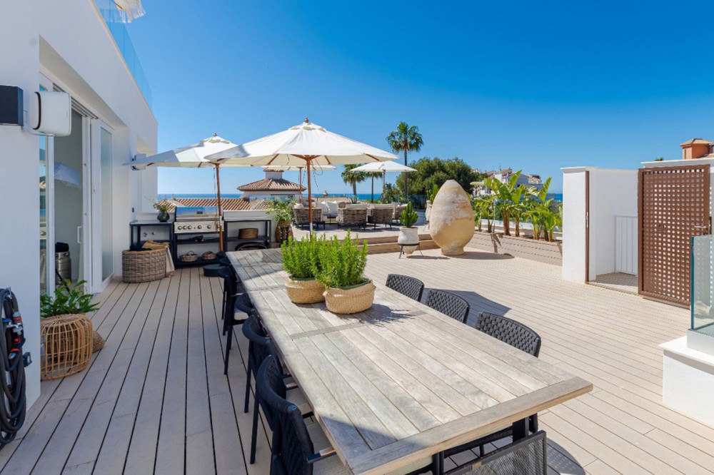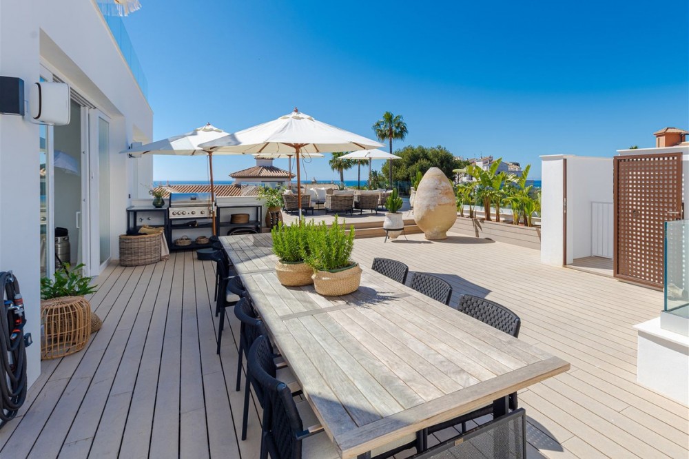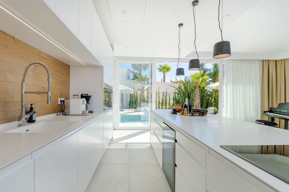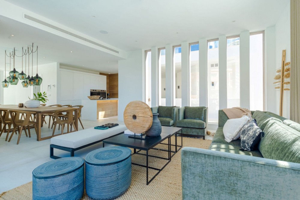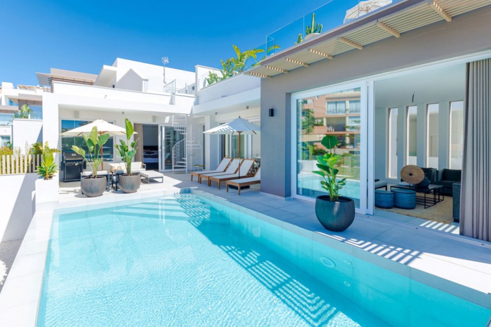 - 9 BEDROOM SOUTH-WEST FACING LUXURIOUS VILLAS WITH 2 HEATED SWIMMING POOLS, CINEMA ROOM, GYM AND WINE BODEGA CLOSE TO THE BEACH. This unique contemporary 9-bedroom property consists of TWO SEPARATE UNITS which are adjacent to each other on two adjoining plots. The properties could easily be joined together by installation of a lift or staircase if desired. Situated in a luxury, secure gated community, just 1.2 km (a 15 minute walk) from the beach, shops and restaurants in Riviera del Sol and Calahonda. This new development of 12 low-rise villas has been constructed in a contemporary style using very high-end materials. With a combined build size of 476 m2 these two properties consist of two lounges, two fully-equipped open-plan modern kitchens, two guest bathrooms and two large laundry rooms. All nine bedrooms (three in one property and six in the other) have ample fitted wardrobe space and ensuite bathrooms with underfloor heating. Nine of the bathrooms have walk-in showers, sink, and toilet and 1 bathroom has bathtub and shower. Most of the bedrooms have a semi-private outdoor space and are also equipped with a flat-screen TV. The owner has recently installed a gym with state-of-the-art equipment, a comfortable home cinema and a wine bodega with temperature control system. There is a Sonos home sound system providing excellent quality sound both inside and outside of the properties. High ceilings and large heat-resistant windows make the properties feel very spacious and bright allowing for the seamless integration of indoor and outdoor living spaces. Along with the two 8 x 4 metre heated saltwater swimming pools (with counter-current and electric cover) are a generous 89 m2 of terrace/porch areas and 2 huge roof solariums of 76 m2 and 141 m2 with glass balustrade and impressive 360 degree views over the sea and coastline. The total plot size is 977 m2. The current owners' interior design skills have transformed this property into a stunning and inviting space, perfect for daily living, as a holiday home or high rental-income property (currently rents for 12,000 Euros per week in high season). All interior and exterior designer furnishings are included in the asking price. There is gated covered parking for four vehicles and an additional two open parking spaces directly in front of the properties. Both properties are equipped throughout with air zone air-conditioning to ensure comfortable air quality and temperatures all year around, 1000 litre water reserve, water treatment system, UV resistant security glass, alarm system, safe, ample fitted wardrobe space, heated floors in ensuite bathrooms, high quality porcelain stoneware floor tiles (interior and exterior), 2 gas barbecues and video entry phone. Riviera del Sol sits on the Costa del Sol in Southern Spain midway between Marbella and Fuengirola. It is situated only a few minutes from the AP7 motorway access and the A7 national coastal road (formerly the N-340), allowing easy access to Malaga airport in 25 minutes and Marbella in 15 minutes. Riviera del Sol is a mixed residential and holiday area offering all the facilities and services needed to enjoy life comfortably. MUST BE SEEN TO APPRECIATE THE EXCELLENT QUALITIES AND POTENTIAL! VILLA 6 - 190M2 BUILD, 40M2 TERRACES, 76M2 SOLARIUM, 446M2 PLOT HALLWAY 3 BEDROOMS + 3 ENSUITE BATHROOMS GUEST BATHROOM UTILITY ROOM LOUNGE + OPEN PLAN KITCHEN (BUILT APART FROM BEDROOMS) 8 X 4 SWIMMING POOL SHARED COVERED PARKING FOR 4 CARS 1 OPEN PARKING SPACE VILLA 7 - 286M2 BUILD, 49M2 TERRACES, 141M2 SOLARIUM, 531M2 PLOT 6 BEDROOMS + 6 ENSUITE BATHROOMS (2 BEDROOMS ON LOWER FLOOR HAVE SEPARATE LOCK UP ENTRANCES) GUEST TOILET LOUNGE + OPEN PLAN KITCHEN UTILITY ROOM GYM WINE BODEGA CINEMA ROOM 8 X 4 SWIMMING POOL SHARED COVERED PARKING FOR 4 CARS 1 OPEN PARKING SPACE