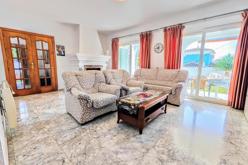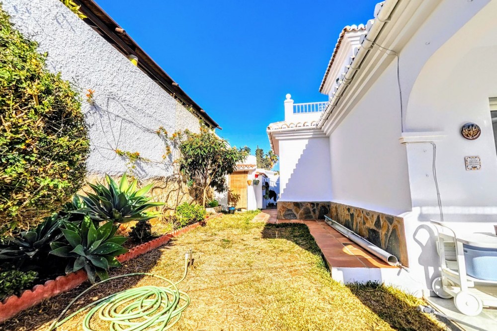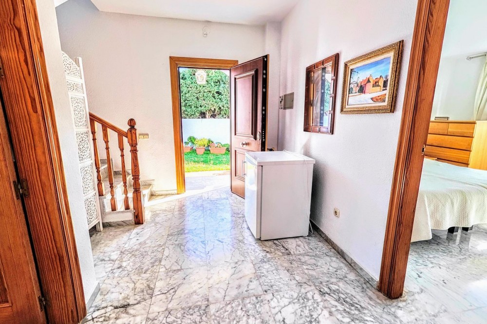 - DETACHED HOUSE WITH A PLOT OF 636 M2 IN THE HEART OF BENALMÁDENA COSTA IN THE PLAZA SOLYMAR AREA LESS THAN 500 METERS FROM PUERTO MARINA. It is distributed on two floors: The main floor is distributed with a large living room with a large window with direct access to the pool area. Fully furnished and equipped independent kitchen. 1 exterior double bedroom. 1 full bathroom with shower. Large entrance hall with storage areas. On the second floor we find 3 large double bedrooms, the master bedroom with an en-suite bathroom and two of them with a terrace. 2 full bathrooms. The land has large gardens and a swimming pool and a storage room. The house also has an interior garage, low consumption electric heating and fireplace in the living room.