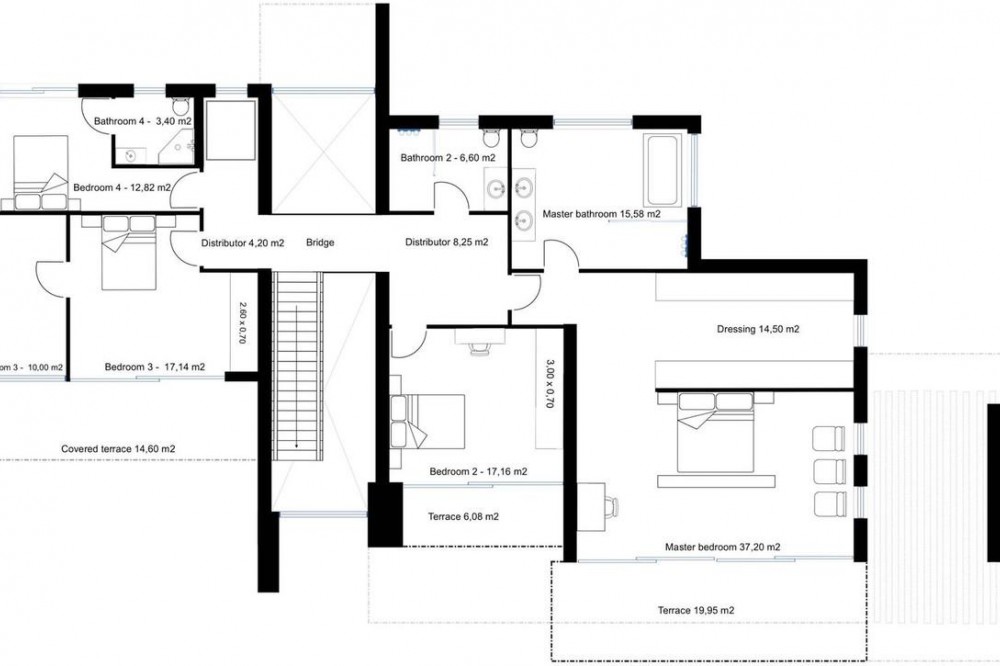 - OFF-PLAN ECOLOGICAL CONTEMPORARY VILLA - KEY-IN-HAND in Monte Mayor with views over the green valley, this property has it all, this will be a true jewel for those who love space, luxury, and quality! This luxury villa will be built on a plot of 7.250,00 m2 and consist out of 3 floors, all materials like the kitchen, floors, and bathroom walls will be from the well-renowned Grespania company. Ground floor: Pergola carport port with motorized entrance gate, entrance hall with double height ceiling, elevator, a distributor which leads to the guest toilet, technical room, and a bedroom with a big en-suite bathroom and private terrace. Furthermore, on this floor, you have a huge dining room with a tailor-made open-plan kitchen fully equipped with Bosch appliances, a pantry and a big living room. Both, the dining room and living room give out to the huge, covered terraces, and for those who love swimming or splashing a huge 80 m2 pool with a kid’s pool, water-featured bronzing area, and a chill-out. There is pavement around the full villa to make access to the different parts of the garden and villa easy. The garden will be easy to maintain and fully fenced with a 2-meter-high galvanized strong fence. First floor: The staircase or elevator leads you to a landing that divides the first floor into 2 parts. On one side you have 2 bedrooms each with an en-suite bathroom and one of the bedrooms has a private terrace. On the other side, you have a bedroom with a bathroom and a private terrace. And of course, on this floor, you have the master bedroom with a huge dressing, en-suite bathroom, and a big terrace. Basement/Garage: The garage has space for 4 big cars, furthermore you have the technical pool room, a toilet, and the car elevator. The storage room could be converted into a games room or cinema room Solarium of 45 m2 surrounded with glass to give you privacy PICTURES OF KITCHENS AND BATHROOMS ARE JUST EXAMPLES, THE FINAL CHOICE WILL BE THAT FROM THE CLIENT! Example of some of the specifications, - Interior and exterior floor tiles from GRESPANIA 600x600 – 800x800 - 1200x1200 (Color and size to choose) - Bathroom walls with COVERLAM plates (GRESPANIA) 2700X1200 (Color to choose) - Bathrooms from ROCA – DURAVIT – VILLEROY BOCH – GEBERIT – HANSGROHE OR SIMILAR - Aerothermia/airconditioning - Elevator from Schindler or similar - Underfloor heating in the full villa - Ceiling high windows with a sunken track, 5+5/chamber/4+4 - Ceiling high and 1-meter wide interior doors - Fully fitted kitchen with aluminum frame doors and covered with COVERLAM (Color to choose) - Island with COVERLAM 3600X1600 no visible joints (Color to choose) - White goods from Bosch or AEG - Heated pool - 30 solar panels - 3 lithium batteries of each 10kW - Car charger - Domotica - Car elevator We are a construction company, Key-in-Hand, that can design and construct any possibility you can think of. If you do not see a design of us that you like we design a totally new villa for you according to your ideas and input. Although we prefer to construct ecological building, we can construct from traditional construction to ecological constructions it all depends on you.