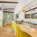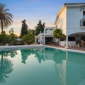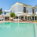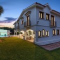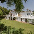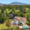 - UNIQUE LOCATION- EXCELLENT INVESTMENT Extraordinary villa with a unique location on the golf course in Guadalmina Baja, just 200 meters from the sea! This fantastic property boasts four bedrooms, each with its own en-suite bathroom. The master bedroom stands out with its spacious layout, featuring a cozy fireplace, walk-in closet, and a sizable terrace overlooking the meticulously maintained garden. Enjoy breathtaking views of the golf course and garden from the large windows and French balconies in every bedroom. The heart of the villa is the living room, characterized by its impressive ceiling height and welcoming fireplace. Natural light floods the space through the expansive windows, offering direct access to the garden. A library located above the living room provides a serene space for reading and relaxation. The dining room is perfect for hosting large gatherings, with direct access to the patio. The well-equipped kitchen boasts ample cooking space, accompanied by a dining area ideal for breakfast. Indulge in the spa facilities, complete with the option to install a jacuzzi, sauna, and access to the roof terrace. The lower level features a heated saltwater pool with an electric cover, a garden cinema, and a charming lounge area resembling a "tree house." The garden is a sanctuary of fruit trees, including peach, apricot, fig, orange, grapefruit, lunario lemons, lime, Australian lemon, kumquat, mandarin, and papaya, complemented by an extensive collection of over 15 different rose varieties. Convenient amenities include a garage for two cars, a driveway with space for eight cars, multiple storage rooms, a boiler room, technical room with an alarm system, and a separate room for pool equipment. The property is heated by solar panels, heat pumps, and gas. Don't miss this outstanding opportunity to own a truly remarkable villa in Guadalmina Baja, perfectly situated on the golf course. Easy viewings- Contact for viewing!