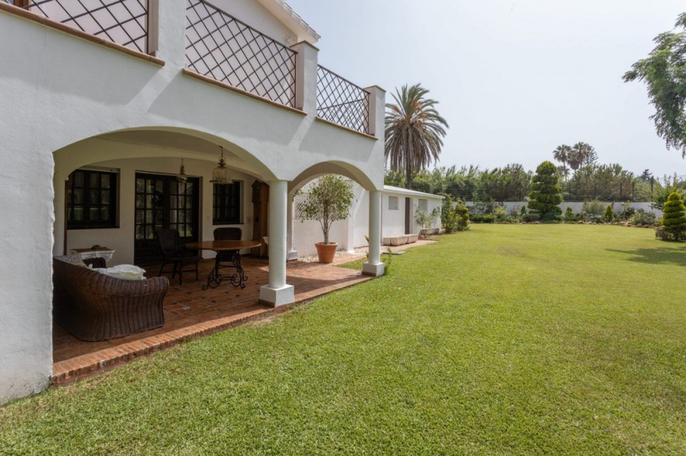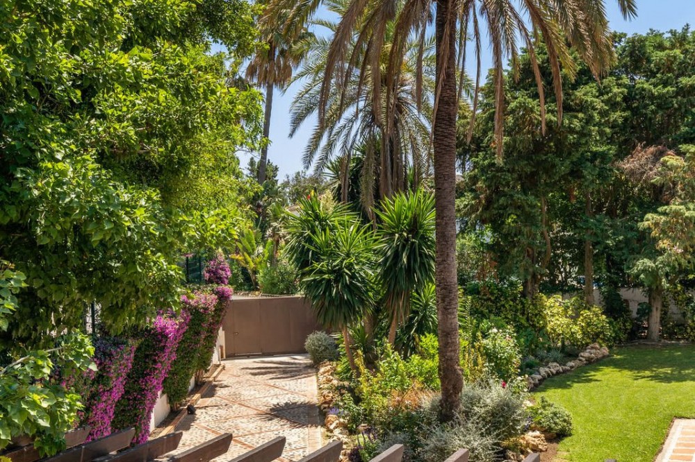 - UNIQUE LOCATION- EXCELLENT INVESTMENT Extraordinary villa with a unique location on the golf course in Guadalmina Baja, just 200 meters from the sea! This fantastic property boasts four bedrooms, each with its own en-suite bathroom. The master bedroom stands out with its spacious layout, featuring a cozy fireplace, walk-in closet, and a sizable terrace overlooking the meticulously maintained garden. Enjoy breathtaking views of the golf course and garden from the large windows and French balconies in every bedroom. The heart of the villa is the living room, characterized by its impressive ceiling height and welcoming fireplace. Natural light floods the space through the expansive windows, offering direct access to the garden. A library located above the living room provides a serene space for reading and relaxation. The dining room is perfect for hosting large gatherings, with direct access to the patio. The well-equipped kitchen boasts ample cooking space, accompanied by a dining area ideal for breakfast. Indulge in the spa facilities, complete with the option to install a jacuzzi, sauna, and access to the roof terrace. The lower level features a heated saltwater pool with an electric cover, a garden cinema, and a charming lounge area resembling a "tree house." The garden is a sanctuary of fruit trees, including peach, apricot, fig, orange, grapefruit, lunario lemons, lime, Australian lemon, kumquat, mandarin, and papaya, complemented by an extensive collection of over 15 different rose varieties. Convenient amenities include a garage for two cars, a driveway with space for eight cars, multiple storage rooms, a boiler room, technical room with an alarm system, and a separate room for pool equipment. The property is heated by solar panels, heat pumps, and gas. Don't miss this outstanding opportunity to own a truly remarkable villa in Guadalmina Baja, perfectly situated on the golf course. Easy viewings- Contact for viewing!