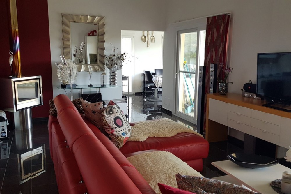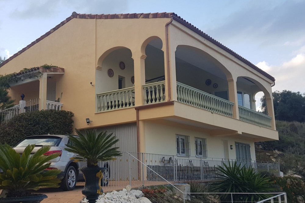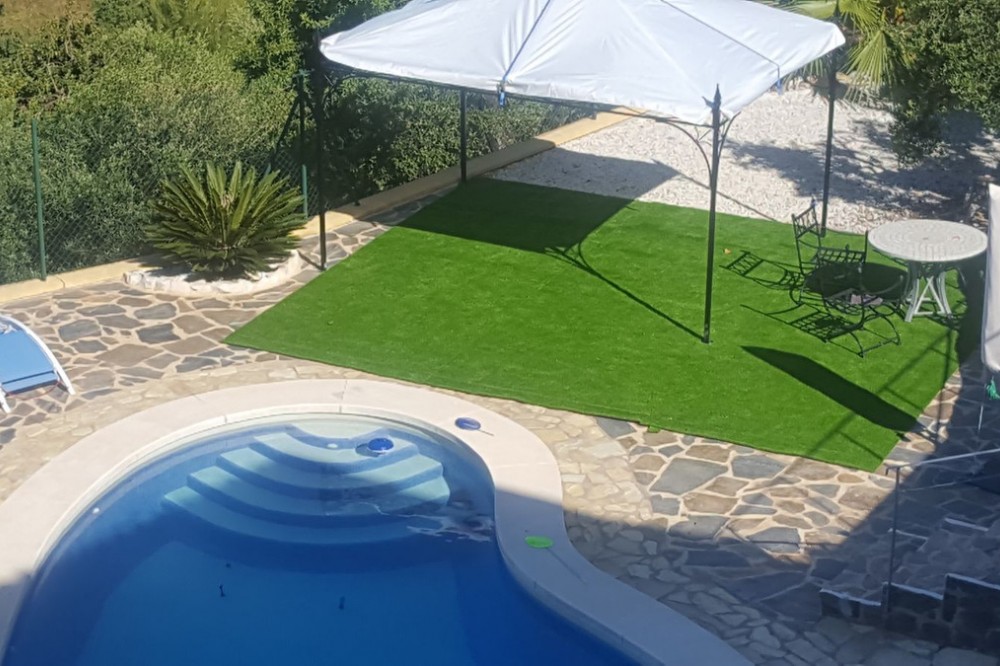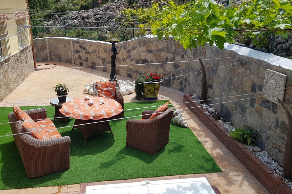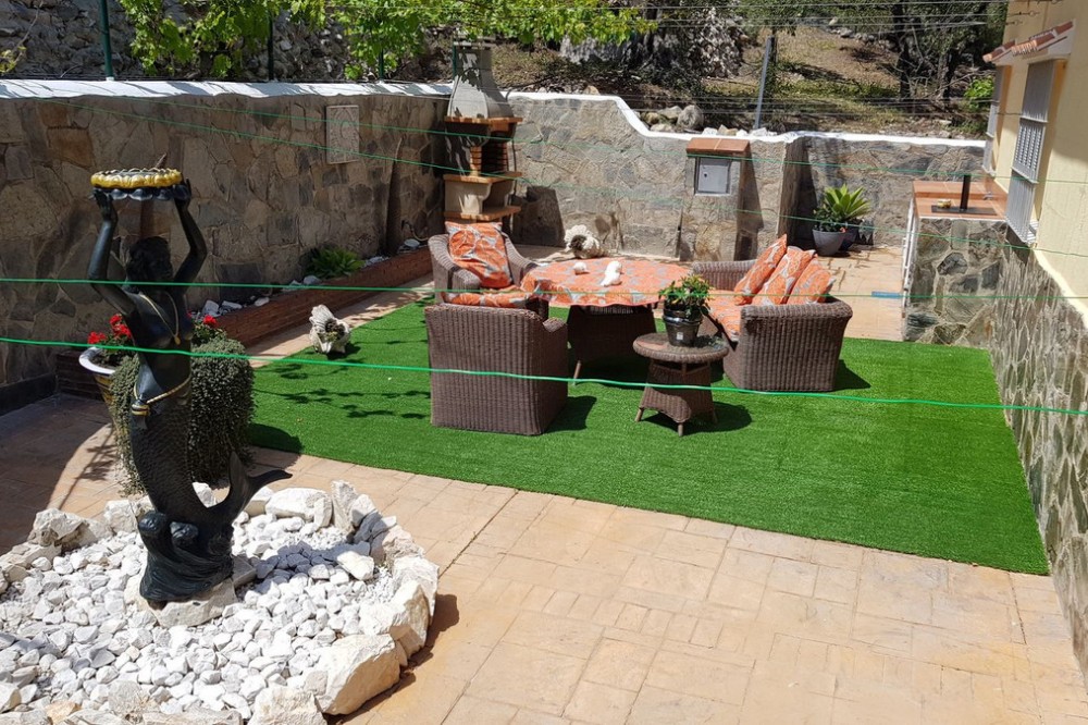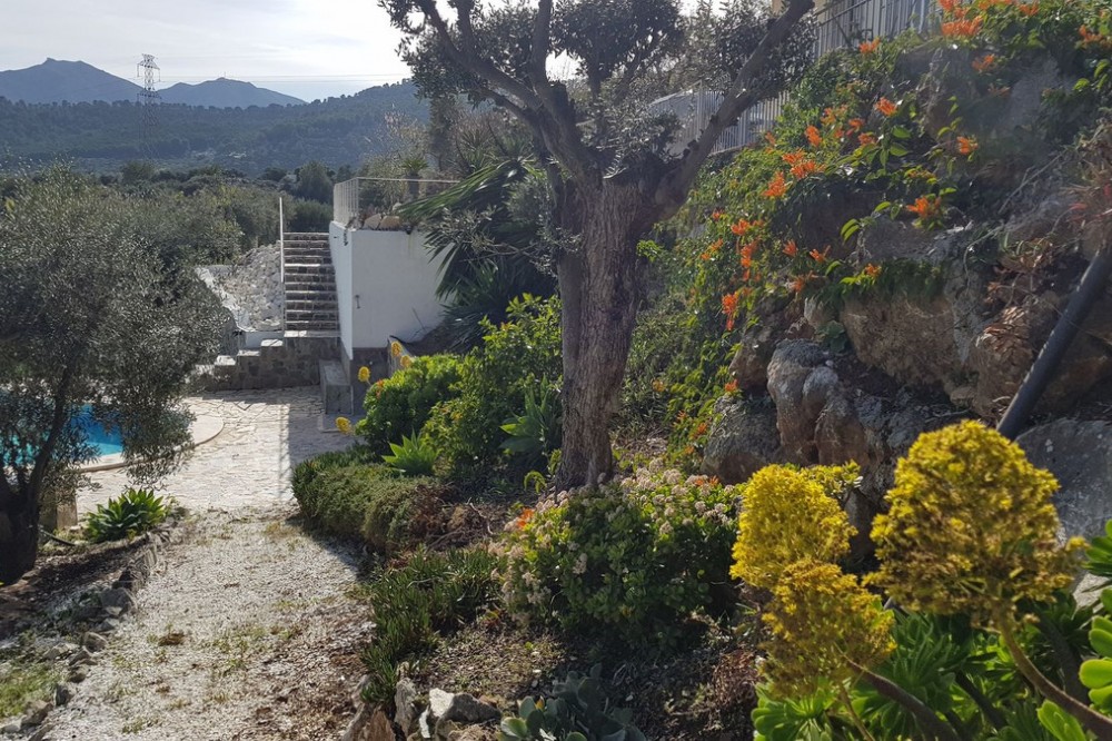 - This beautiful country house - built in 2012 - has a large garage with workshop (approx. 45 m²), a guest flat (approx. 45 m²) with living room and open-plan kitchen, a shower room and a separate large terrace. The living space is approx. 90 m². There are 2 bedrooms and 2 bathrooms (one en-suite) and an open-plan kitchen - very smart and only 3 years old. A large terrace of approx. 30 m² with marvellous views of the mountains as far as Málaga and the Sierra Nevada is accessible from the living room, another terrace is located behind the building. There is a private well and a large underground tank with a capacity of 11,000 litres for drinking water in case the groundwater is insufficient. A small pool - not heated, no air conditioning and no heating - just a fireplace in the living room. The plot measures approx. 3,500 square metres and is planted with olive trees, lemon trees, vines, almond trees, etc. For further information please do not hesitate to contact us Translated with DeepL.com (free version)