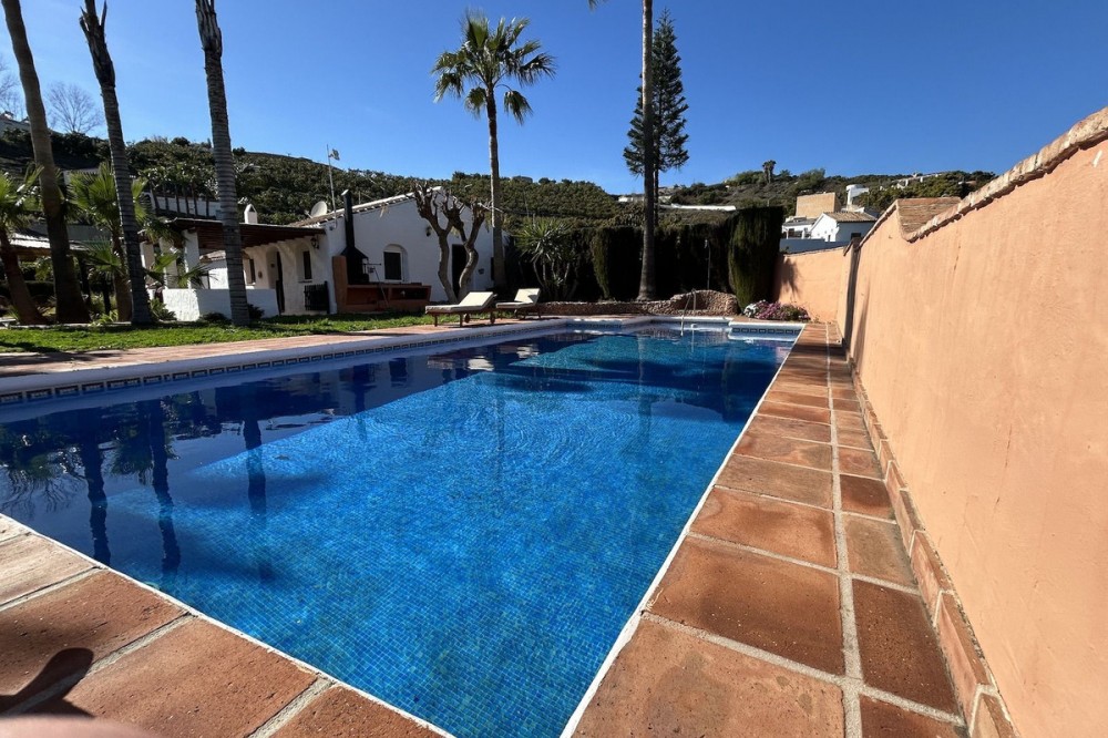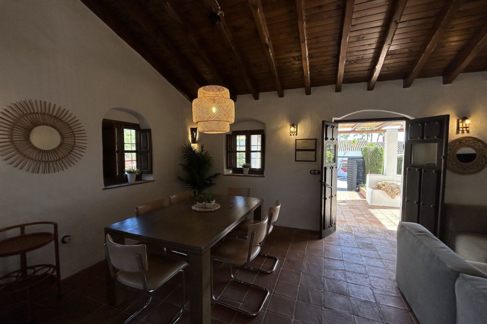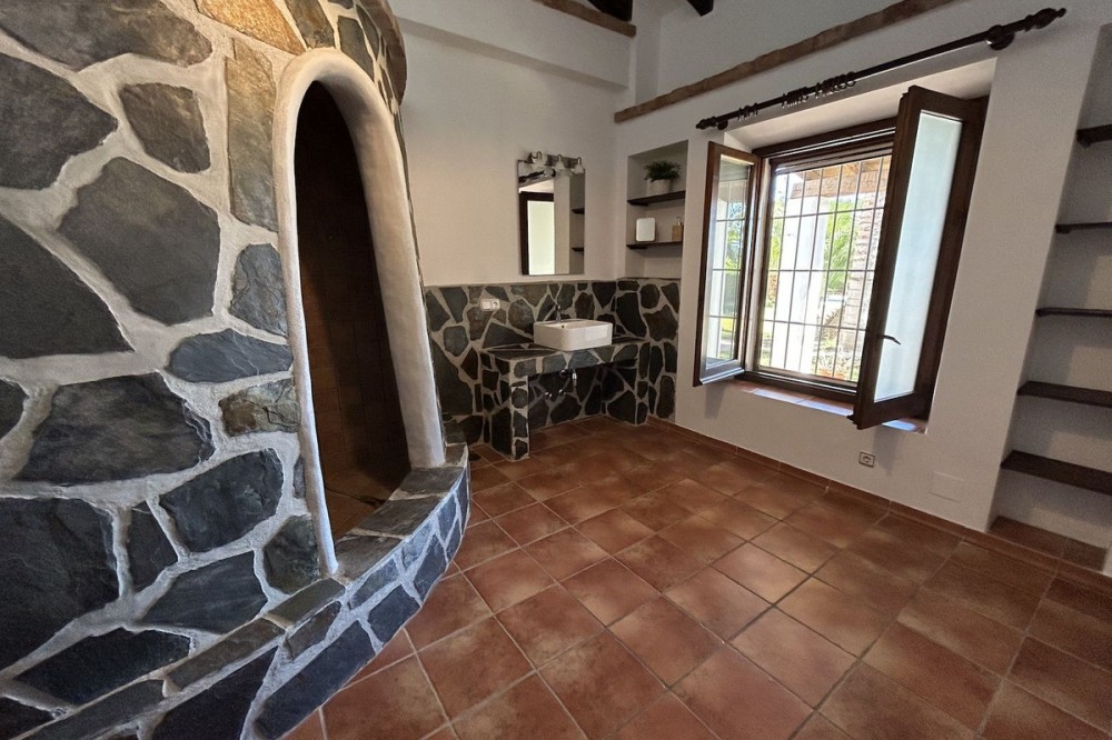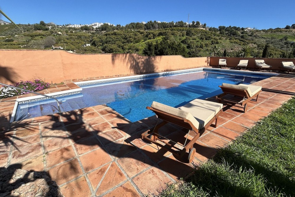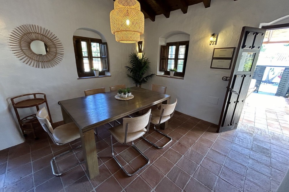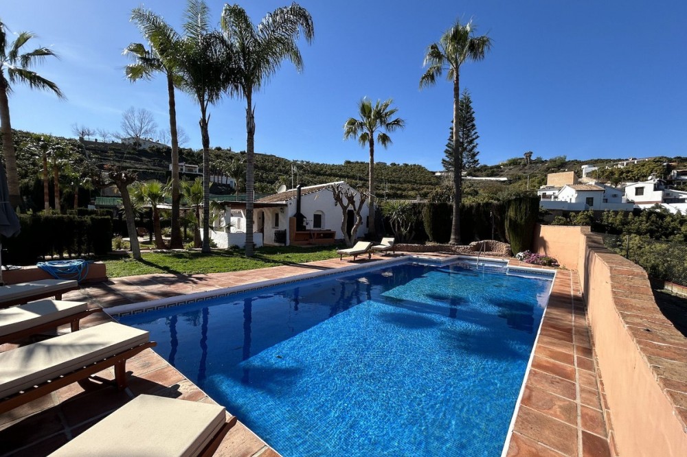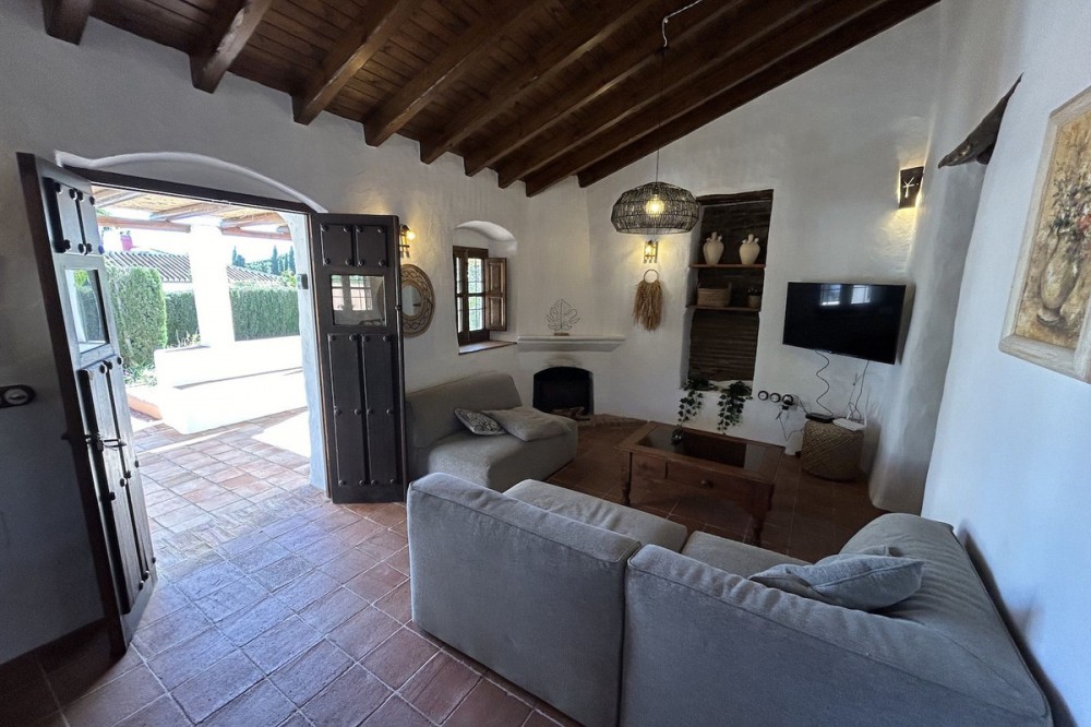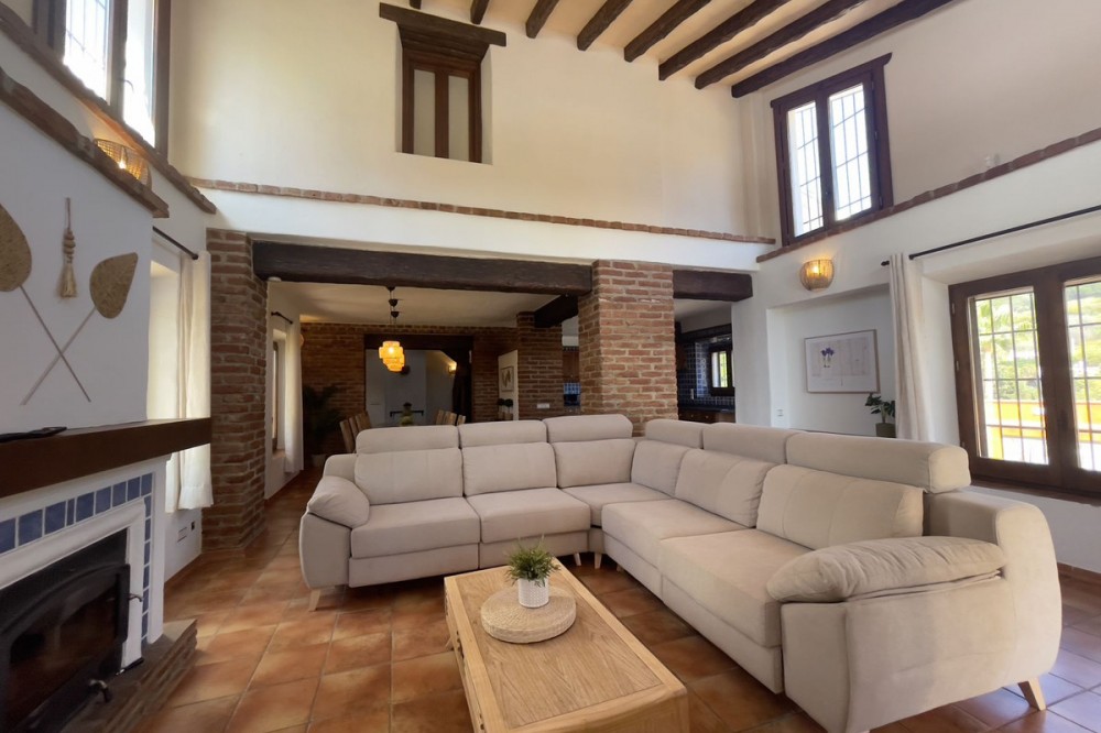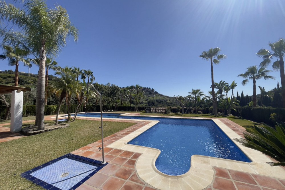 - Unique property for sale in Frigiliana countryside. This breathtaking immense complex is made up of three villas (one independent and the main is two villas in one) with a total of 9 bedrooms, 11 bathrooms and two separate stable buildings, (13 individual stables of ample size), two swimming pools and three paddocks, one of which is equestrian size approx 40x20m. The villas have been kept to a high standard with modern style and rustic feel, they are ready to move in as well as the maintained equestrian area. The houses have been built on a large scale with more than ample size bedrooms, living areas and outdoor space. It is more of a ranch in the Andalusia countryside covering 13,441m2. There are several terraces, two barbecue areas to enjoy that all important al fresco dining. In the living rooms of both houses there are large wood burning fireplaces for the cooler evenings. There are two large swimming pools one which is 1400m2 with seaviews and mountain views. What makes the property so amazing and unique is its huge land area and everything on the same level without slopes. The location is between seaside village of Nerja and picturesque mountain village of Frigiliana. It also has great links to visit other areas in Andalusia such as: Granada, Seville, Malaga, Ronda and Marbella. In the winter months you can enjoy skiing in Sierra Nevada as well as the sun on the beaches of Nerja. The potential for this property is endless: A boutique hotel, ranch, venue for events (with ample parking areas), group holidays, the list goes on. Or simply move in and appreciate it as it is. It has previously been used as an upmarket Bed and Breakfast and the stables rented out privately for an income. There is still room to extend as the basement of the main house is untouched and could be converted into two apartments with their own outside space. Seeing is believing, we have included an up to date virtual tour of the property and can always arrange a viewing if you are interested. Do not hesitate to contact us if you have any questions?