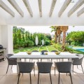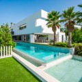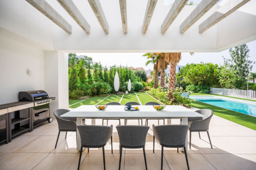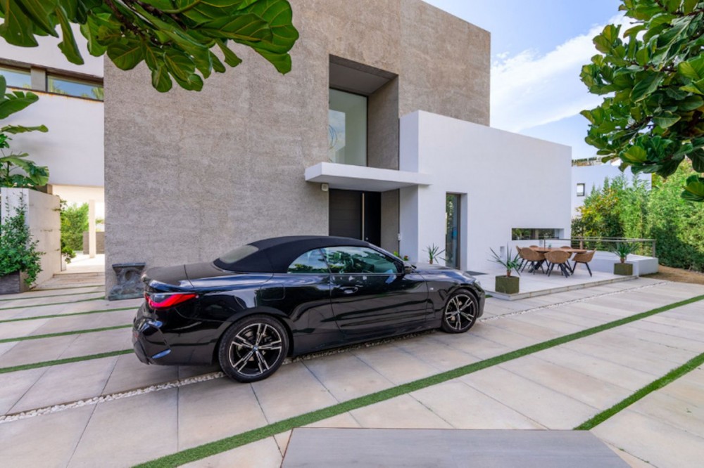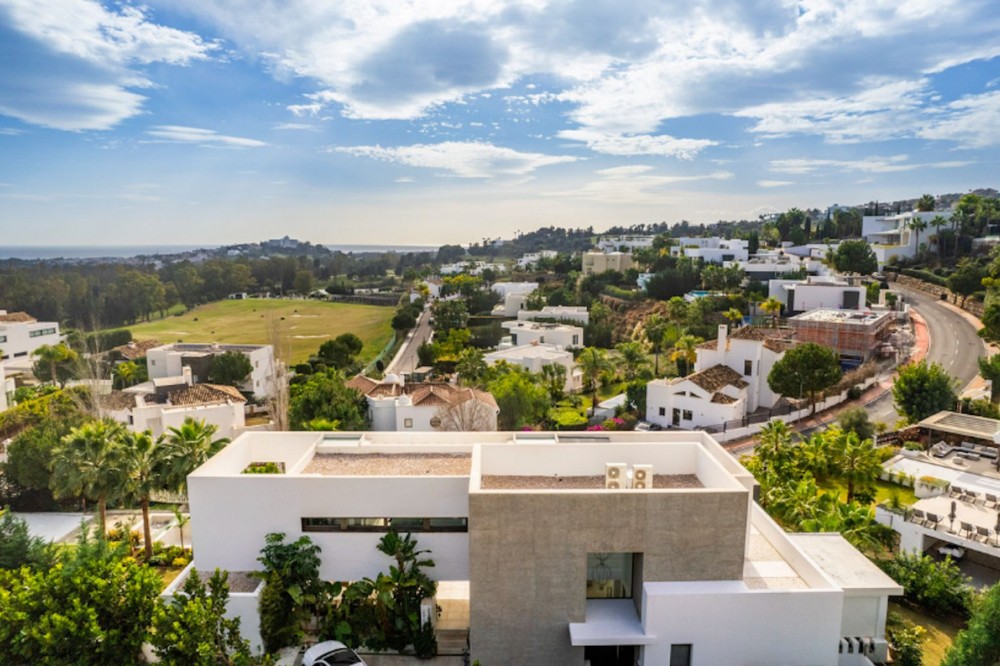 • This 4-bedroom eco-friendly villa for sale in La Alqueria, a rapidly emerging area in Benahavis known for its breathtaking natural beauty and significant investment potential. Located on a hill, this property offers parcial sea views lush Andalusian hills, majestic mountains, and serene valleys adorned with golf courses. La Alqueria is renowned for its proximity to sports, leisure, and pleasure facilities, including Blue-flagged sandy beaches, making it a coveted location. The villa is situated in a peaceful and convenient location, close to the charming seaside town of San Pedro de Alcántara, the glamorous Puerto Banus, and the historic town of Benahavis, known for its unique dining experiences. The 857 m2 property, set on a 1,460 m2 plot, embodies modern chic with its open-plan living design, exquisite architectural details, and sophisticated lighting. It features floor-to-ceiling windows, glass doors, and balustrades, along with a serene color palette that enhances the home's contemporary aesthetics. The interior offers a spacious living room with lounge and dining areas opening onto large terraces with garden views, a fully equipped modern kitchen, laundry and storage rooms, a guest toilet, and a 2-car garage. The upper floor boasts a luxurious 50 m2 master bedroom suite, along with 3 additional en-suite bedrooms. The property also includes a game room, a gym, and extensive terraces with chill-out, barbecue, and al fresco dining areas, perfect for entertainment throughout the year. The outdoor spaces are designed for relaxation and entertainment, featuring a 20 m modern pool with a solarium, subtropical landscaped gardens with green lawns and mature palms, and 3 parking spaces. This stylish and sustainable property represents the essence of luxurious life in Marbella, nestled in the lap of nature. With its high standards of quality, contemporary aesthetics, innovative features, and cutting-edge technologies, it represents an ideal choice for those seeking a modern, comfortable lifestyle or a great investment opportunity in one of Marbella's most upcoming areas. Contact us to book a viewing !