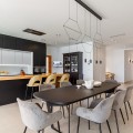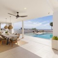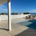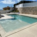 - The plot has 1.374 m2, totally fenced with walls and fences and perimeter lighting. The house has 330 m2, distributed in four bedrooms (three of them en suite), five bathrooms, open plan living room and kitchen, pantry and a large hall. All this is on one floor, except for the master bedroom (about 60 m2) which is on the second floor. This room has a large dressing room, hydroplus bathtub, a large worktop with two washbasins, where two large shower cubicles (double shower plus toilet and bidet) are located to the right and left. The house is one and a half years old, so it is brand new and freshly decorated. Most important installations: solar sanitary water, aerotermia for underfloor heating and fan coil with independent thermostats in all the rooms, double plasterboard with acoustic insulation in all the interior, alarm, fireplace, security glass, swimming pool with saline chlorinator, covered porch of 4x14 metres, independent machine room, and parking area for more than ten vehicles inside the property. The orientation is magnificent, south and the views are spectacular, just a minute walk to the beach.