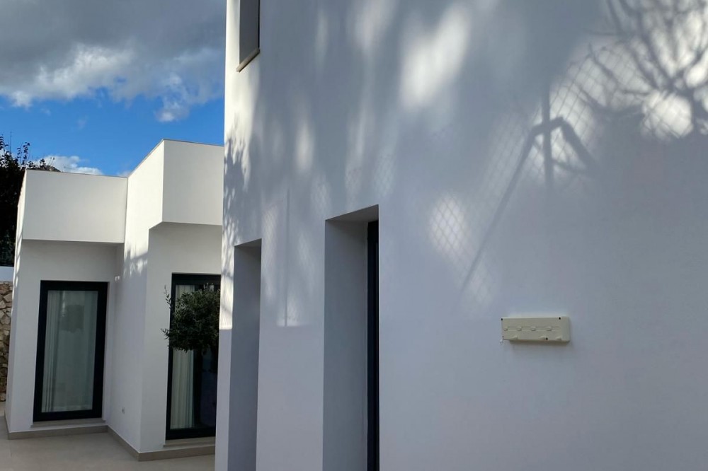 - The plot has 1.374 m2, totally fenced with walls and fences and perimeter lighting. The house has 330 m2, distributed in four bedrooms (three of them en suite), five bathrooms, open plan living room and kitchen, pantry and a large hall. All this is on one floor, except for the master bedroom (about 60 m2) which is on the second floor. This room has a large dressing room, hydroplus bathtub, a large worktop with two washbasins, where two large shower cubicles (double shower plus toilet and bidet) are located to the right and left. The house is one and a half years old, so it is brand new and freshly decorated. Most important installations: solar sanitary water, aerotermia for underfloor heating and fan coil with independent thermostats in all the rooms, double plasterboard with acoustic insulation in all the interior, alarm, fireplace, security glass, swimming pool with saline chlorinator, covered porch of 4x14 metres, independent machine room, and parking area for more than ten vehicles inside the property. The orientation is magnificent, south and the views are spectacular, just a minute walk to the beach.