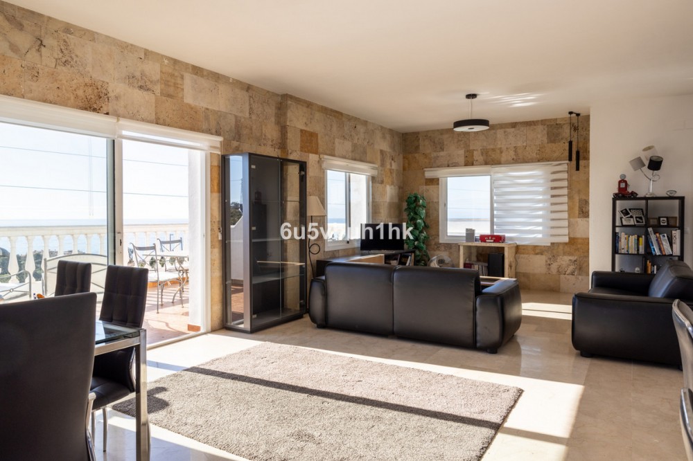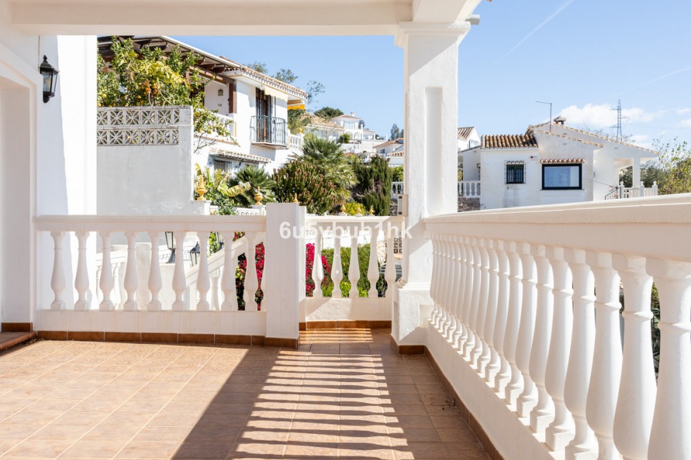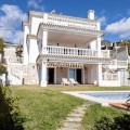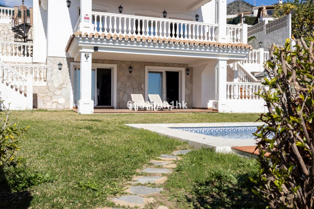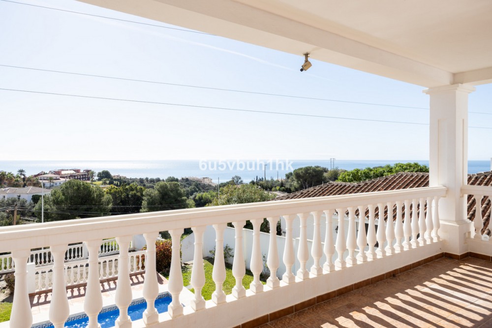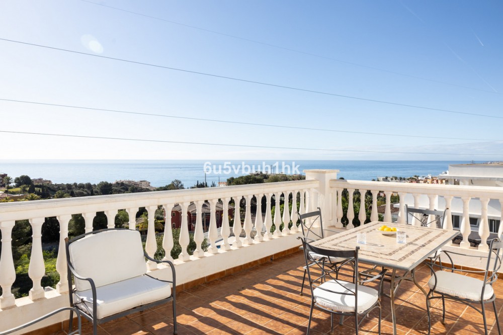 - La Capellanía is famous detached house area in Benalmádena, Costa del Sol. Here we have this nice and modern villa with great and open views of the Mediterranean Sea and the surrounding area. The location is excellent, as the sandy beaches of Benalmádena and Fuengirola are close by, and the house has good transport links to services in the surrounding area. The detached house is on its own 710 m2 plot. The villa has a size of 255 m2 and has been thoroughly renovated in 2020. Upstairs there is a spacious and bright living room and open kitchen, a spacious terrace and a guest toilet. The entrance is from a quiet street on the upper floor and there is a private garage in the courtyard. The second floor has three bedrooms and two bathrooms, one of which is connected to the master bedroom. All bedrooms have access to a large terrace. Downstairs there is another 54m2 room and a kitchen, which can be used to make a separate apartamento. On the same level is the garden and swimming pool area, which also has a view of the Mediterranean Sea. All rooms have air conditioners hot/cold.