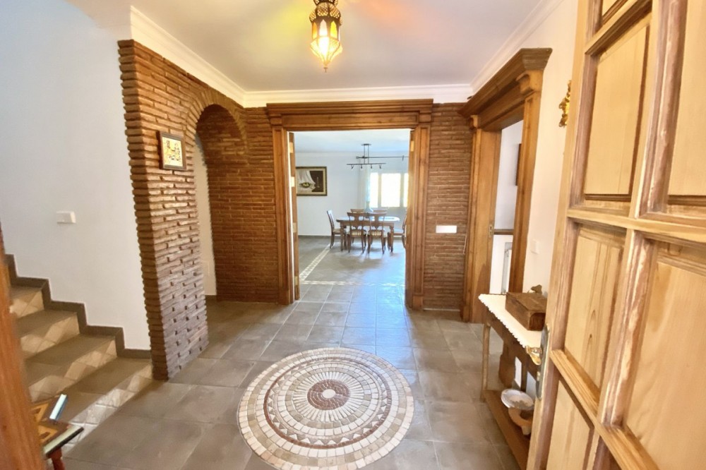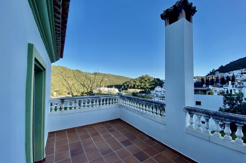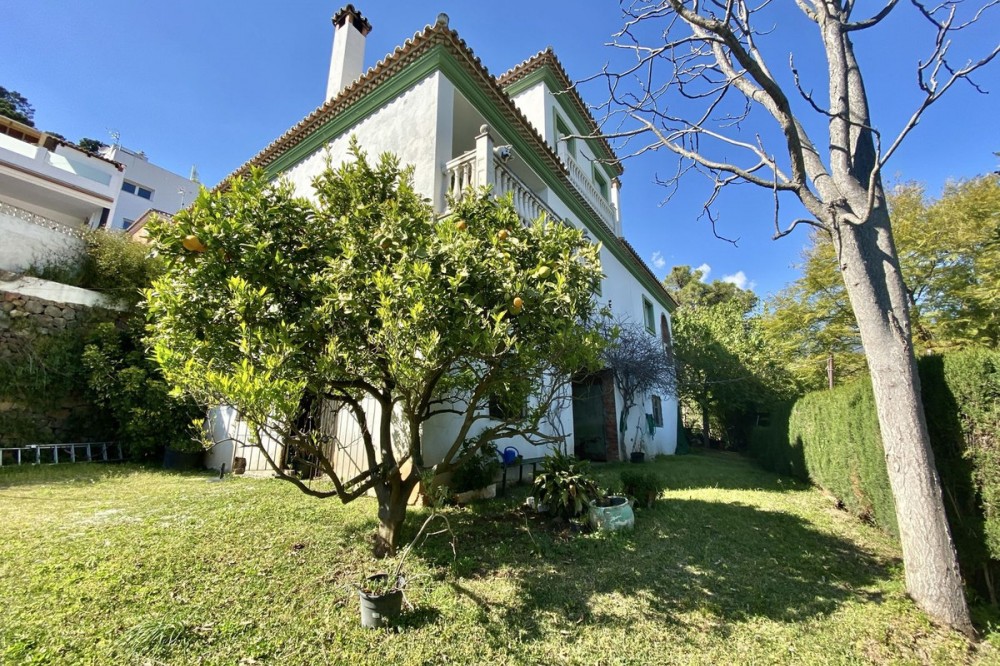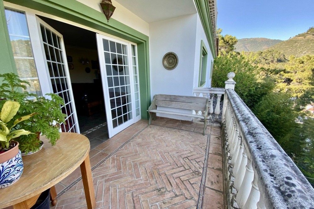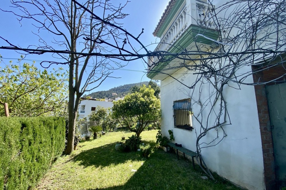 - This wonderful villa situated in the urban centre of Benahavís represents the best combination of peace, nature and facilities. Enjoy breathtaking mountain and town views, but without sacrificing your privacy! All the amenities available in the area such as schools, shops, the famous gastronomy of Behahavis village are just a short walk away, as well as the proximity to the best golf courses, making this the ideal place to enjoy a relaxed life. Built on a plot of 635 m², the villa has 465 m² divided into 4 spacious bedrooms, 2 bathrooms, large habitable basement and garage. On the main floor we find the spacious living-dining room with large windows that bring brightness to the room and its access to the main terrace from where you can enjoy breathtaking panoramic views of the mountains and its surroundings. It has a stone fireplace and its rustic aspect provides an intimate and cosy touch. To the right of the hallway is the fully equipped kitchen, with peninsula and a large pantry. On this same floor, to the left of the hallway, there are two very spacious bedrooms and a complete bathroom. Both bedrooms have fitted wardrobes and one of them has a terrace with magnificent mountain views. The upper floor, accessed via the entrance staircase, contains the master bedroom with travertine marble bathroom, dressing room and large terrace with the best views of the house. A laundry room and a very spacious fourth bedroom with a sloping ceiling and its own terrace complete this spacious upper level. The ground floor, which is accessed via another staircase in front of the entrance of the house, leads to the garage, storage room and a total of 200 sqm of unfinished habitable basement with direct access to the private garden with fruit trees. This place is a nice blank canvas to transform into an individual flat or a multipurpose room, with large windows and beautiful views. It is possible to build a swimming pool, given the space that this wonderful garden offers. The villa can be divided into independent flats, and it is also possible to build another house on vacant land, so that you can not only enjoy it as a family, but also as an investment. Made with the best building materials, double insulated walls with air chambers, double glazing and heating in all rooms of the house. No community fees. Only 15 minutes drive to Puerto Banus, shops and commercial centres, this is the perfect place for those looking for privacy and tranquillity with a rustic touch. Don't miss the opportunity to visit this magnificent property!
