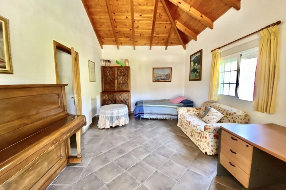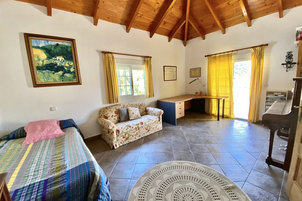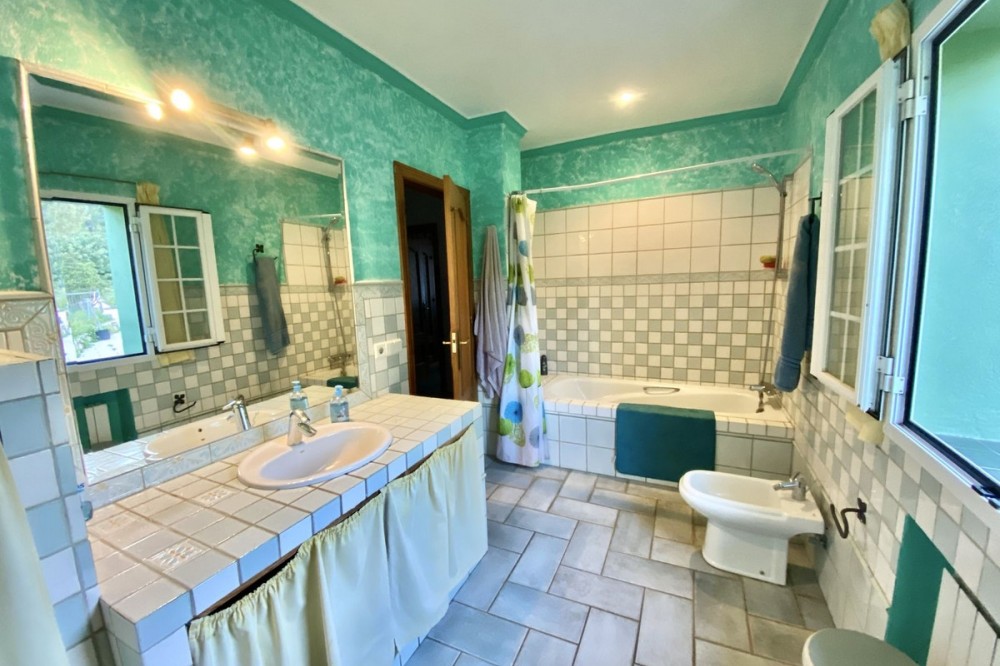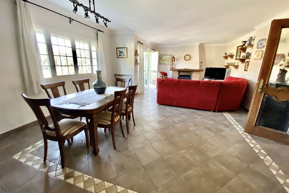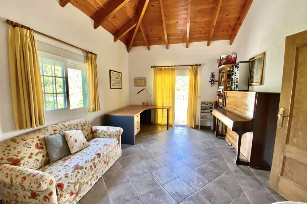 - This wonderful villa situated in the urban centre of Benahavís represents the best combination of peace, nature and facilities. Enjoy breathtaking mountain and town views, but without sacrificing your privacy! All the amenities available in the area such as schools, shops, the famous gastronomy of Behahavis village are just a short walk away, as well as the proximity to the best golf courses, making this the ideal place to enjoy a relaxed life. Built on a plot of 635 m², the villa has 465 m² divided into 4 spacious bedrooms, 2 bathrooms, large habitable basement and garage. On the main floor we find the spacious living-dining room with large windows that bring brightness to the room and its access to the main terrace from where you can enjoy breathtaking panoramic views of the mountains and its surroundings. It has a stone fireplace and its rustic aspect provides an intimate and cosy touch. To the right of the hallway is the fully equipped kitchen, with peninsula and a large pantry. On this same floor, to the left of the hallway, there are two very spacious bedrooms and a complete bathroom. Both bedrooms have fitted wardrobes and one of them has a terrace with magnificent mountain views. The upper floor, accessed via the entrance staircase, contains the master bedroom with travertine marble bathroom, dressing room and large terrace with the best views of the house. A laundry room and a very spacious fourth bedroom with a sloping ceiling and its own terrace complete this spacious upper level. The ground floor, which is accessed via another staircase in front of the entrance of the house, leads to the garage, storage room and a total of 200 sqm of unfinished habitable basement with direct access to the private garden with fruit trees. This place is a nice blank canvas to transform into an individual flat or a multipurpose room, with large windows and beautiful views. It is possible to build a swimming pool, given the space that this wonderful garden offers. The villa can be divided into independent flats, and it is also possible to build another house on vacant land, so that you can not only enjoy it as a family, but also as an investment. Made with the best building materials, double insulated walls with air chambers, double glazing and heating in all rooms of the house. No community fees. Only 15 minutes drive to Puerto Banus, shops and commercial centres, this is the perfect place for those looking for privacy and tranquillity with a rustic touch. Don't miss the opportunity to visit this magnificent property!