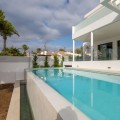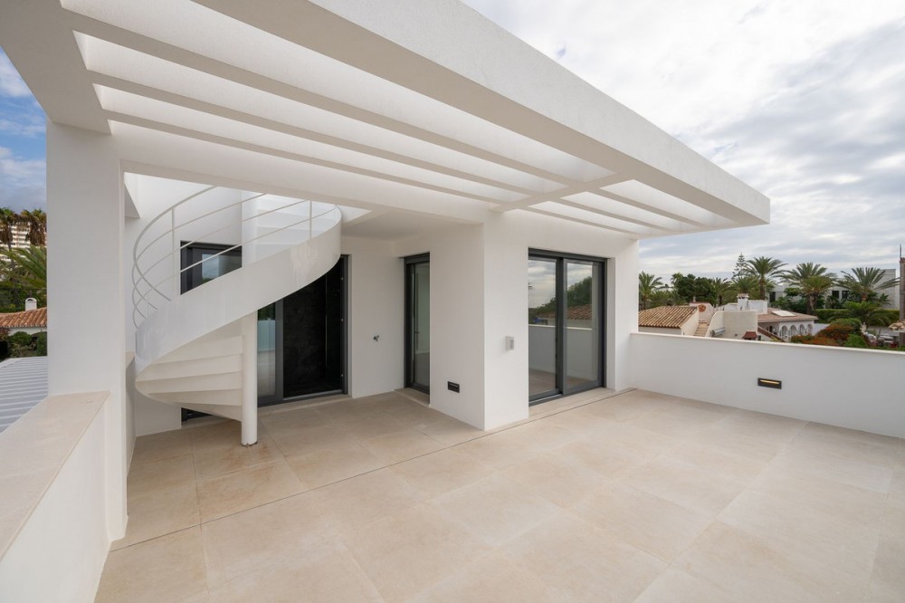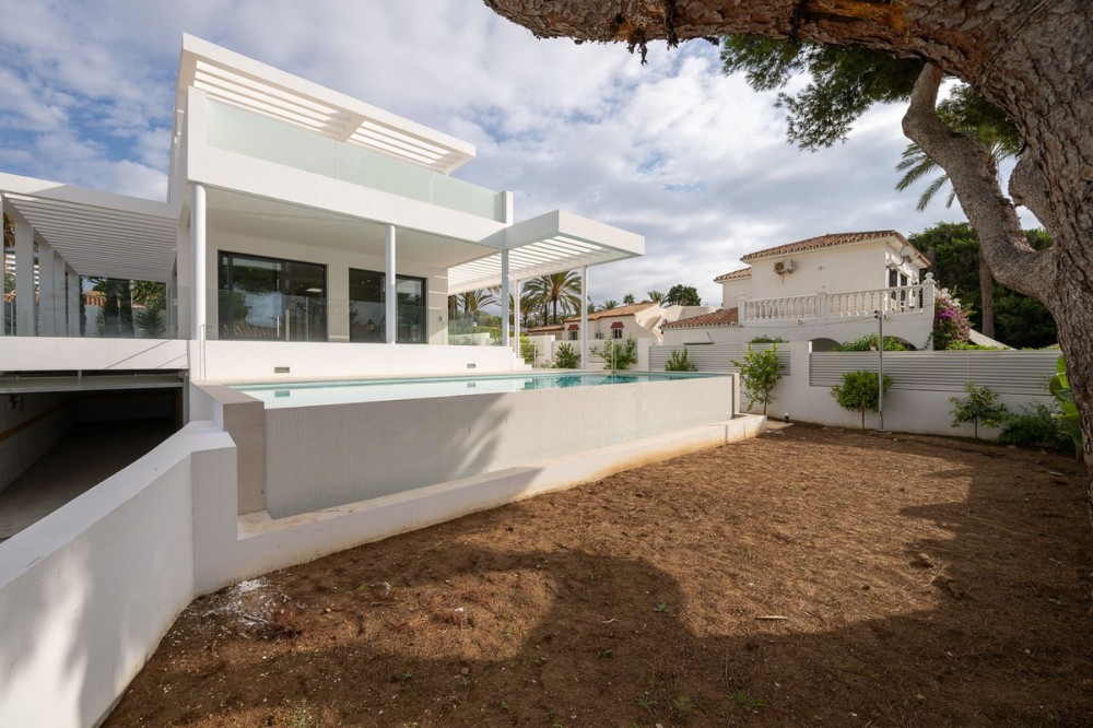 - Prime Location and Contemporary Design Situated just 50 meters from the pristine beaches of Marbesa, in the exclusive Marbella area, this contemporary villa offers a refined layout and superb attention to detail. The lower level, covering 223 square meters, includes a three-car garage, ample storage, and flexible spaces adaptable for a bedroom with an ensuite, a gym or entertainment room, and a cinema. This level connects seamlessly to the main floors via an elegant staircase. The ground floor, spanning 129 square meters, welcomes you with a spacious porch, an inviting foyer, a fully-equipped kitchen, an expansive living area, a guest bathroom, and a guest bedroom with an ensuite. Access to the upper level is also provided here. On the first floor, covering 112 square meters, you’ll find a luxurious master suite with an ensuite bathroom, accompanied by two additional bedrooms, each with its own ensuite. This level also features a charming 34-square-meter terrace, perfect for relaxing. Outside, a beautifully landscaped garden surrounds a 46-square-meter pool, offering an ideal space for outdoor living. Constructed with the highest standards and quality materials, this villa represents a unique opportunity for those seeking a spacious, modern residence mere steps from the beach in one of Marbella’s most desirable locations. Completion Date: October 2024