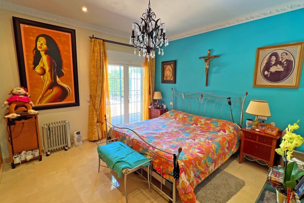 - Looking for a new place to call home? This huge villa located in the lower area of La Reserva de Marbella is the perfect choice. Superbly well located, in a quiet street and with good connection to the A7, so we are well connected to both Marbella and Malaga. The villa consists of 2 levels, connected by a lift, to facilitate access for people with reduced mobility. - On the upper floor: (actually, the ground floor) we have a huge sunny garden with swimming pool, with a lovely covered porch to enjoy the best meals with the family. There is also access to some terraces and to the exterior lift. The kitchen is fully equipped, very spacious, with plenty of space and a laundry room. With an area adapted as a small dining room. A very spacious and long living room, in which the area is divided as living room and dining room. There is also the master bedroom, en-suite, with a large wardrobe for storing clothes. The bathroom has a hydromassage bathtub and window to the outside. The second bedroom is very spacious, with a shared bathroom, equipped with a shower and window to the outside. This floor can be accessed by the main stairs located at the entrance of the house. - On the lower floor, of the same dimensions as the main floor, we find 2 large en-suite bedrooms, a toilet, office and games room. Furthermore, we have access to the covered garage and a storage/storage room and even a cinema area. On the outside of the house we have another small covered storage room, cupboards for storage, access to the lift and access to a very spacious and equipped wine cellar, perfect for storing our best wines and get together with our closest friends to enjoy this real treat. The house is fully functional and ready to move into. It also has the potential to be completely renovated to taste. Don't miss the opportunity to visit this property, as it is sure to fit what you are looking for.