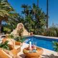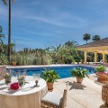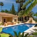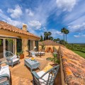 - Discover this property "Casa Serena" located in the exclusive enclave of Sotogrande, strategically located, a few meters from the prestigious golf course of Valderrama, close to the International College , to Hotel SO/Sotogrande, to the Beach Club of the Reserve , to 10minutos Del Real Club de Golf , Trocadero and the beach . With an extension of more than 8,000m2 of land, with panoramic views of the Mediterranean Sea and the golf courses of Almenara and San Roque Club. The property has access by a main avenue and another by a more private street, the latter with a path of adoquines, designed to facilitate both the road and pedestrian access, comfort would be a characteristic to stand out in the day to day, having the ease of being able to circulate through the large facade, with independent entrance and exit. After accessing a double height hall, it serves as a vertebral axis as it separates the common areas, the rest areas and the ground floor from the first. The house develops almost all on one floor which contributes to its comfort and also has three bedrooms on the upper floor, with spectacular views, which together with the other two existing ones would add a total of five. - On the ground floor we find the main living room in two rooms, one of them with fireplace, on the right, the inner dining room for fourteen diners, outdoor dining room, bar area, all connected by wide arches that make the spaces flow and at the same time remain differentiated, all with exit to the outside. - We will continue through the kitchen that has a central island, an informal dining room, which communicates with the outside dining room, designed both for daily functionality and for informal entertainment, annexed pantry area, laundry area, exterior patio and following a wide corridor, we connect with a Recreo Pavilion. **Spaces of Entertainment and Relaxation** In the Recreo Pavilion, we would highlight the large pool room, bar area and home cinema. With an independent wine cellar with temperature regulator. On the upper floor, the magnificent library, with unmatched views of the garden. ideal for social events and meetings. ** Ground floor** The two bedrooms all with en-suite bathrooms and benefit from direct access to the private gardens and porches, offering a personal oasis within the villa. **First Floor:** An elegant hallway leads to three additional bedrooms, each with its own en-suite bathroom. Two of these bedrooms have access to private terraces with stunning sea views and golf courses, while the central bedroom offers a living room with access to a large terrace. **Exterior:** The exterior of the Serena House is equally impressive. A pool hall with covered porch includes a lounge-gym, wardrobes, bathroom and sauna. **Jardines:** The exquisitely cared garden has a variety of palm trees, algarrobos, olive trees, jacarandas and fruit trees such as apples, chirimoyas, quinces, lemons, figs and grapefruits. Each corner of the garden is designed to offer tranquility and natural beauty. **Technology and Modern Comforts** Serena House is equipped with the latest technologies and amenities to ensure a luxurious lifestyle: - Air conditioning in three bedrooms. - Gasoil radiator heating and hot water also fed by diesel. - Gas tanks for comfort. - Domotic system in the games room and library. - Bodega with temperature and humidity regulator Zanotti. - 6000 litre diesel tank and gas tank buried for uninterrupted supply. **Additional details** - Constructed area: 1,230 m2 - Interior: 1.021 m2 - Terraces: 209 m2 - Plot: 8,050 m2 - 5 bedrooms and 8 bathrooms, all with en suite bathrooms and heating. **The Life of Your Dreams in Sotogrande** "Serena House" is not just a house, it's a life experience. Perfect for those looking for the ideal combination of luxury, comfort and exclusivity. Every detail has been designed to offer a full and sophisticated life. Do not miss the opportunity to make this jewel yours in the heart of Sotogrande. For more information or to schedule a visit, please contact us.