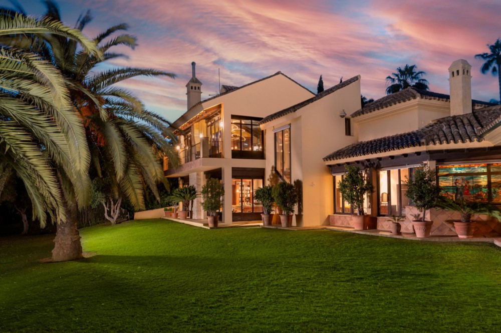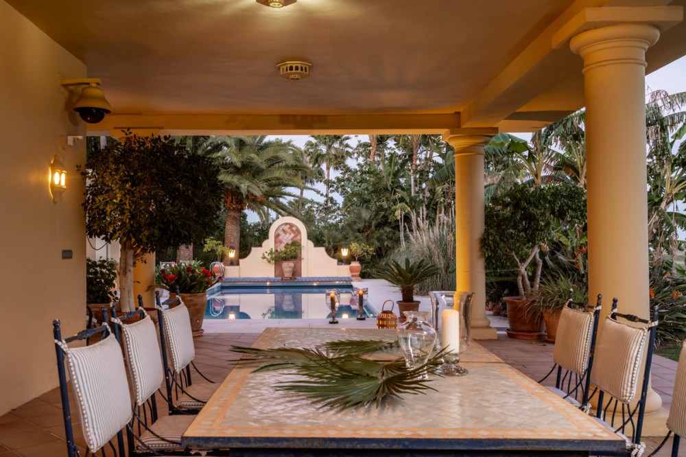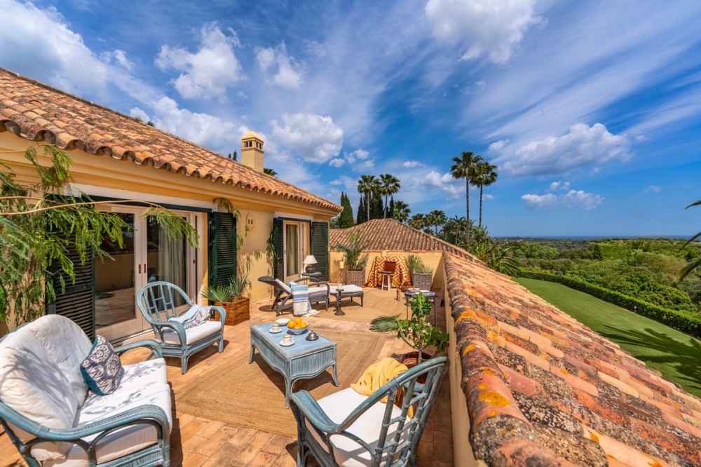 - Discover this property "Casa Serena" located in the exclusive enclave of Sotogrande, strategically located, a few meters from the prestigious golf course of Valderrama, close to the International College , to Hotel SO/Sotogrande, to the Beach Club of the Reserve , to 10minutos Del Real Club de Golf , Trocadero and the beach . With an extension of more than 8,000m2 of land, with panoramic views of the Mediterranean Sea and the golf courses of Almenara and San Roque Club. The property has access by a main avenue and another by a more private street, the latter with a path of adoquines, designed to facilitate both the road and pedestrian access, comfort would be a characteristic to stand out in the day to day, having the ease of being able to circulate through the large facade, with independent entrance and exit. After accessing a double height hall, it serves as a vertebral axis as it separates the common areas, the rest areas and the ground floor from the first. The house develops almost all on one floor which contributes to its comfort and also has three bedrooms on the upper floor, with spectacular views, which together with the other two existing ones would add a total of five. - On the ground floor we find the main living room in two rooms, one of them with fireplace, on the right, the inner dining room for fourteen diners, outdoor dining room, bar area, all connected by wide arches that make the spaces flow and at the same time remain differentiated, all with exit to the outside. - We will continue through the kitchen that has a central island, an informal dining room, which communicates with the outside dining room, designed both for daily functionality and for informal entertainment, annexed pantry area, laundry area, exterior patio and following a wide corridor, we connect with a Recreo Pavilion. **Spaces of Entertainment and Relaxation** In the Recreo Pavilion, we would highlight the large pool room, bar area and home cinema. With an independent wine cellar with temperature regulator. On the upper floor, the magnificent library, with unmatched views of the garden. ideal for social events and meetings. ** Ground floor** The two bedrooms all with en-suite bathrooms and benefit from direct access to the private gardens and porches, offering a personal oasis within the villa. **First Floor:** An elegant hallway leads to three additional bedrooms, each with its own en-suite bathroom. Two of these bedrooms have access to private terraces with stunning sea views and golf courses, while the central bedroom offers a living room with access to a large terrace. **Exterior:** The exterior of the Serena House is equally impressive. A pool hall with covered porch includes a lounge-gym, wardrobes, bathroom and sauna. **Jardines:** The exquisitely cared garden has a variety of palm trees, algarrobos, olive trees, jacarandas and fruit trees such as apples, chirimoyas, quinces, lemons, figs and grapefruits. Each corner of the garden is designed to offer tranquility and natural beauty. **Technology and Modern Comforts** Serena House is equipped with the latest technologies and amenities to ensure a luxurious lifestyle: - Air conditioning in three bedrooms. - Gasoil radiator heating and hot water also fed by diesel. - Gas tanks for comfort. - Domotic system in the games room and library. - Bodega with temperature and humidity regulator Zanotti. - 6000 litre diesel tank and gas tank buried for uninterrupted supply. **Additional details** - Constructed area: 1,230 m2 - Interior: 1.021 m2 - Terraces: 209 m2 - Plot: 8,050 m2 - 5 bedrooms and 8 bathrooms, all with en suite bathrooms and heating. **The Life of Your Dreams in Sotogrande** "Serena House" is not just a house, it's a life experience. Perfect for those looking for the ideal combination of luxury, comfort and exclusivity. Every detail has been designed to offer a full and sophisticated life. Do not miss the opportunity to make this jewel yours in the heart of Sotogrande. For more information or to schedule a visit, please contact us.