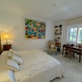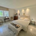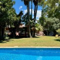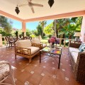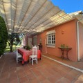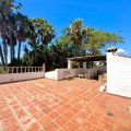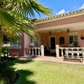 • Beautiful family villa with a lot of charm located on the second line of the beach the well established urbanisation Linda Vista Baja, San Pedro de Alcántara. Built on a single floor, on a beautiful plot it has a very nice mature garden, with tropical plants and fruit trees. Due to its magnificent position, it is a very interesting renovation proyect. Just a few minutes walk to all kinds of services such as restaurants, international schools and shops. South facing, with beautiful views of the sea and to the mountains from the roof terrace. It consists of: cozy covered porch very privated with views to the garden. Spacious living room with dining area and fireplace, large fully equipped kitchen with breakfast area and laundry room. In total there are 6 double bedrooms with built-in cupboards + 1 maid's bedroom and 3 bathrooms. The master bedroom is very spacious with its en-suite bathroom and office. Maid's room with shower room. On the East side of the house, there is a very cozy patio, ideal as a summer dining room for the whole family covered with awnings. Private garage and outdoor parking area for several cars. Air-conditioning. Solar panels.