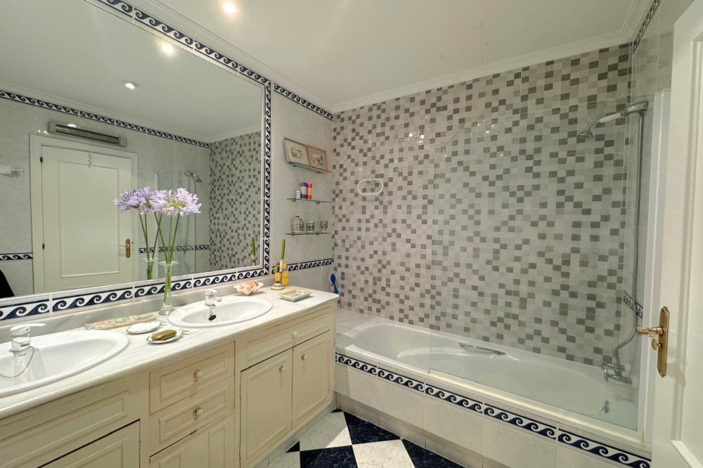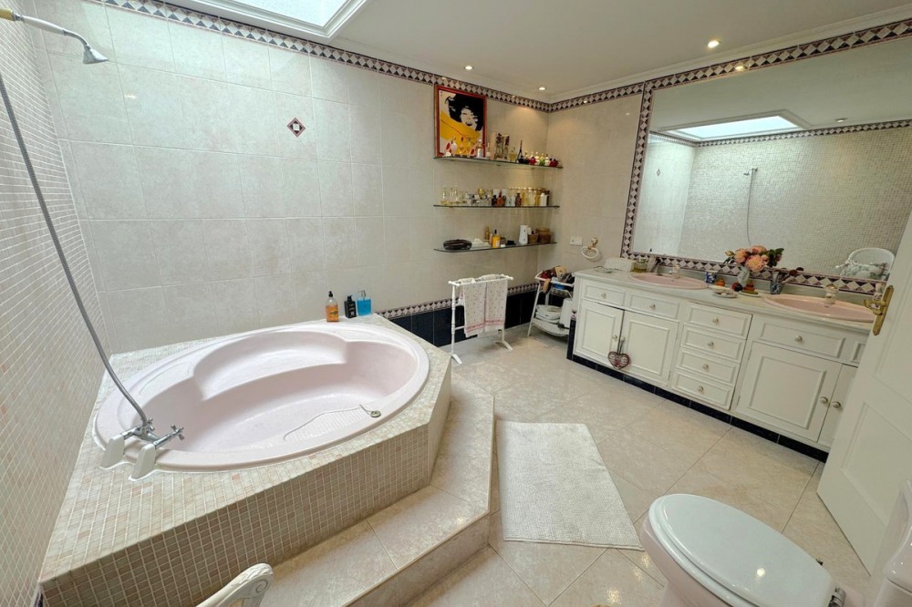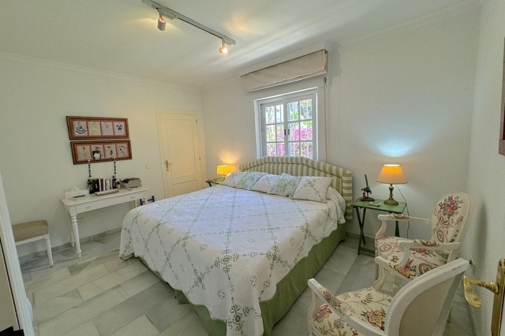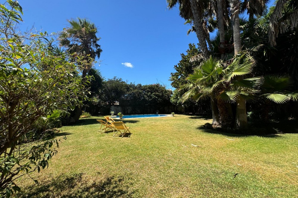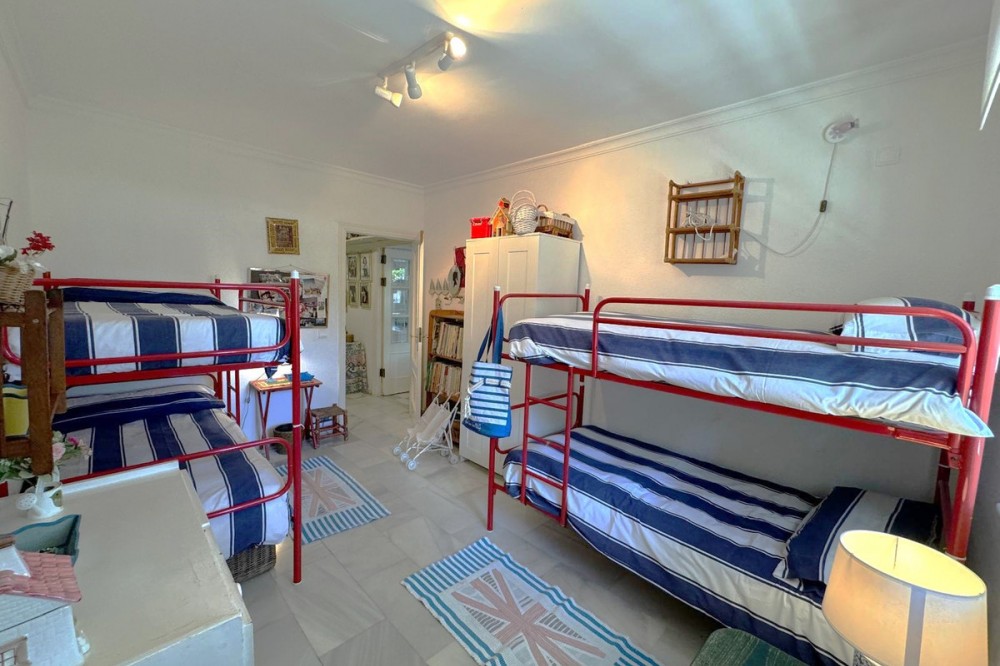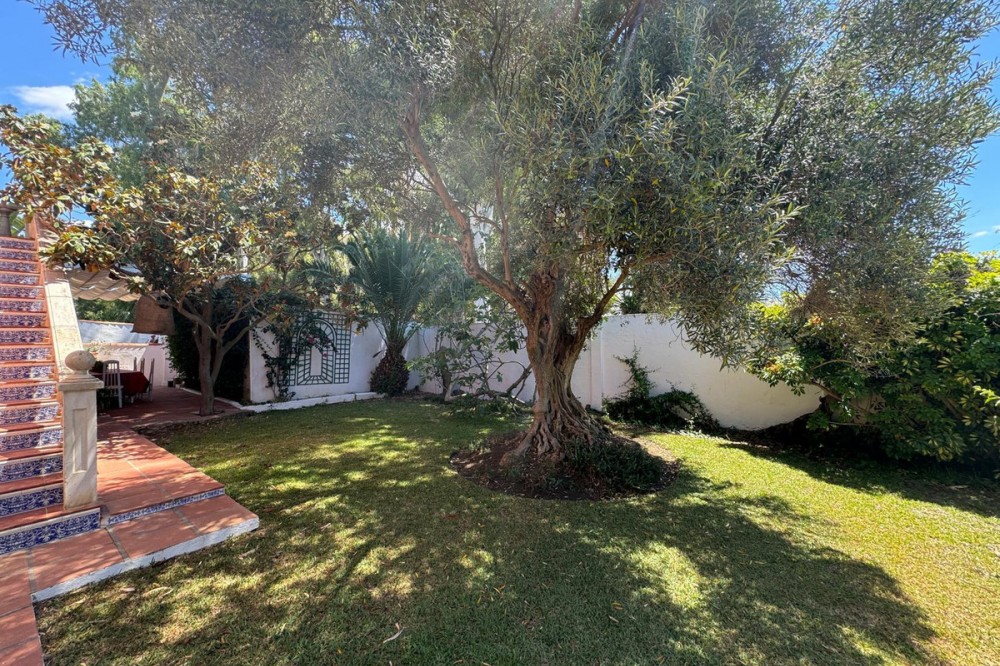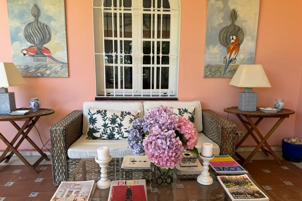 • Beautiful family villa with a lot of charm located on the second line of the beach the well established urbanisation Linda Vista Baja, San Pedro de Alcántara. Built on a single floor, on a beautiful plot it has a very nice mature garden, with tropical plants and fruit trees. Due to its magnificent position, it is a very interesting renovation proyect. Just a few minutes walk to all kinds of services such as restaurants, international schools and shops. South facing, with beautiful views of the sea and to the mountains from the roof terrace. It consists of: cozy covered porch very privated with views to the garden. Spacious living room with dining area and fireplace, large fully equipped kitchen with breakfast area and laundry room. In total there are 6 double bedrooms with built-in cupboards + 1 maid's bedroom and 3 bathrooms. The master bedroom is very spacious with its en-suite bathroom and office. Maid's room with shower room. On the East side of the house, there is a very cozy patio, ideal as a summer dining room for the whole family covered with awnings. Private garage and outdoor parking area for several cars. Air-conditioning. Solar panels.