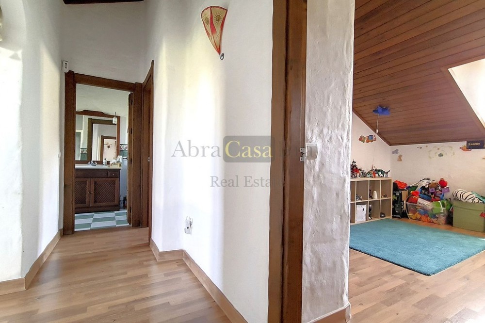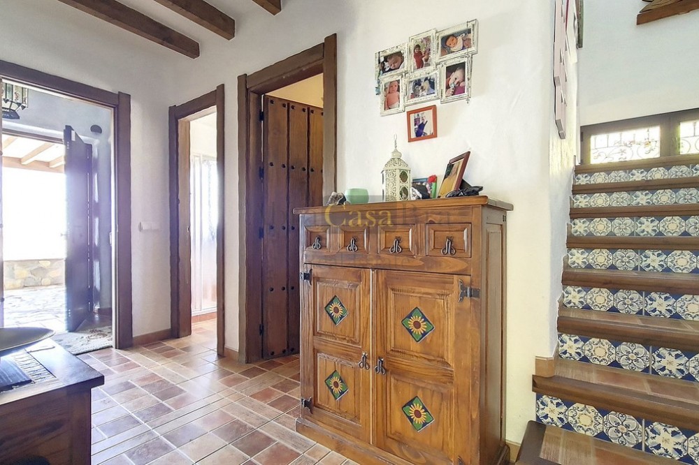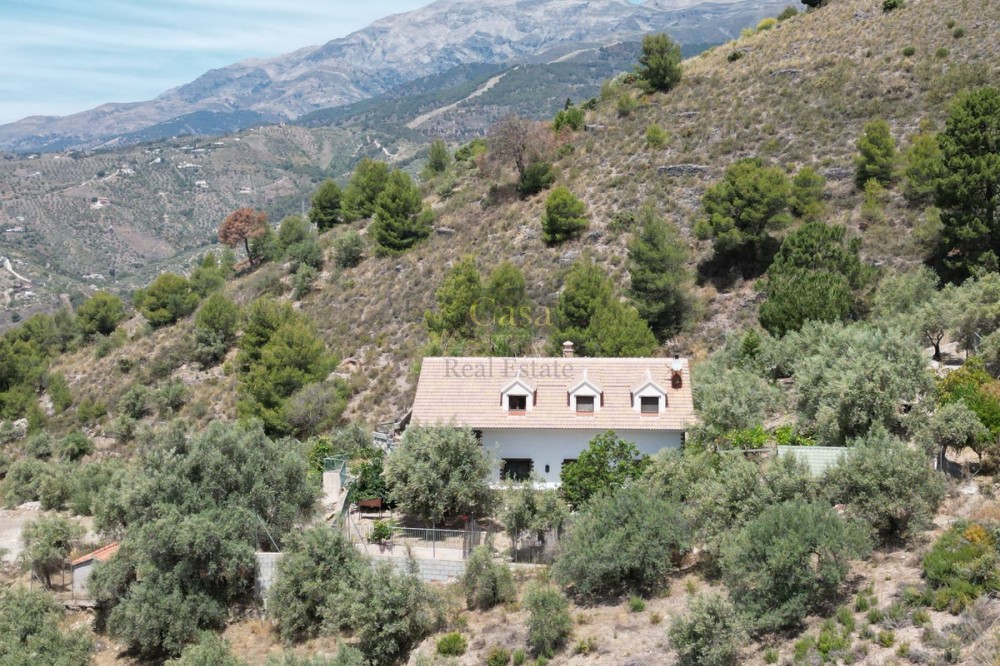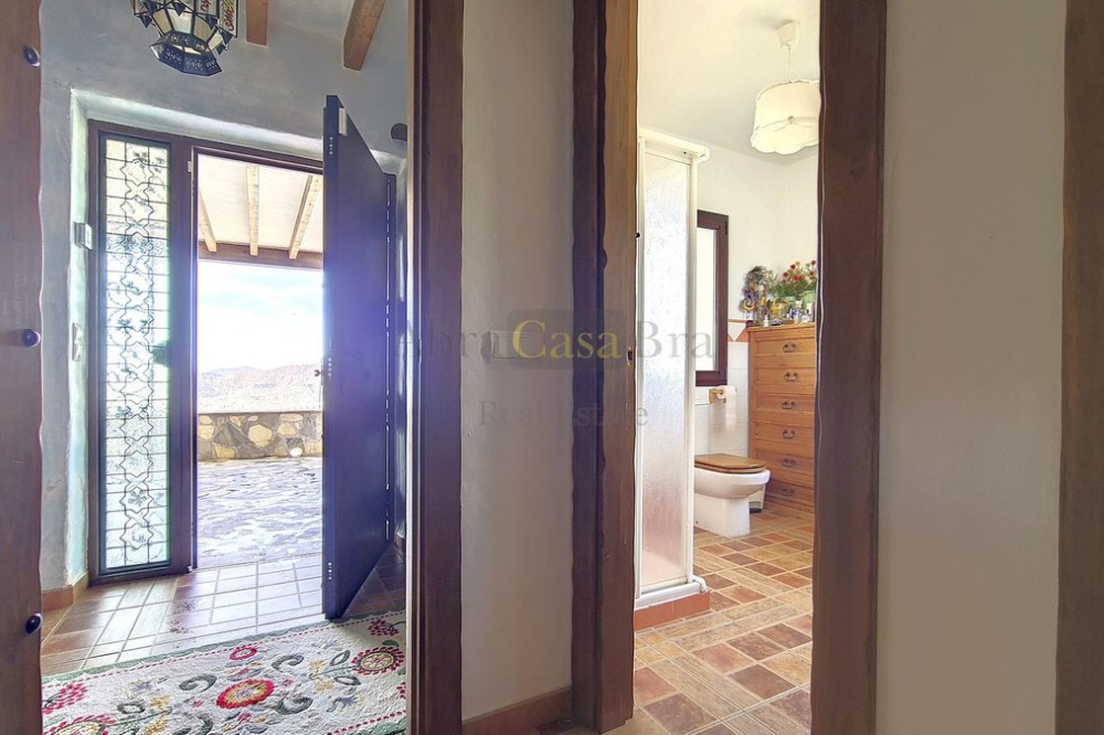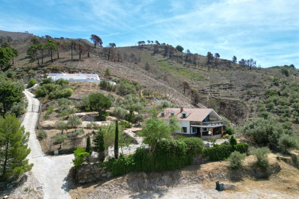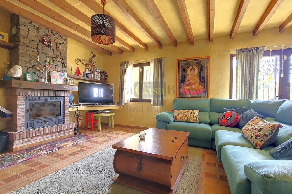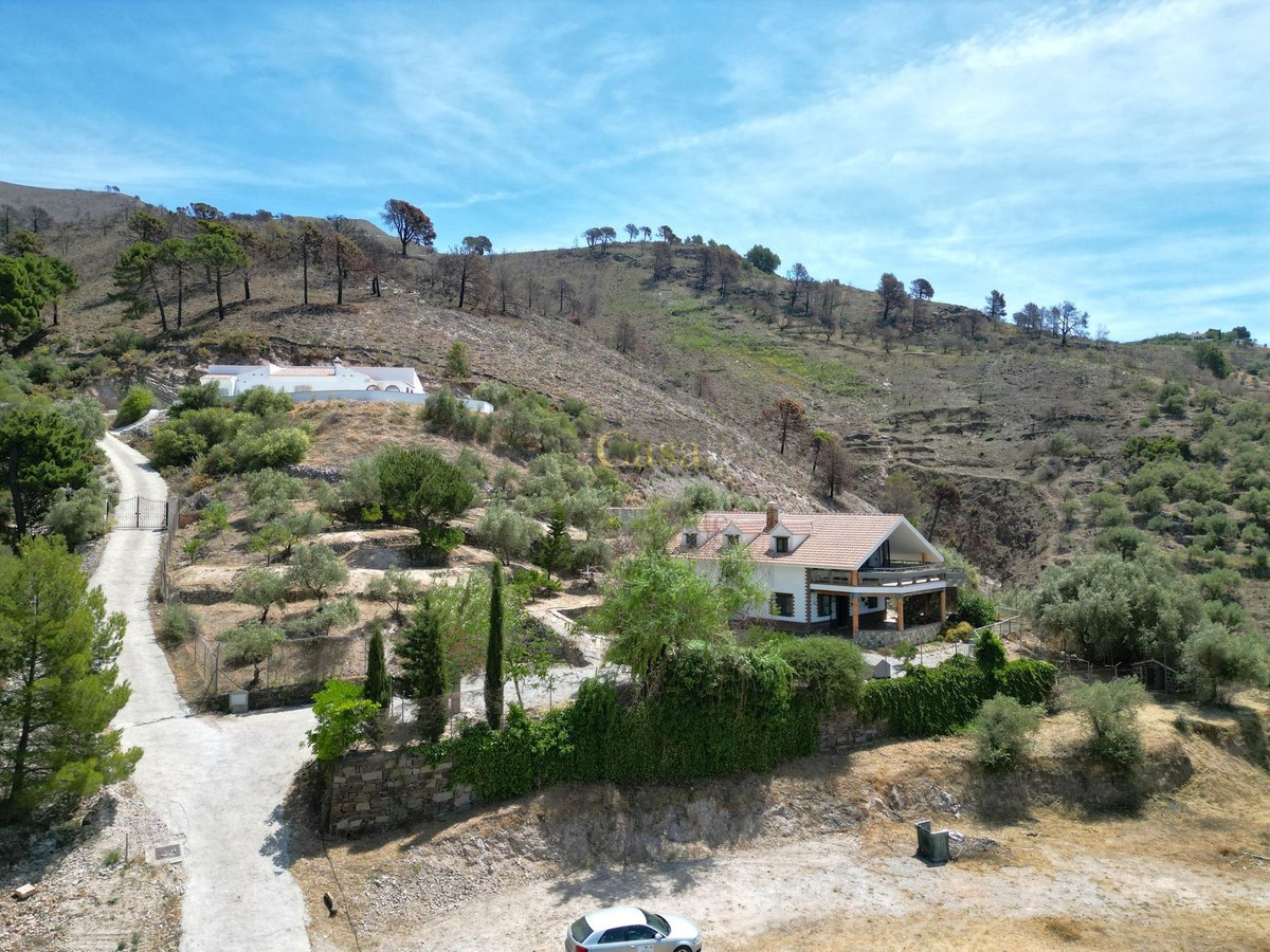 - This spacious and stylish villa is located in a beautiful and quiet location with good accessibility. The villa belongs to the municipality of Canillas de Albaida in the characteristic region of La Axarquía (Málaga province / Andalusia). In 5 minutes by car you arrive in cosy Cómpeta with its many terraces, restaurants and shops or in the authentic picturesque village of Canillas de Albaida. Both villages offer beautiful walks in the mountains of the Sierra de Tejeda y Almijara Natural Park. The villa: Upon entering, one immediately notices the warm and rural atmosphere. The typical Andalusian wooden doors are specially made to measure. The stylish tiled floor is of very good quality and the nice wooden beamed ceilings complete the picture. On the ground floor is a bathroom with shower and toilet. Next to it is a large storage room for the washing machine, among other things. Further down, at the end of the hallway, is a spacious bedroom currently used as a children's playroom. To the right of the hall, you enter the living/dining area with open kitchen, which is fully equipped. There is a large fireplace in this room. The glass patio doors in the middle of the room overlook the terrace at the side of the house. A beautifully tiled staircase leads to the first floor. To the left is the very spacious and pretty tiled bathroom with toilet, bath and shower. The hallway provides access to 2 cosy bedrooms with dormer windows. At the end of the hallway is a very large bedroom with access to a spacious and pretty tiled terrace with fantastic views. An ideal place to quietly enjoy the sunsets. The rooms have fitted wardrobes so there is plenty of storage space. Grounds: The area around the villa is fenced, which is ideal if you have dogs and/or children. Above the villa is a wooden cottage of 29m2 which can be converted into an extra guest house or studio. The views over the mountains and the sea are fantastic. Most of the 8,750m2 plot with several Mediterranean trees is flat, offering good accessibility and many possibilities. There is a 20,000-litre water reservoir and its own water source. The preparations for the pool have been made and can be finished entirely to your own taste. The land needs some love and attention, but offers every possibility, together with the villa, to make it a dream location. Our construction team is at your service. This villa must be seen with your own eyes to appreciate its true value. We will be happy to show you this unique property.
