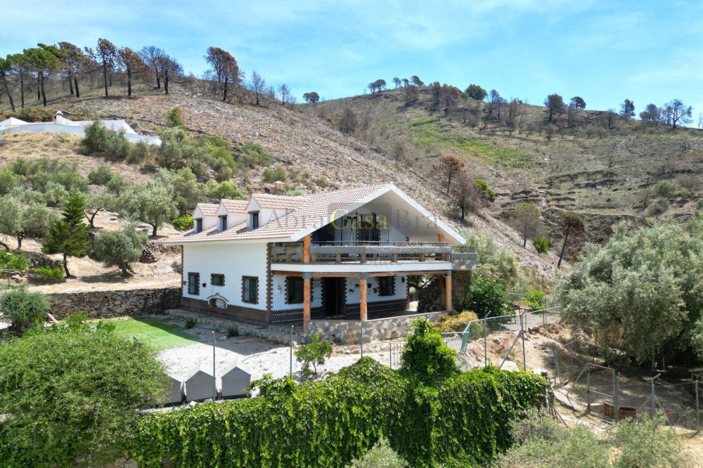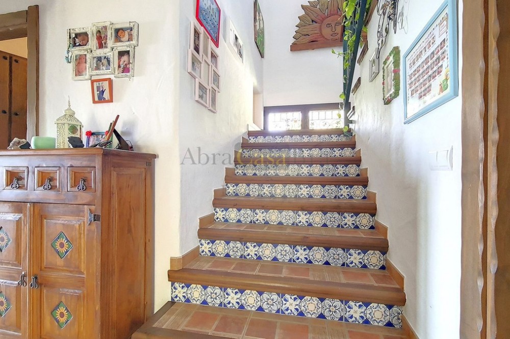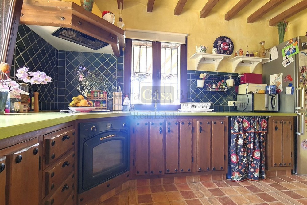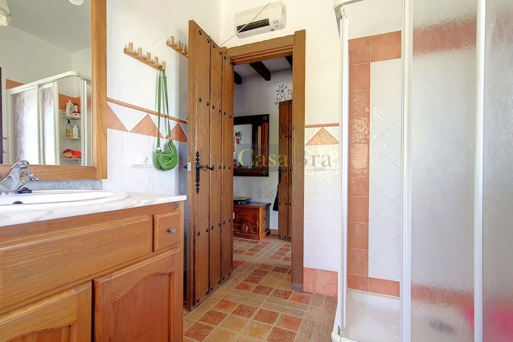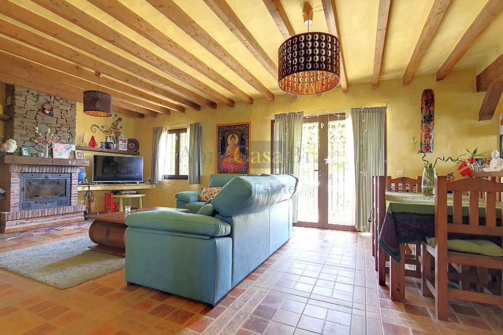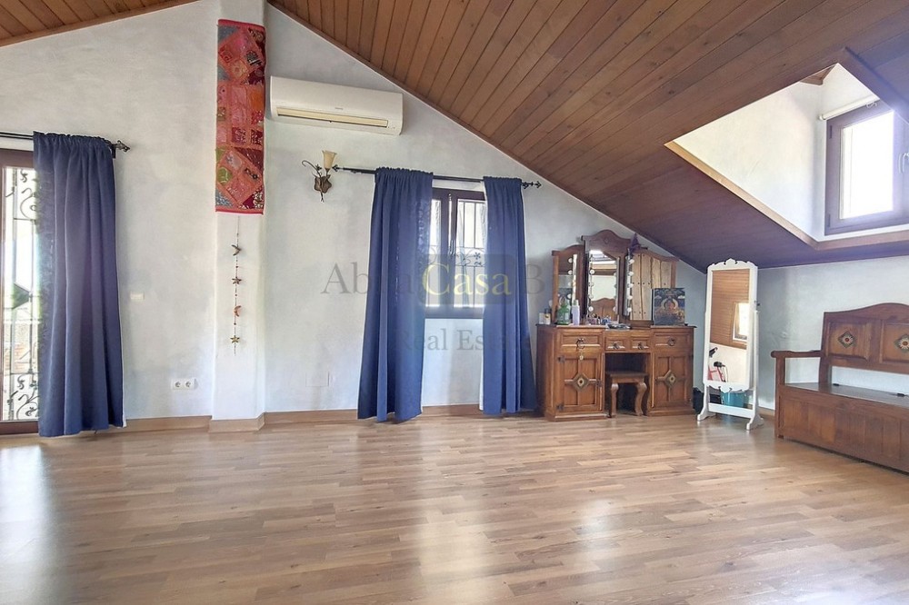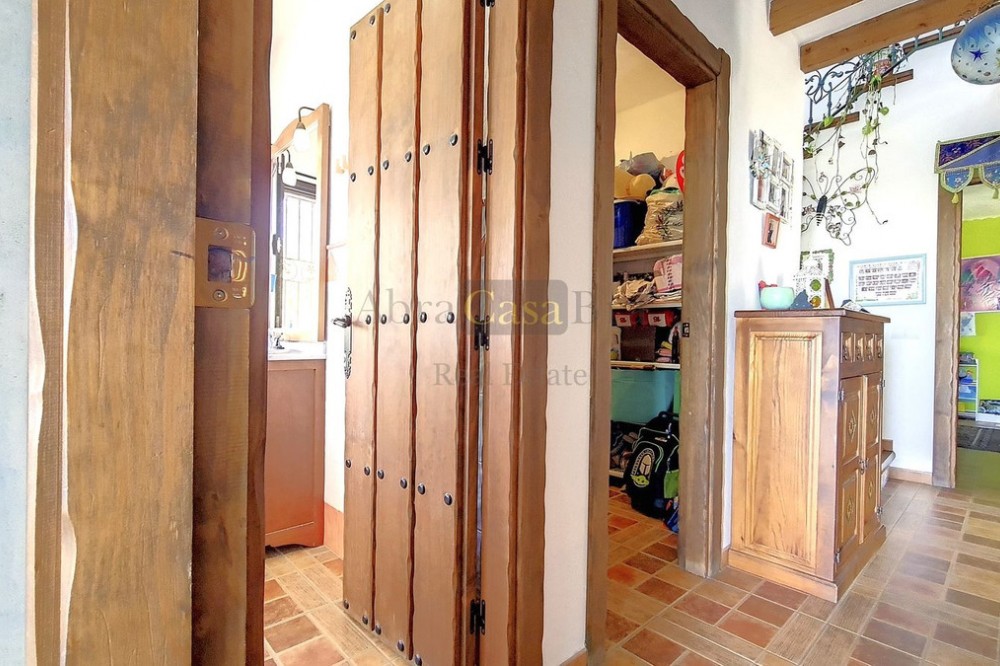 - This spacious and stylish villa is located in a beautiful and quiet location with good accessibility. The villa belongs to the municipality of Canillas de Albaida in the characteristic region of La Axarquía (Málaga province / Andalusia). In 5 minutes by car you arrive in cosy Cómpeta with its many terraces, restaurants and shops or in the authentic picturesque village of Canillas de Albaida. Both villages offer beautiful walks in the mountains of the Sierra de Tejeda y Almijara Natural Park. The villa: Upon entering, one immediately notices the warm and rural atmosphere. The typical Andalusian wooden doors are specially made to measure. The stylish tiled floor is of very good quality and the nice wooden beamed ceilings complete the picture. On the ground floor is a bathroom with shower and toilet. Next to it is a large storage room for the washing machine, among other things. Further down, at the end of the hallway, is a spacious bedroom currently used as a children's playroom. To the right of the hall, you enter the living/dining area with open kitchen, which is fully equipped. There is a large fireplace in this room. The glass patio doors in the middle of the room overlook the terrace at the side of the house. A beautifully tiled staircase leads to the first floor. To the left is the very spacious and pretty tiled bathroom with toilet, bath and shower. The hallway provides access to 2 cosy bedrooms with dormer windows. At the end of the hallway is a very large bedroom with access to a spacious and pretty tiled terrace with fantastic views. An ideal place to quietly enjoy the sunsets. The rooms have fitted wardrobes so there is plenty of storage space. Grounds: The area around the villa is fenced, which is ideal if you have dogs and/or children. Above the villa is a wooden cottage of 29m2 which can be converted into an extra guest house or studio. The views over the mountains and the sea are fantastic. Most of the 8,750m2 plot with several Mediterranean trees is flat, offering good accessibility and many possibilities. There is a 20,000-litre water reservoir and its own water source. The preparations for the pool have been made and can be finished entirely to your own taste. The land needs some love and attention, but offers every possibility, together with the villa, to make it a dream location. Our construction team is at your service. This villa must be seen with your own eyes to appreciate its true value. We will be happy to show you this unique property.
