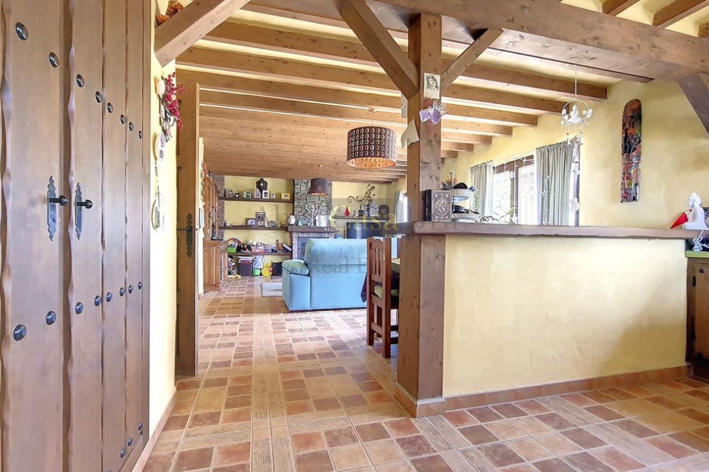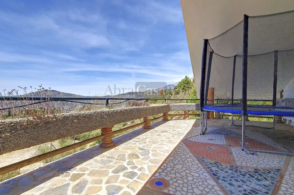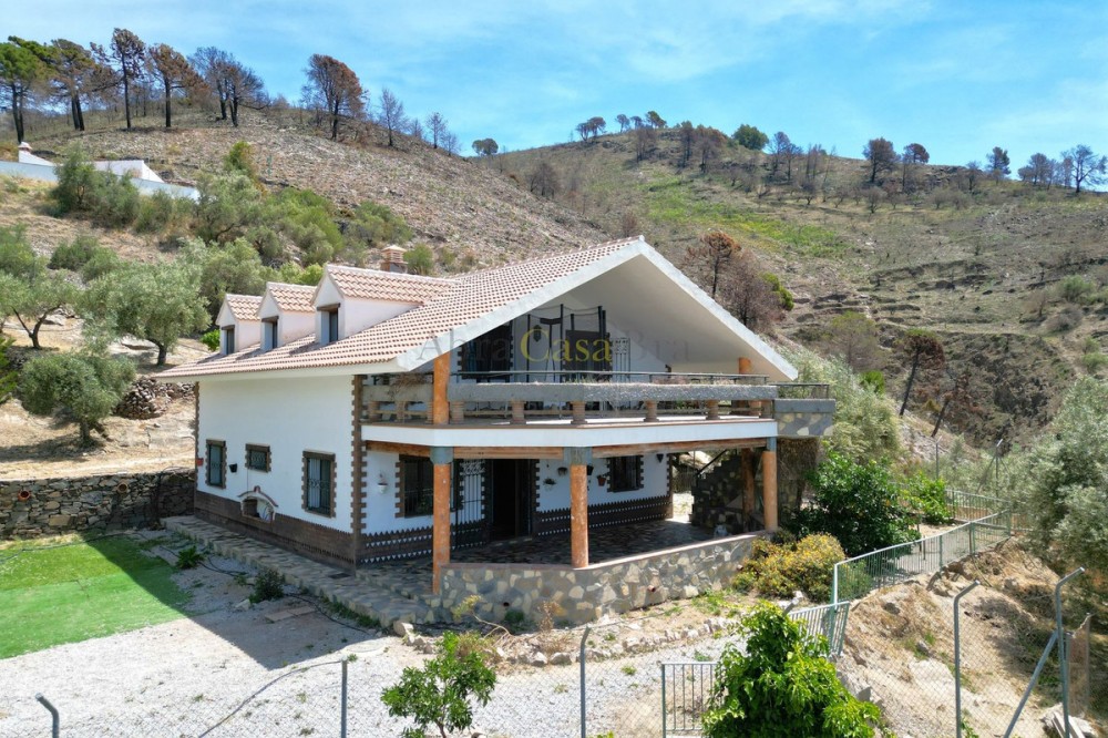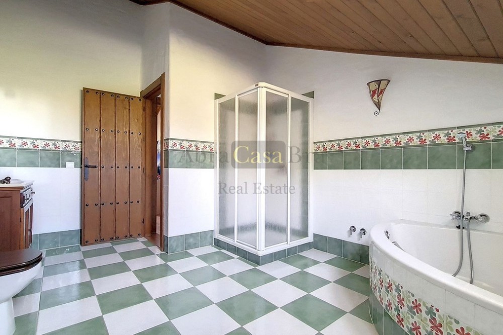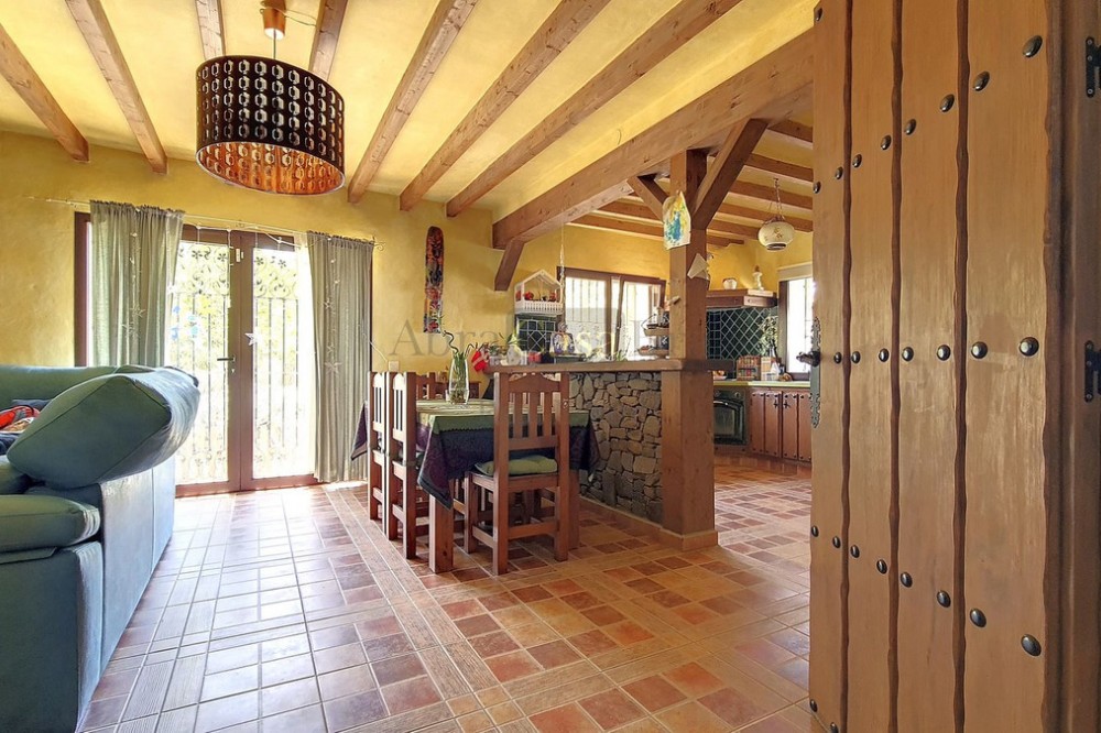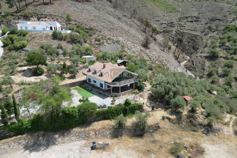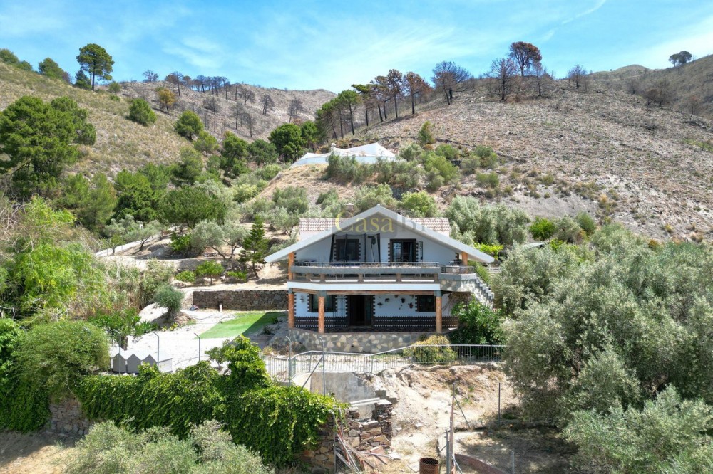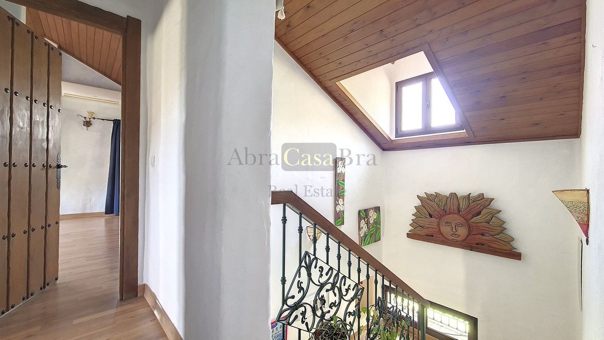 - This spacious and stylish villa is located in a beautiful and quiet location with good accessibility. The villa belongs to the municipality of Canillas de Albaida in the characteristic region of La Axarquía (Málaga province / Andalusia). In 5 minutes by car you arrive in cosy Cómpeta with its many terraces, restaurants and shops or in the authentic picturesque village of Canillas de Albaida. Both villages offer beautiful walks in the mountains of the Sierra de Tejeda y Almijara Natural Park. The villa: Upon entering, one immediately notices the warm and rural atmosphere. The typical Andalusian wooden doors are specially made to measure. The stylish tiled floor is of very good quality and the nice wooden beamed ceilings complete the picture. On the ground floor is a bathroom with shower and toilet. Next to it is a large storage room for the washing machine, among other things. Further down, at the end of the hallway, is a spacious bedroom currently used as a children's playroom. To the right of the hall, you enter the living/dining area with open kitchen, which is fully equipped. There is a large fireplace in this room. The glass patio doors in the middle of the room overlook the terrace at the side of the house. A beautifully tiled staircase leads to the first floor. To the left is the very spacious and pretty tiled bathroom with toilet, bath and shower. The hallway provides access to 2 cosy bedrooms with dormer windows. At the end of the hallway is a very large bedroom with access to a spacious and pretty tiled terrace with fantastic views. An ideal place to quietly enjoy the sunsets. The rooms have fitted wardrobes so there is plenty of storage space. Grounds: The area around the villa is fenced, which is ideal if you have dogs and/or children. Above the villa is a wooden cottage of 29m2 which can be converted into an extra guest house or studio. The views over the mountains and the sea are fantastic. Most of the 8,750m2 plot with several Mediterranean trees is flat, offering good accessibility and many possibilities. There is a 20,000-litre water reservoir and its own water source. The preparations for the pool have been made and can be finished entirely to your own taste. The land needs some love and attention, but offers every possibility, together with the villa, to make it a dream location. Our construction team is at your service. This villa must be seen with your own eyes to appreciate its true value. We will be happy to show you this unique property.