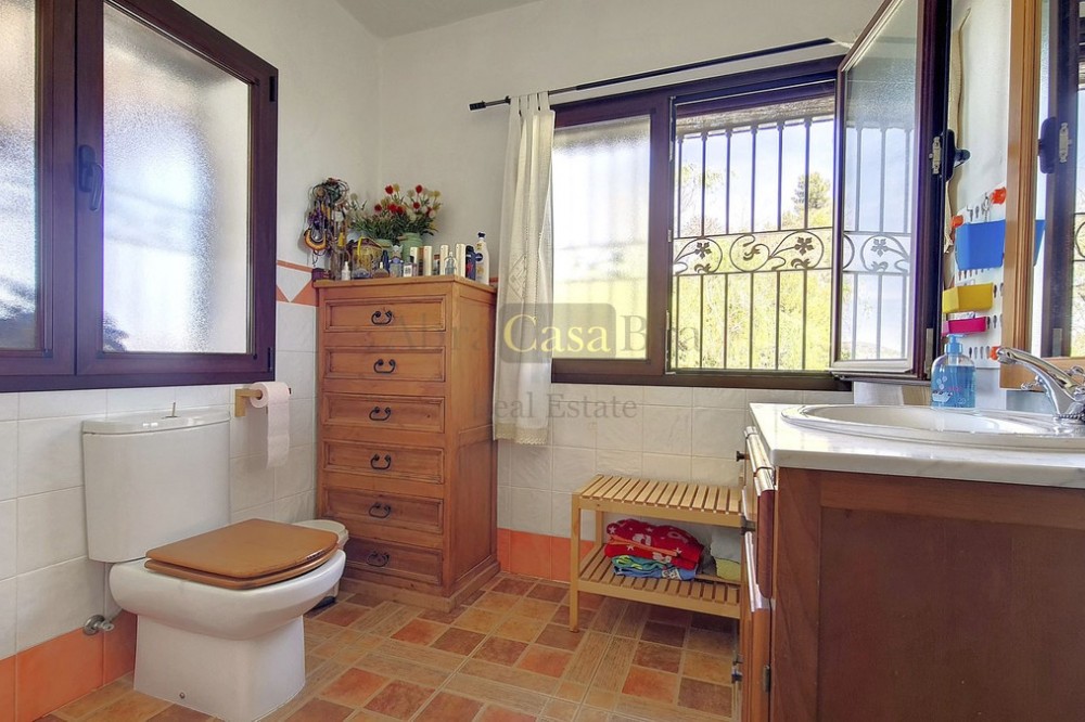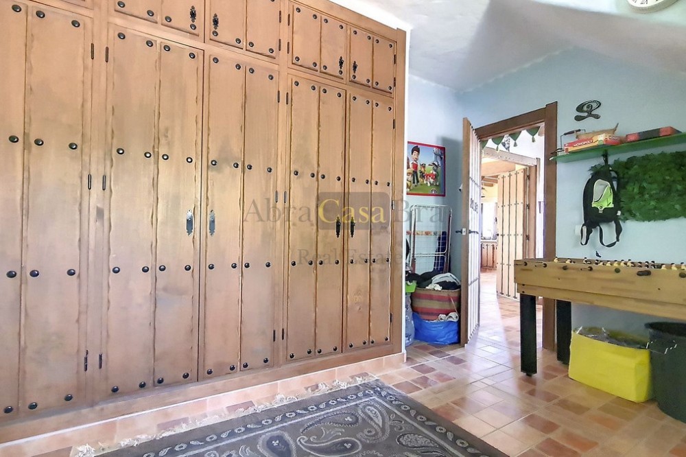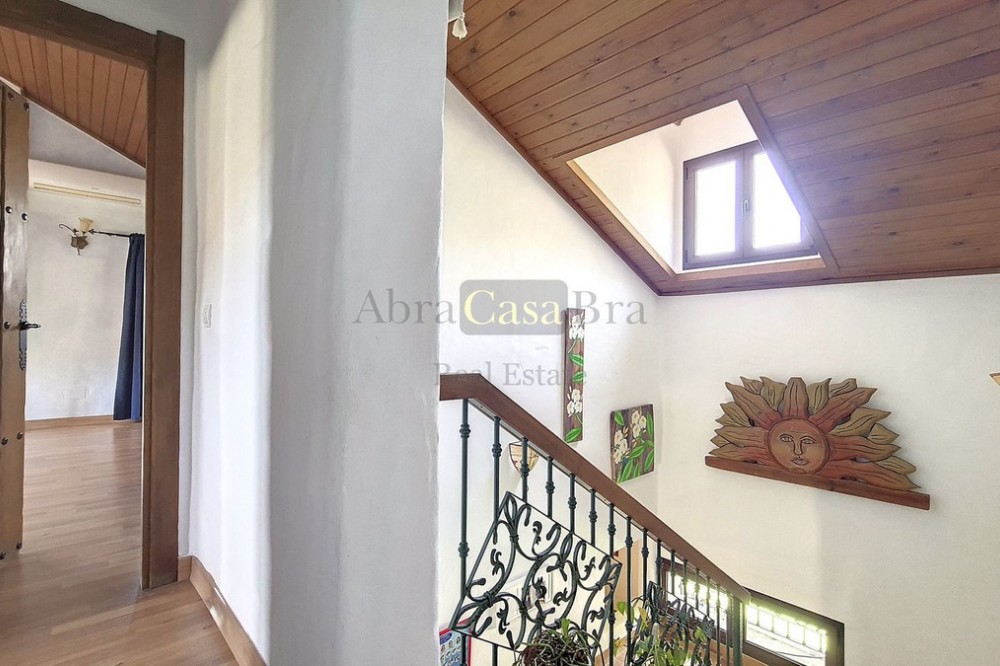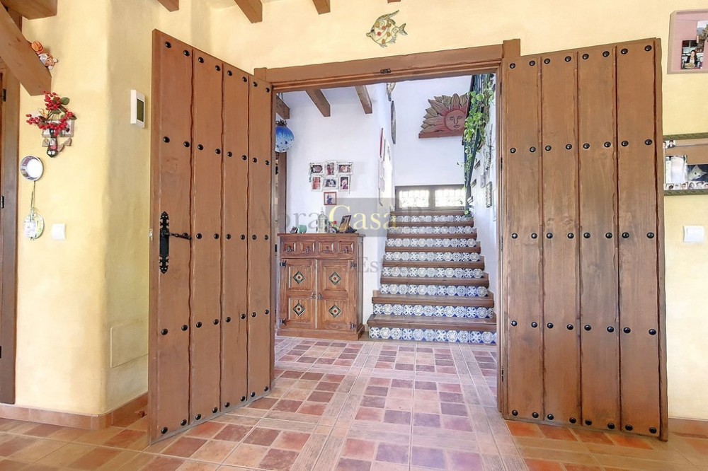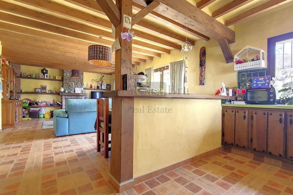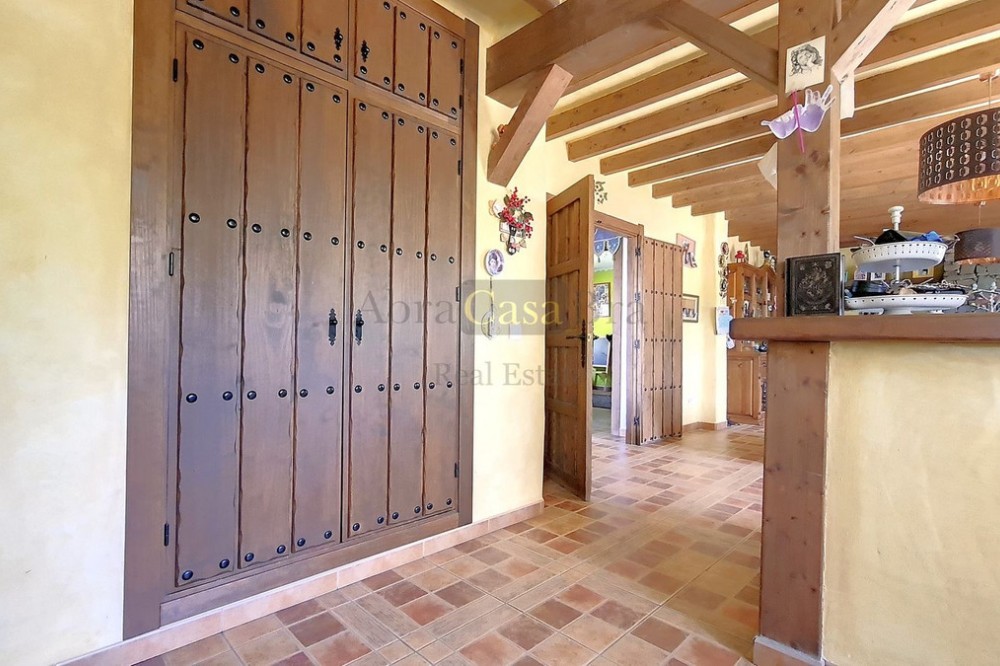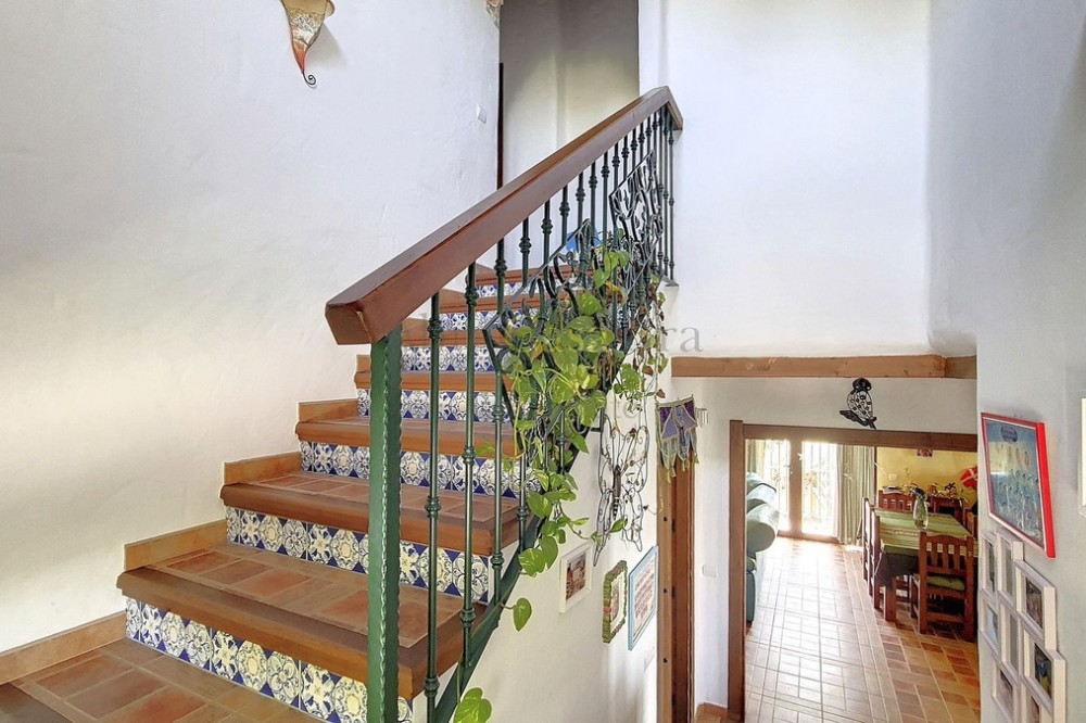 - This spacious and stylish villa is located in a beautiful and quiet location with good accessibility. The villa belongs to the municipality of Canillas de Albaida in the characteristic region of La Axarquía (Málaga province / Andalusia). In 5 minutes by car you arrive in cosy Cómpeta with its many terraces, restaurants and shops or in the authentic picturesque village of Canillas de Albaida. Both villages offer beautiful walks in the mountains of the Sierra de Tejeda y Almijara Natural Park. The villa: Upon entering, one immediately notices the warm and rural atmosphere. The typical Andalusian wooden doors are specially made to measure. The stylish tiled floor is of very good quality and the nice wooden beamed ceilings complete the picture. On the ground floor is a bathroom with shower and toilet. Next to it is a large storage room for the washing machine, among other things. Further down, at the end of the hallway, is a spacious bedroom currently used as a children's playroom. To the right of the hall, you enter the living/dining area with open kitchen, which is fully equipped. There is a large fireplace in this room. The glass patio doors in the middle of the room overlook the terrace at the side of the house. A beautifully tiled staircase leads to the first floor. To the left is the very spacious and pretty tiled bathroom with toilet, bath and shower. The hallway provides access to 2 cosy bedrooms with dormer windows. At the end of the hallway is a very large bedroom with access to a spacious and pretty tiled terrace with fantastic views. An ideal place to quietly enjoy the sunsets. The rooms have fitted wardrobes so there is plenty of storage space. Grounds: The area around the villa is fenced, which is ideal if you have dogs and/or children. Above the villa is a wooden cottage of 29m2 which can be converted into an extra guest house or studio. The views over the mountains and the sea are fantastic. Most of the 8,750m2 plot with several Mediterranean trees is flat, offering good accessibility and many possibilities. There is a 20,000-litre water reservoir and its own water source. The preparations for the pool have been made and can be finished entirely to your own taste. The land needs some love and attention, but offers every possibility, together with the villa, to make it a dream location. Our construction team is at your service. This villa must be seen with your own eyes to appreciate its true value. We will be happy to show you this unique property.