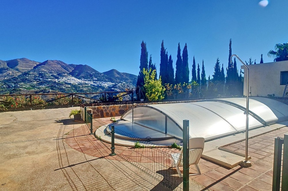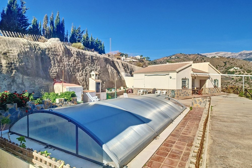 - Charming Country Retreat with Pool and Orchard near Corumbuela Nestled in an idyllic rural setting just 5 minutes from the picturesque mountain village of Corumbuela, this unique property blends rustic charm with modern comfort. Ideally situated, it offers easy access to Torre del Mar (30 minutes), Málaga city centre, and the international airport (both within 60 minutes). Accessed via an unpaved road that enhances its tranquil, countryside atmosphere, the property sits on a fully fenced 7,000 m² plot, ensuring privacy and security. The land features a thriving orchard with olive, avocado, tangerine, orange, and mango trees. A private, registered well (140m deep) supplies water to a 10,000-litre tank, with an additional 15,000-litre tank available if needed. The house itself offers: 3 spacious bedrooms and 2 bathrooms (including one en-suite with bath/shower, toilet, and washbasin) Air conditioning in all bedrooms and the living room Wood-burning fireplace for a cosy, homely feel Fully equipped kitchen with oven, microwave, dishwasher, and washing machine Indoor swimming pool (8m x 4m) for year-round enjoyment Gas boiler for hot water Single-glazed windows with shutters Garage and a bodega, ideal for wine and olive oil production The property is sold fully furnished, ready for immediate occupancy. There's also potential to place a tiny house on a flat area of land, offering extra flexibility. Whether you’re seeking a family home, a peaceful holiday retreat, or a small-scale agricultural project, this property is ready to make your dream lifestyle a reality. Viewings available on site or via video call. We don’t just sell properties — we realise dreams.