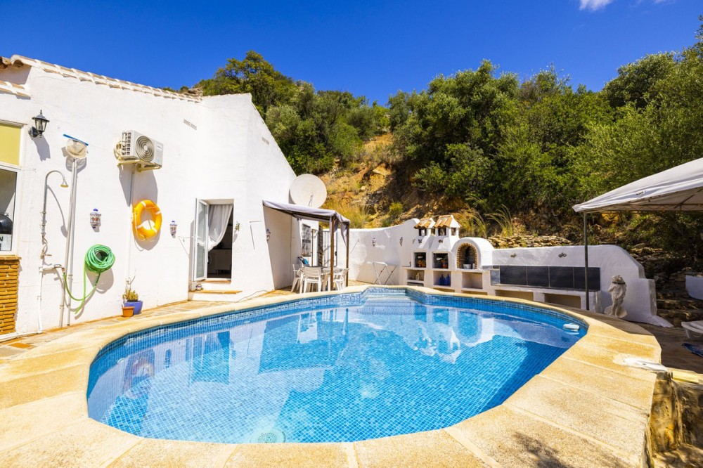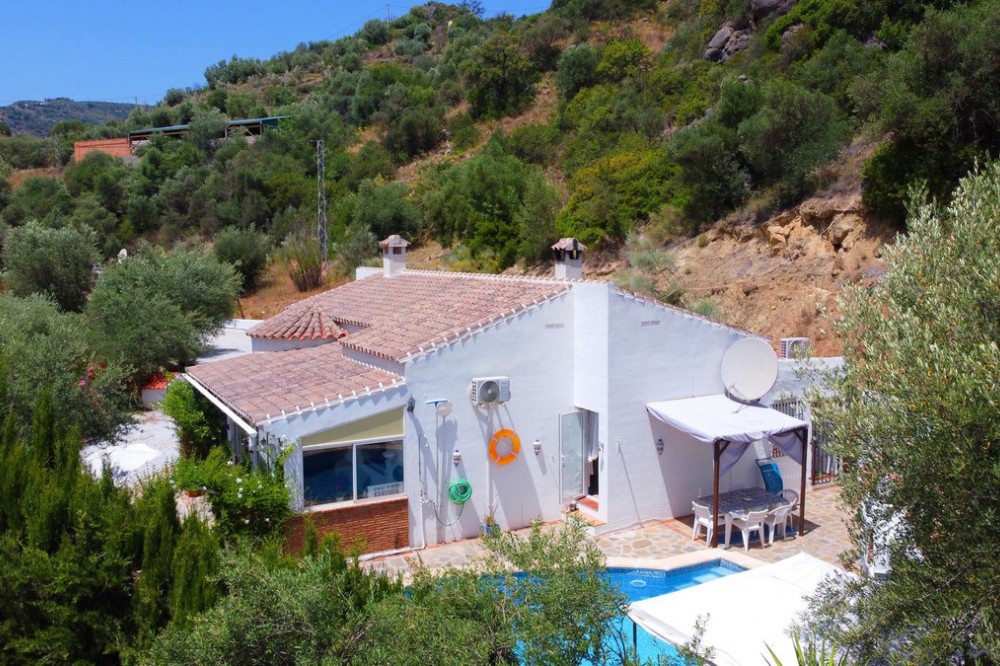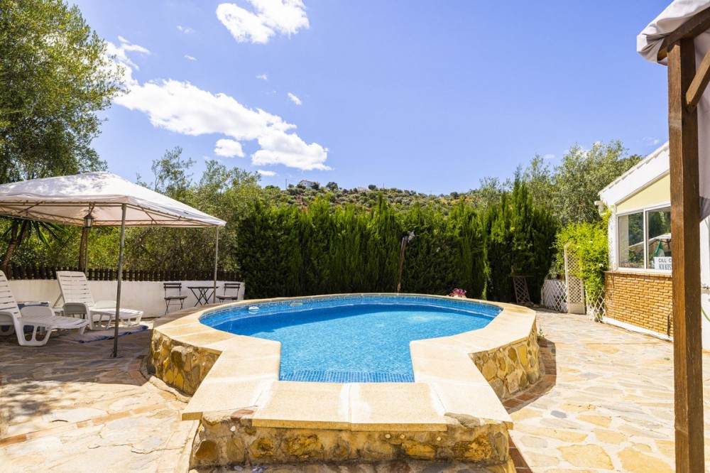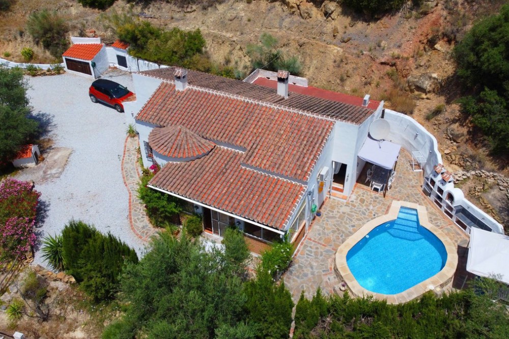 - Beautiful Villa with Guest Apartment & Pool – Near Comares, Málaga Discover your dream home in the heart of the Axarquía! Just 15 minutes from the charming whitewashed village of Comares, this stunning villa offers the perfect blend of peace, comfort, and spectacular mountain views – all within easy reach of the coast. Main Villa: Step through a charming glass-walled conservatory – ideal for year-round relaxation – into a spacious living room with a cosy fireplace and an inviting dining area. The fully equipped kitchen is perfect for creating delicious meals while enjoying views of the surrounding hills. The main house features two large bedrooms, including a master suite with private ensuite bathroom for your comfort and privacy. Separate Guest Apartment: With direct access from the living room and a private entrance via the terrace and pool, the self-contained apartment is perfect for visiting family, friends, or generating rental income. It offers two comfortable bedrooms, a private bathroom, a bright sitting area, and a well-equipped kitchen – making it ideal for guest stays or B&B rentals. Outdoor Paradise: The fully fenced plot is a haven of relaxation and entertainment: Large sun terrace with sparkling swimming pool Additional terrace with plunge pool at the entrance – perfect for lazy afternoons Beautifully maintained gardens with colourful flowers and fruit trees Ample parking for several vehicles Prime Location: 15 min to Comares & Riogordo (shops, restaurants, medical centre) 25 min to Torre del Mar beaches 45–50 min to Málaga city & airport Paved road access and total privacy with breathtaking mountain vistas Why You’ll Love It: Whether you’re looking for a permanent residence, a holiday retreat, or an investment property, this villa offers outstanding versatility. Enjoy the tranquillity of the countryside while staying close to vibrant coastal life – and benefit from the potential to earn income from the guest apartment. Contact us today to arrange a viewing and make this stunning villa near Comares yours!