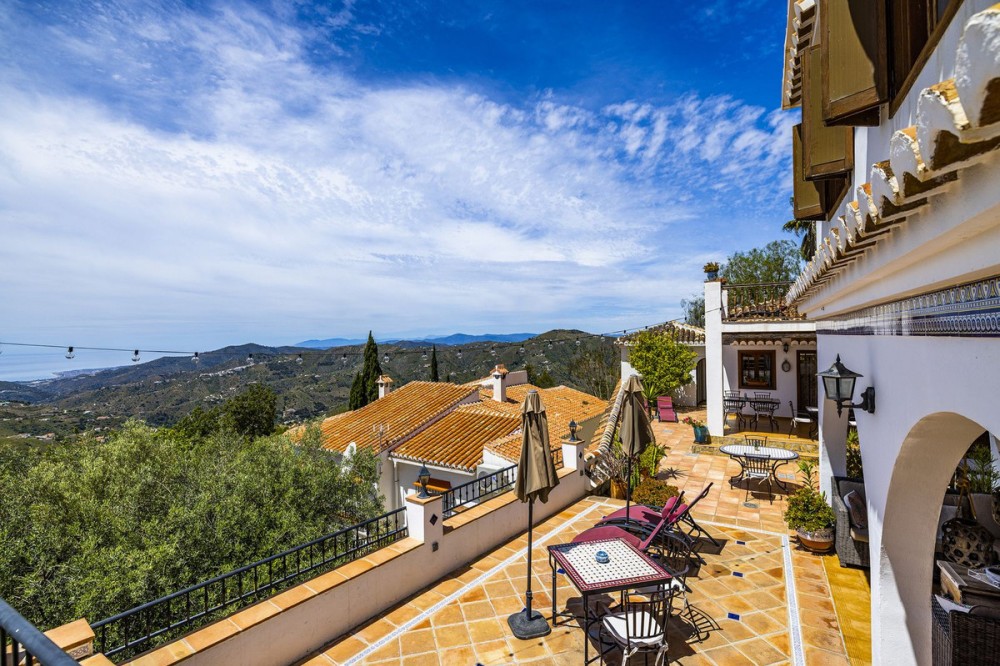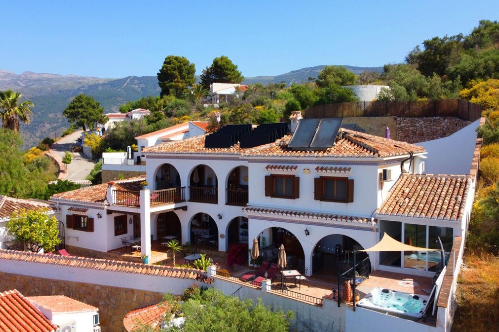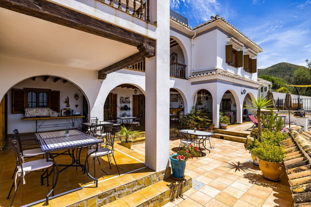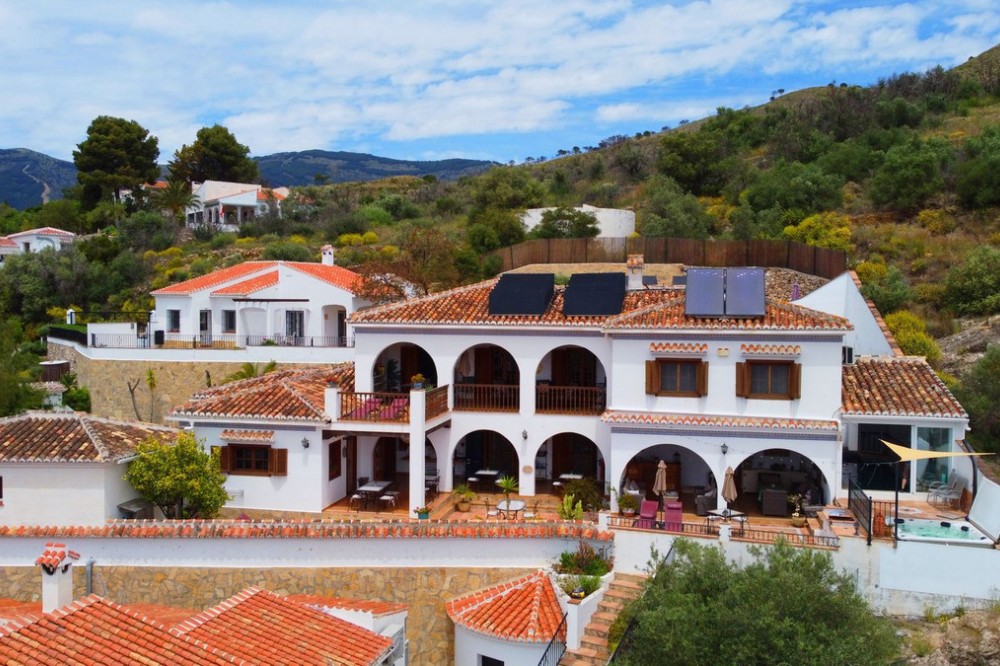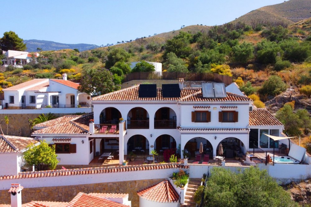 - Casa Roble is a successful Bed & Breakfast located in the village of Cómpeta and only 1 hour from Malaga airport. This classic Spanish villa is a short distance from many amenities and a fantastic selection of bars and restaurants. Currently successfully run as a Bed & Breakfast, the property could also be suitable as a spacious family home. Guest accommodation comprises four spacious double rooms, including a large family room, all with en-suite bathrooms and three with access to terraces. Private accommodation for the owners includes a double bedroom with en suite bathroom, two balcony terraces and a laundry room. At the main entrance is a lounge/serre, and on the ground floor is the fully equipped kitchen, two guest bedrooms and a guest toilet. On the first floor, there is a spacious living room/playroom and two guest rooms. The property has a solar water heater, oak windows and doors, mosquito nets, air conditioning and heating, ceiling fans and a wood-burning stove in the entrance hall. Underfloor heating is available throughout the villa, including the pool area. Casa Roble is surrounded by well-maintained gardens and offers many private seating areas with beautiful views. The indoor pool, equipped with a thermodynamic heat pump, provides cooling in summer and extends use in the colder months. The jacuzzi offers the perfect place to relax and enjoy a glass of cava while admiring the breathtaking sunsets characteristic of this region of Andalusia. Next to the ground floor is a covered dining and sitting area with bar and barbecue. Casa Roble is located off a spacious car park. This impressive villa could be a permanent residence, while it could also generate income as a B&B or holiday rental. Contact us today for more information or to schedule a viewing, this can also be done virtually. We don't sell houses, we realise dreams.