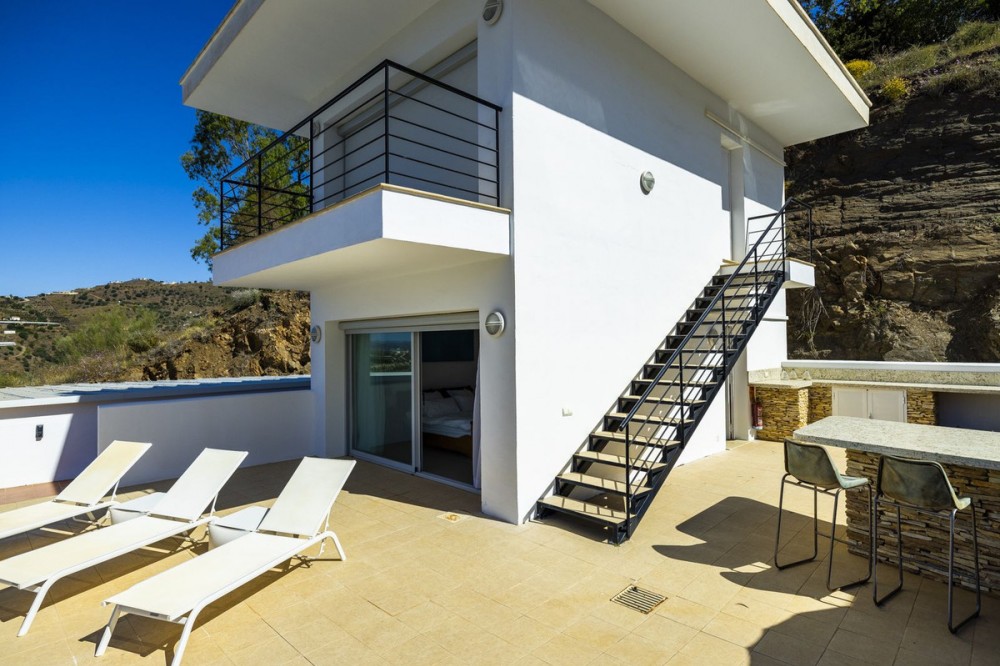 - Prestigious Seaview Estate in Sayalonga – A Masterpiece of Luxury and Serenity Step into a world of unparalleled elegance with this breathtaking estate in the enchanting town of Sayalonga. Perched on an expansive plot, this south-facing sanctuary offers panoramic sea views, world-class amenities, and an atmosphere of pure tranquility. The Main Residence: Sophisticated Comfort & Timeless Design: • 2 Exquisite Bedrooms – Spacious, sunlit sanctuaries designed for rest and relaxation. • 2 Designer Bathrooms – Featuring premium fixtures and finishes for a spa-like experience. • Grand Living Room – A refined space with floor-to-ceiling views, perfect for both intimate moments and lavish entertaining. • Gourmet Kitchen – A chef’s dream, equipped with state-of-the-art appliances and an expansive layout for culinary artistry. • Storeroom – Thoughtfully designed for ample storage and effortless organization. Exclusive Guest & Leisure Spaces: • Two Private Guest Apartments – Each featuring a bedroom and en-suite bathroom, ensuring comfort and privacy for visitors or extended family. • Charming Studio – Ideal for an artist’s retreat, home office, or additional guest accommodations. Unparalleled Outdoor Living: • Infinity Pool – A spectacular horizon-edge pool that merges seamlessly with the Mediterranean backdrop, offering unrivaled sunset views. • Outdoor Kitchen & Dining Area – Fully equipped for al fresco entertaining, where you can enjoy exquisite meals beneath the stars. • Manicured Gardens – A vast landscaped paradise featuring vibrant flora, creating a serene oasis of beauty and relaxation. • Spacious Garage – Secure and spacious parking for multiple vehicles, adding convenience and exclusivity. Located just 400 meters from the main road, with a fully concreted driveway, accessibility meets seclusion in this extraordinary retreat. This luxury estate is more than a home—it’s a statement of refined living, offering an unmatched blend of privacy, elegance, and natural beauty. Own a Piece of Paradise – Schedule Your Private Viewing Today.